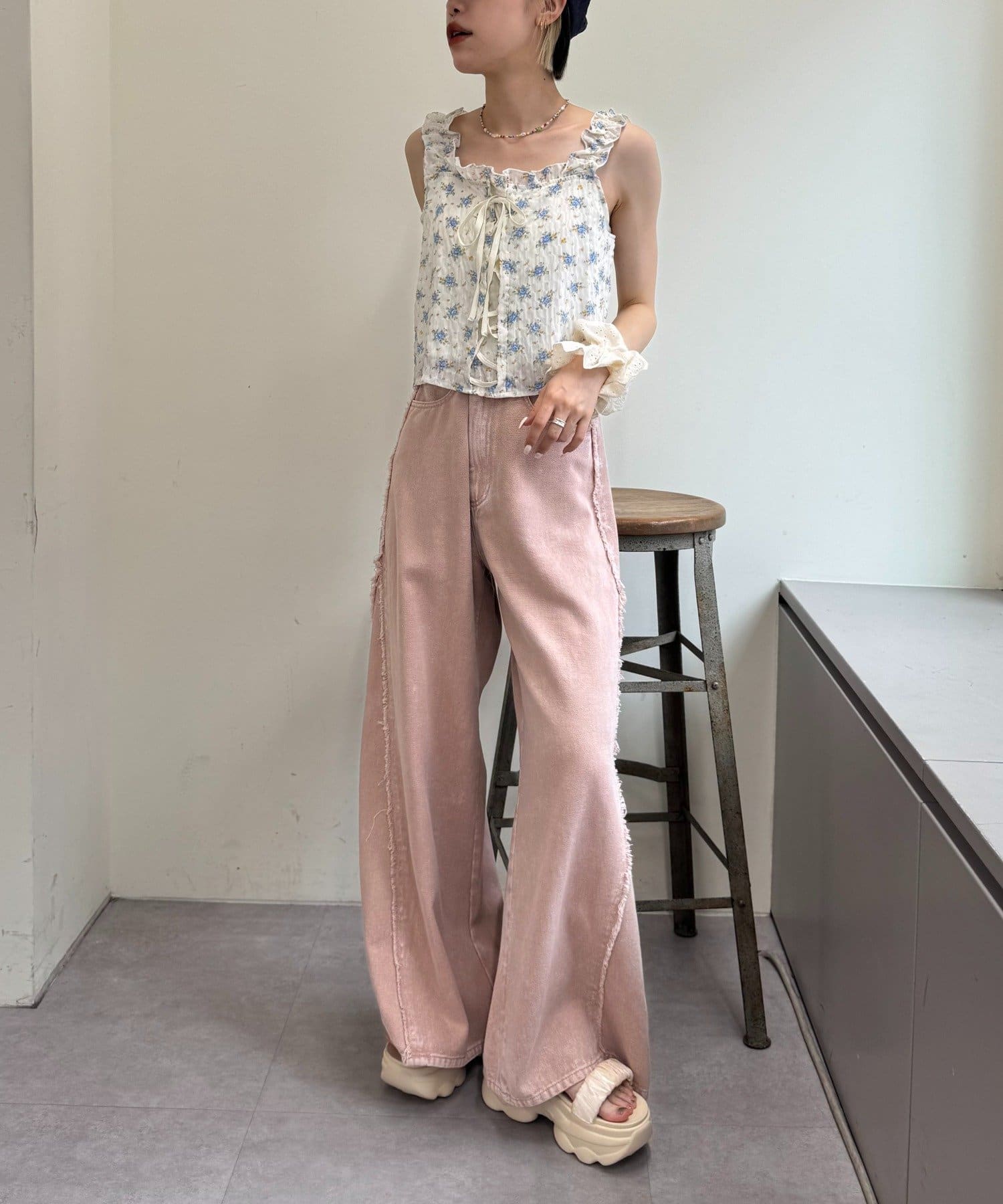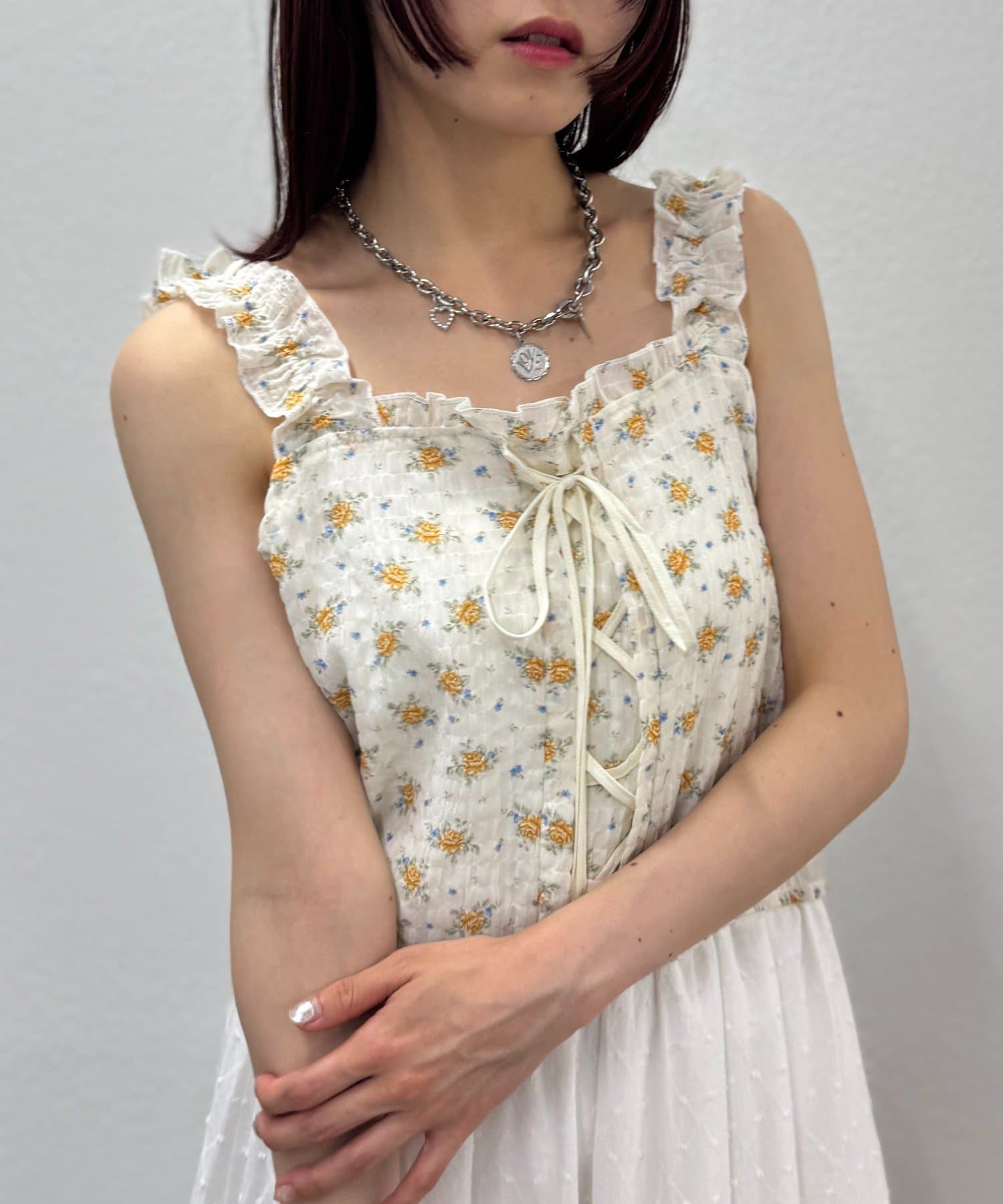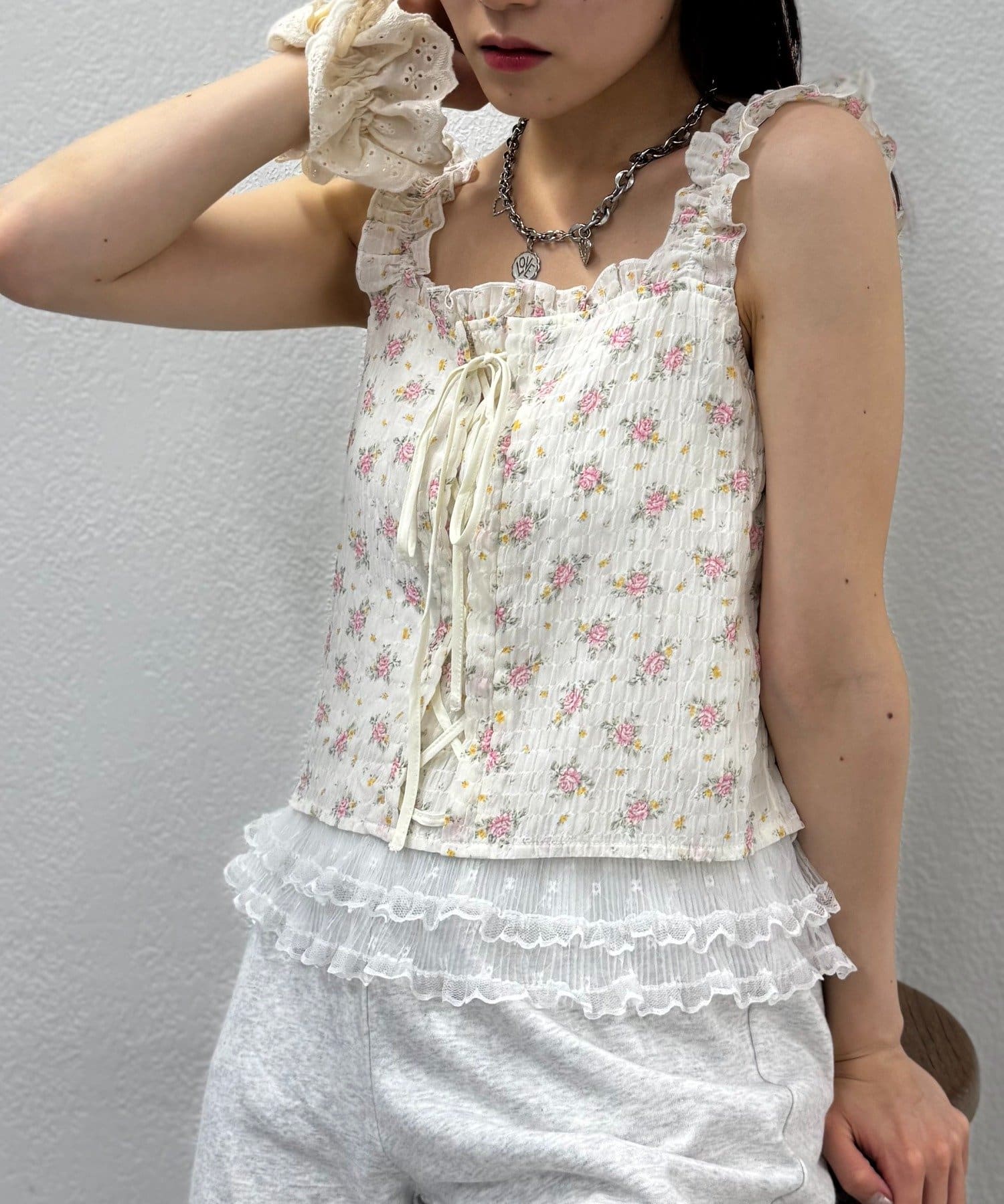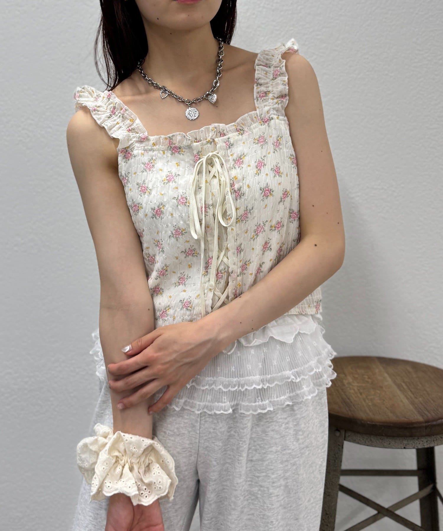 編み上げリボンが可愛いビスチェ風トップス♡
