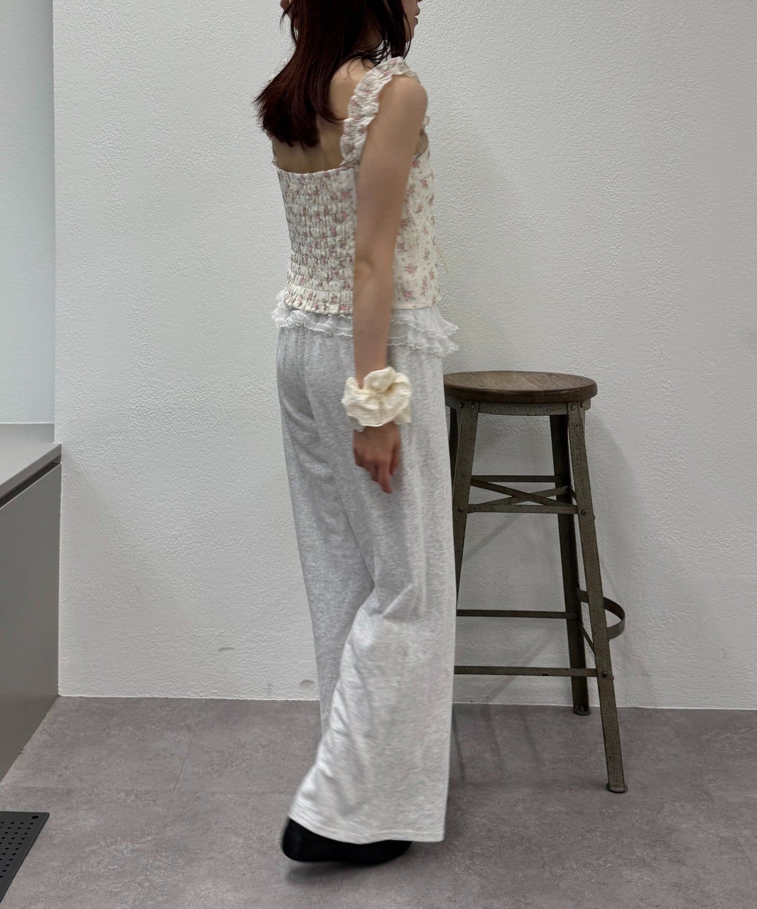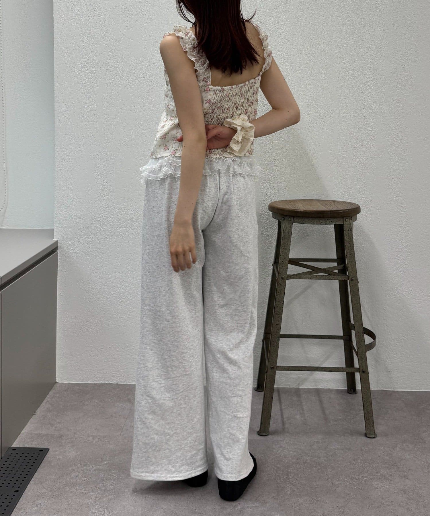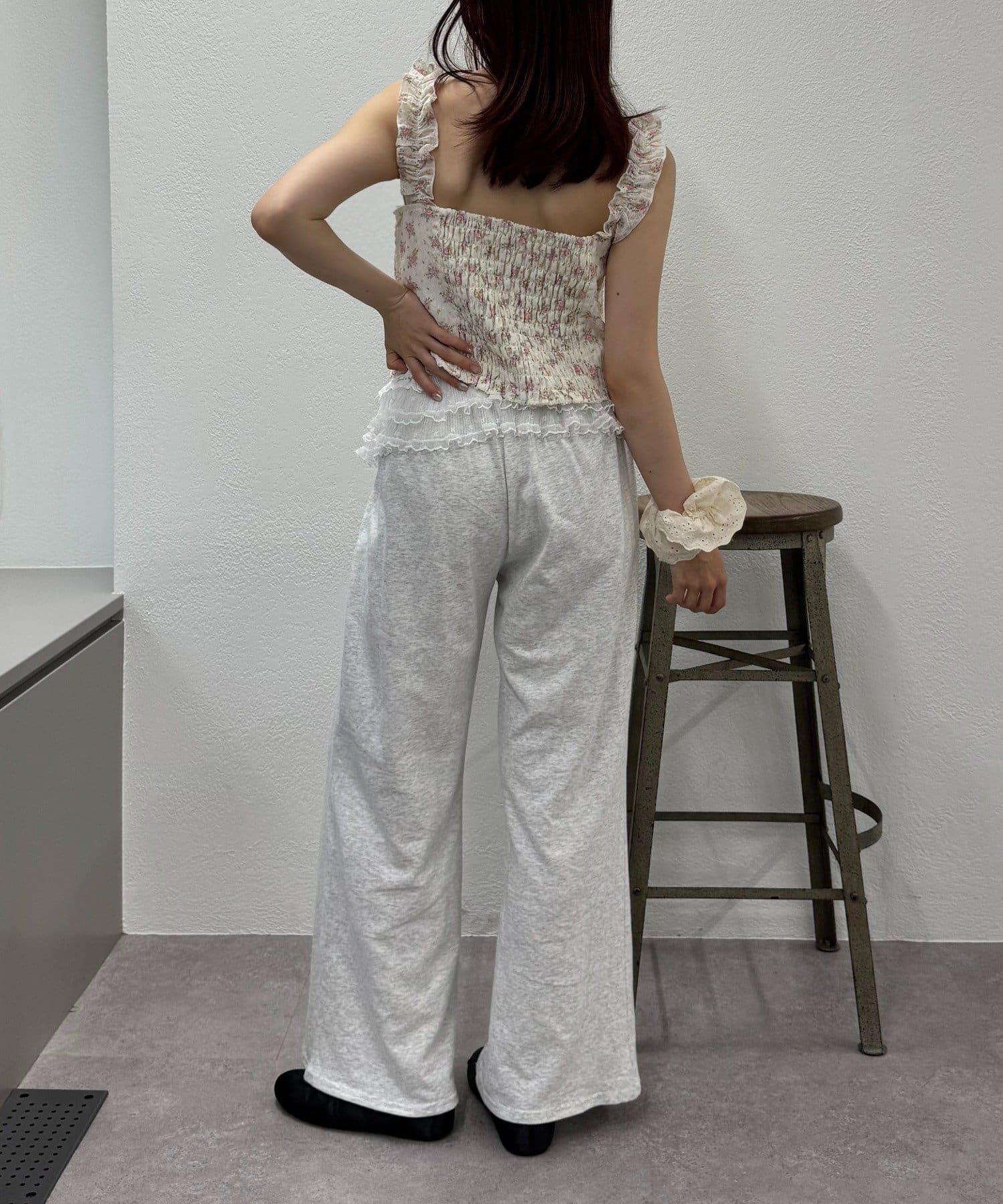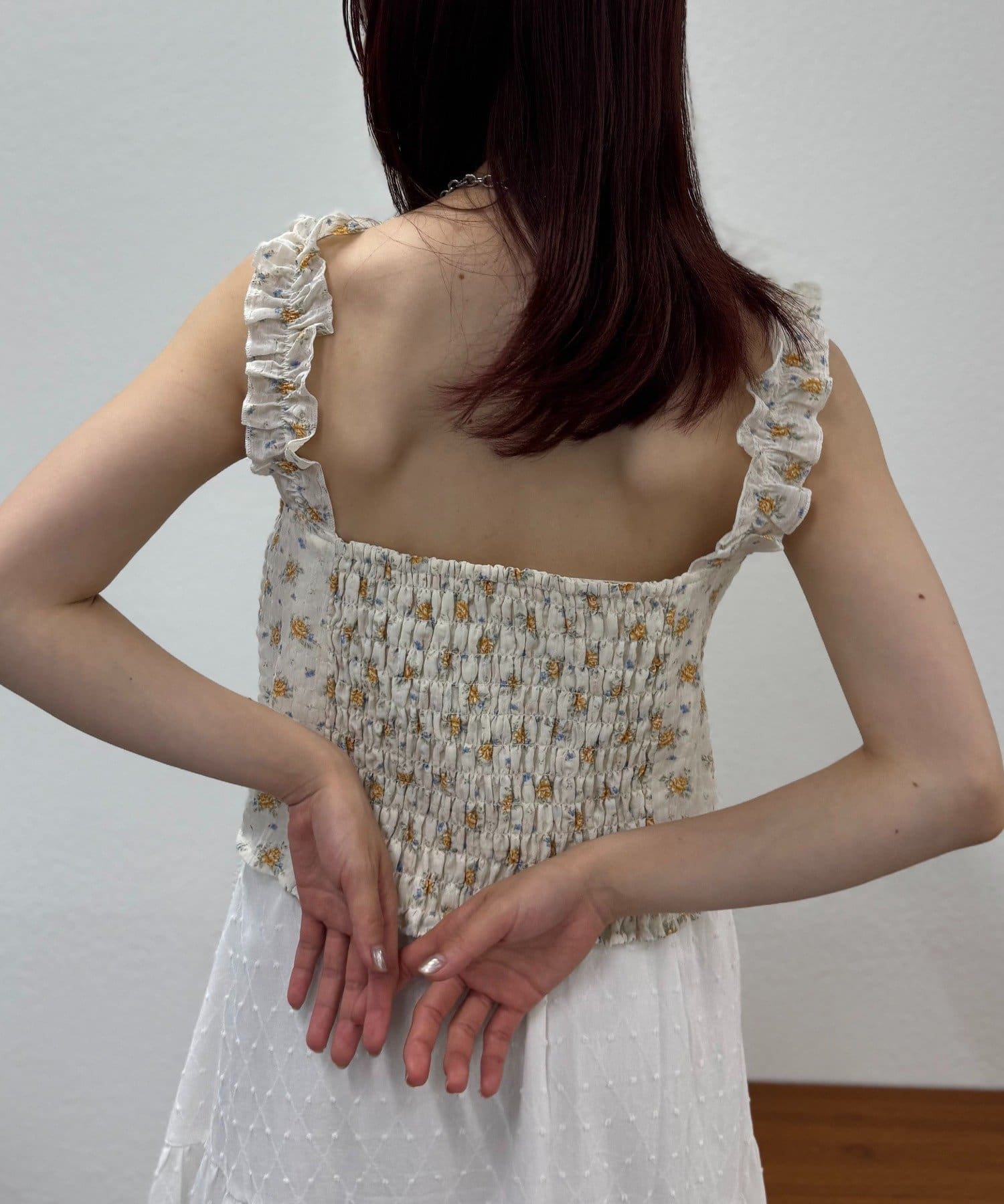 ・後ろはシャーリングゴムになっていて体をスッキリと見せてくれます。