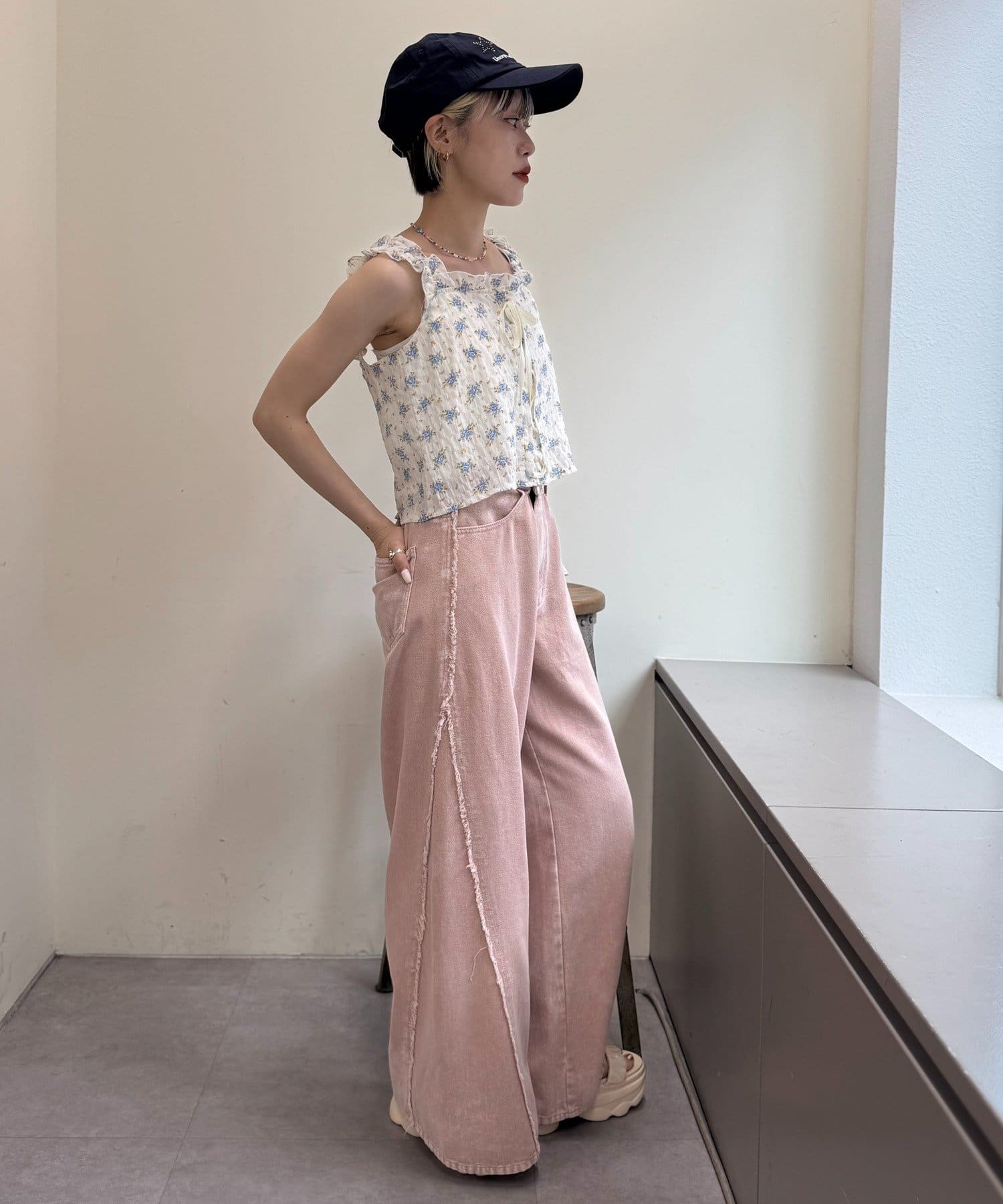 ・デニムパンツでカジュアルにしたり、スカートでガーリーにしたりボトムス次第でいろいろな系統で着用できます♪
