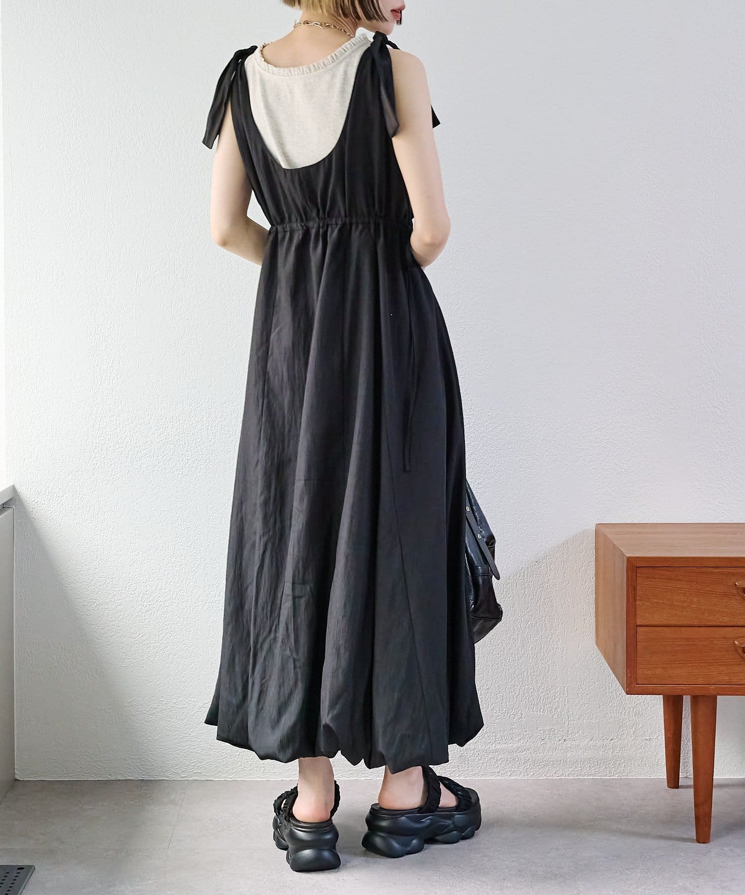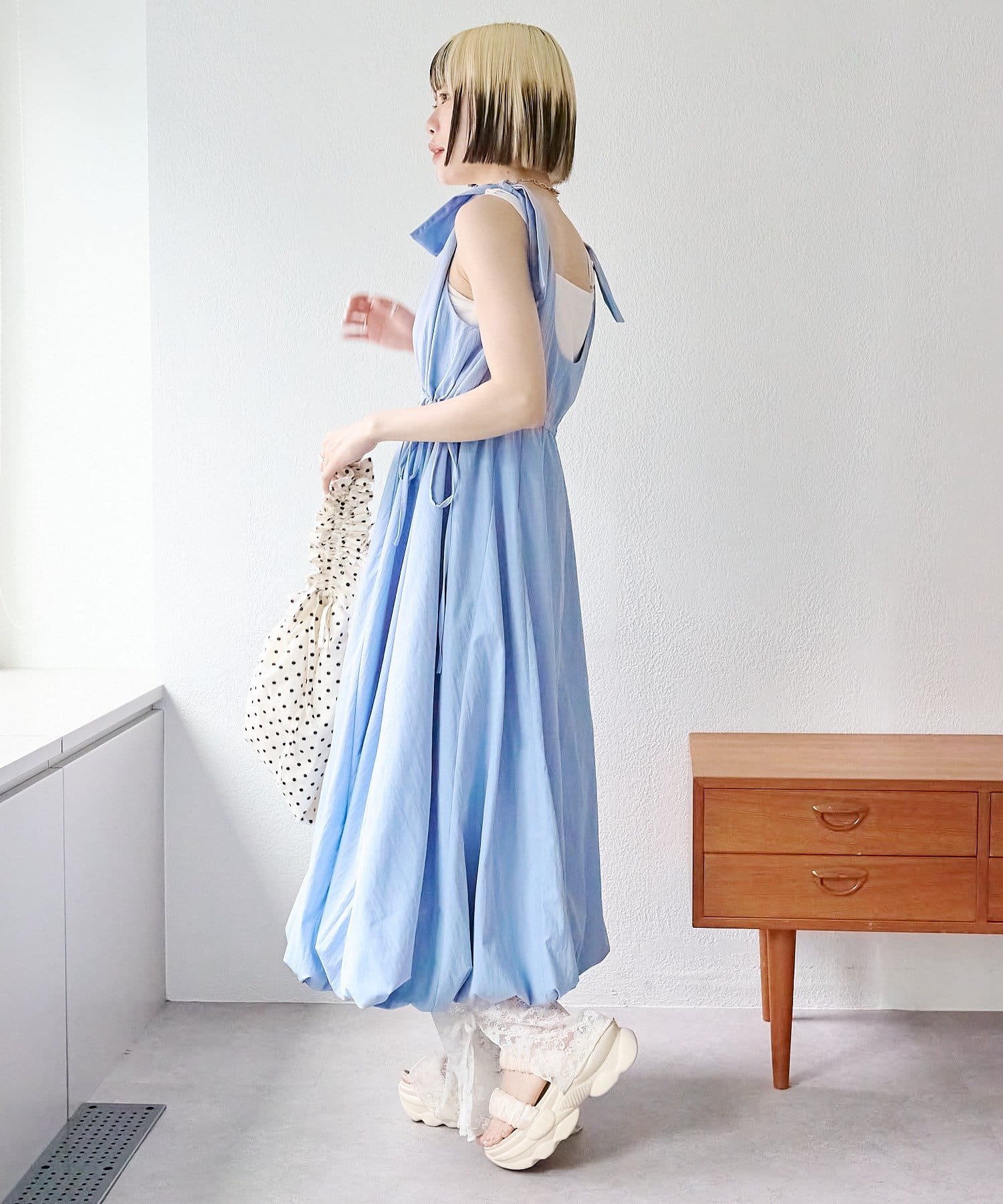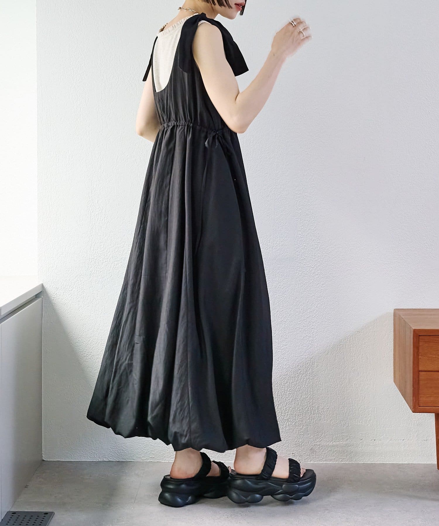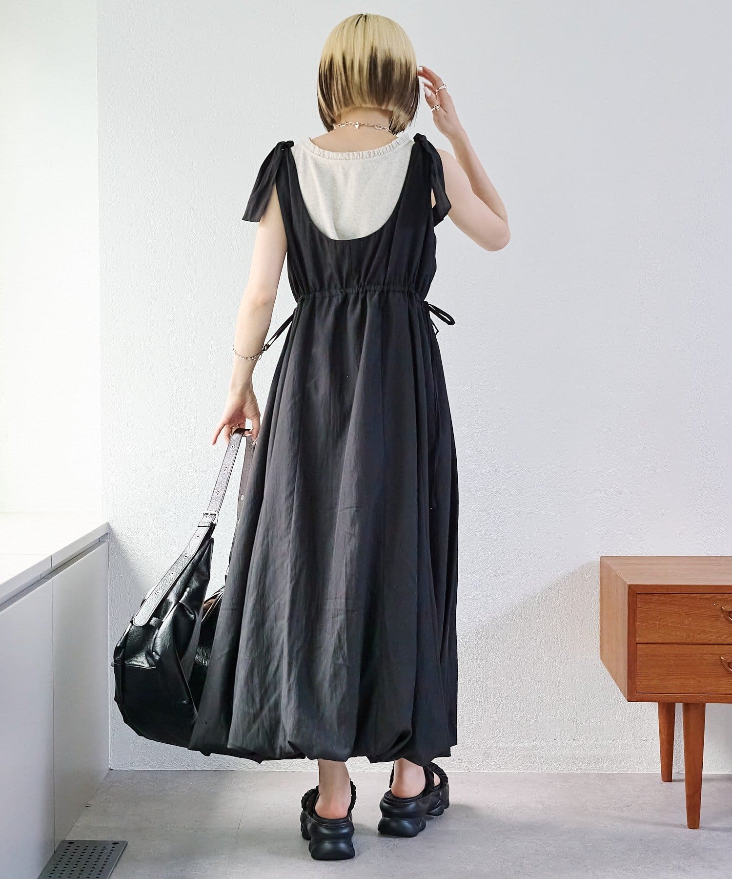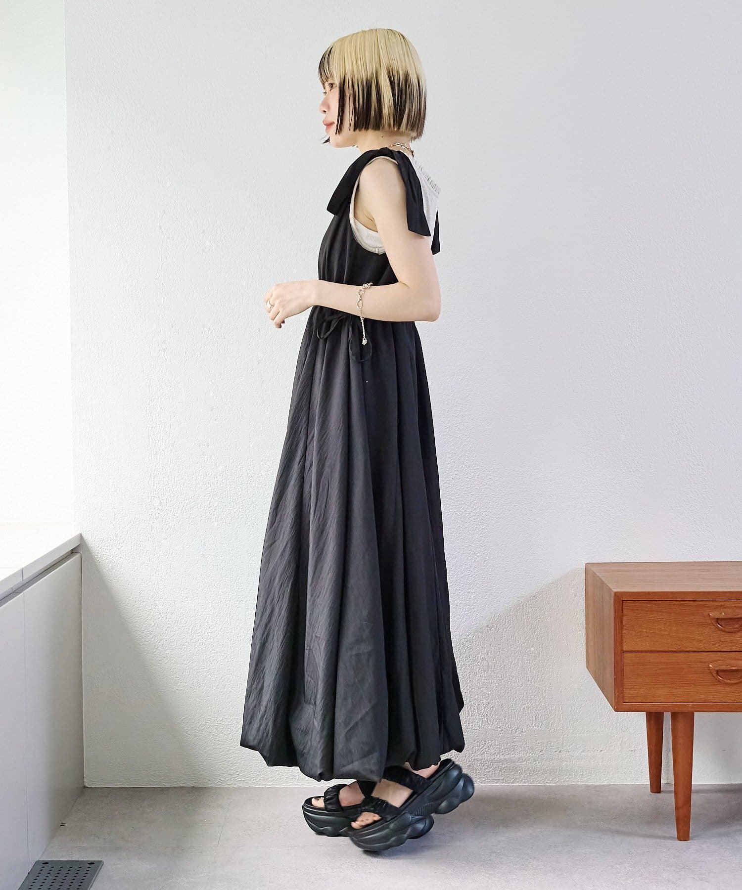 【着用動画あり!/2サイズ展開】肩リボンバルーンワンピース