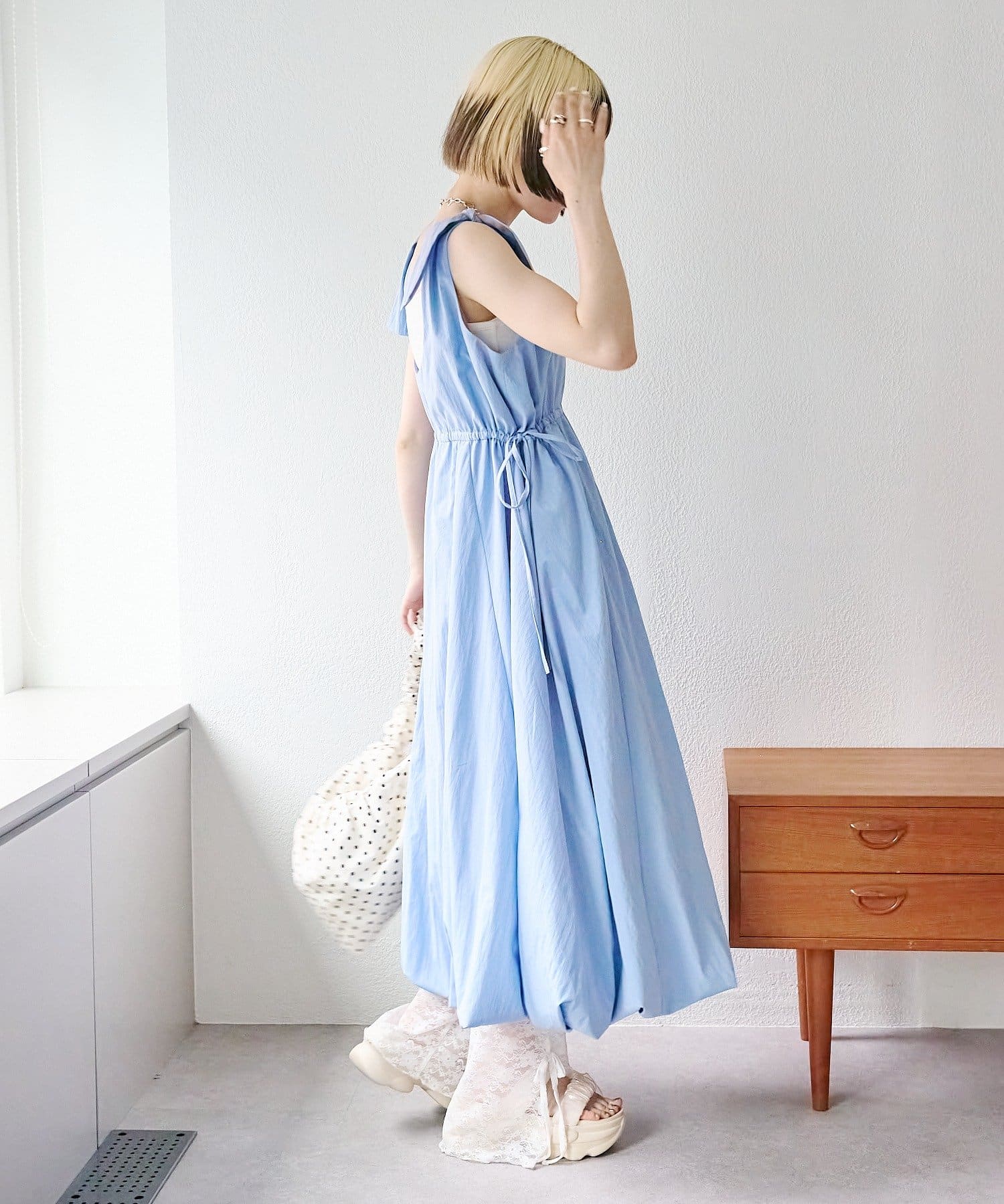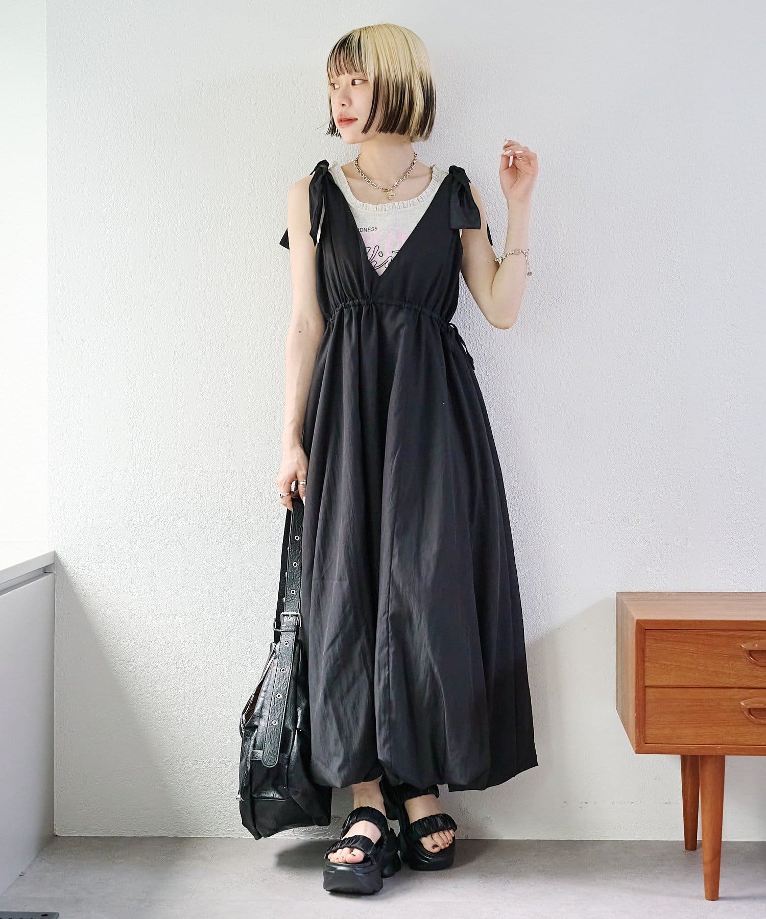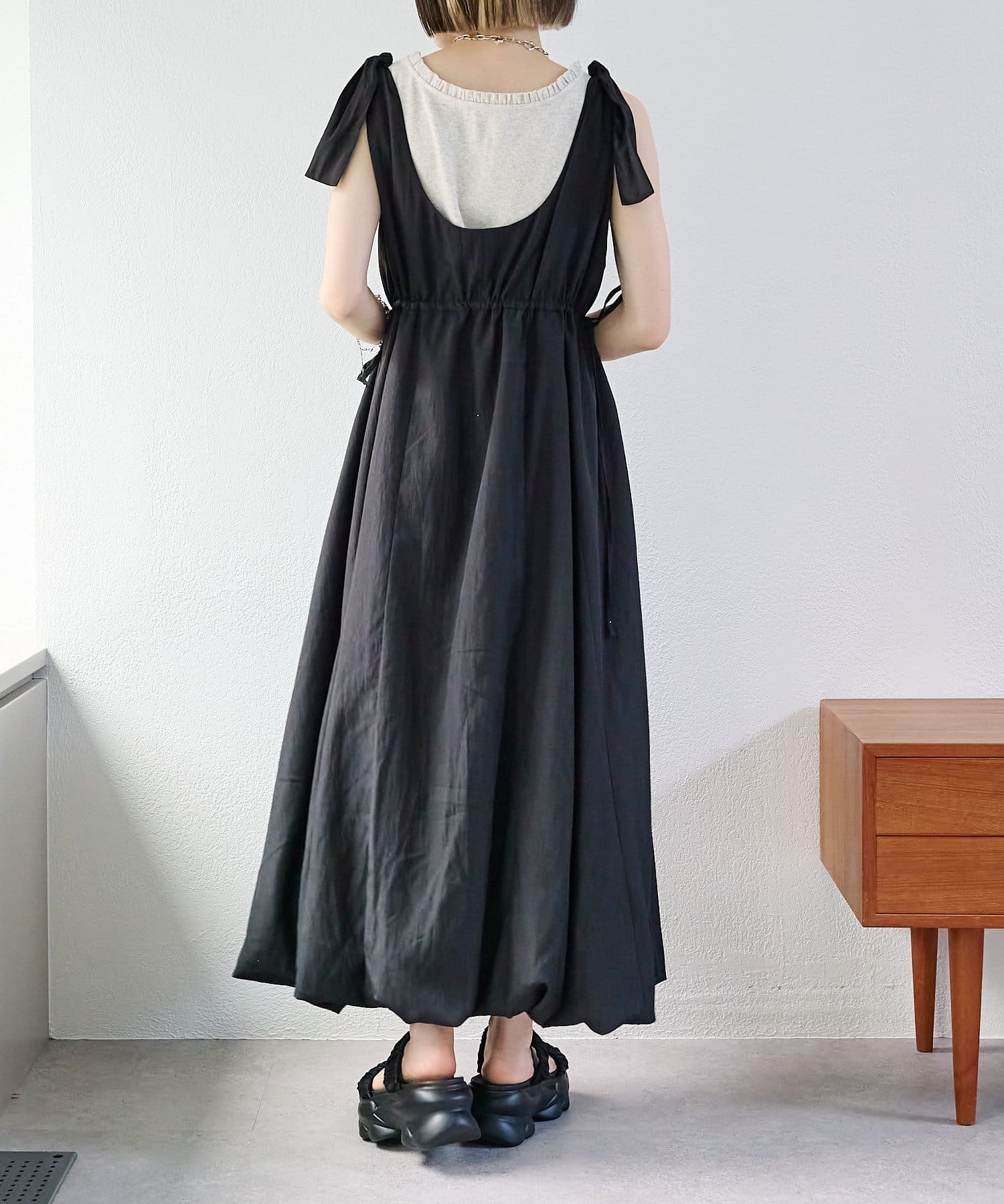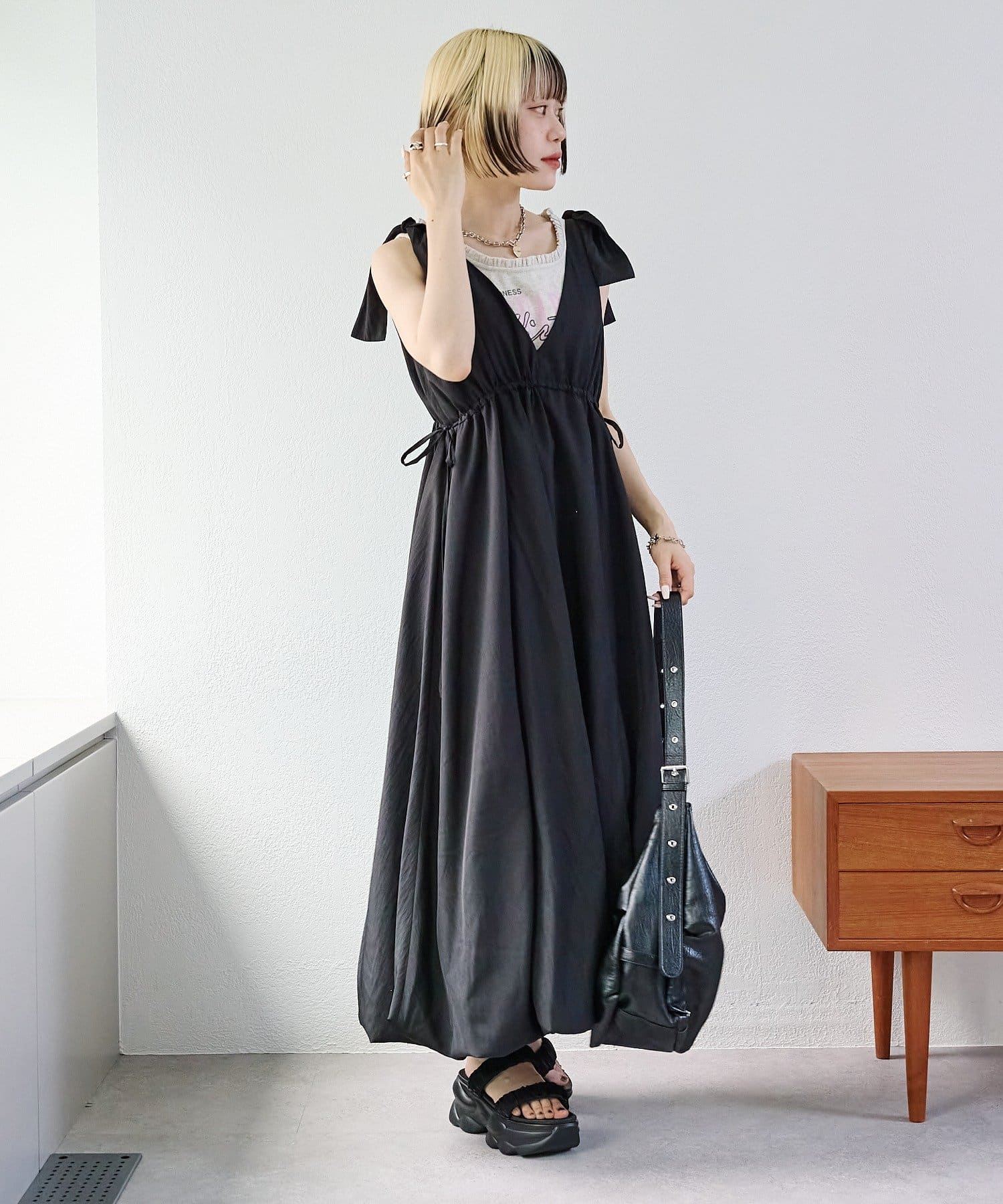 【着用動画あり!/2サイズ展開】肩リボンバルーンワンピース
