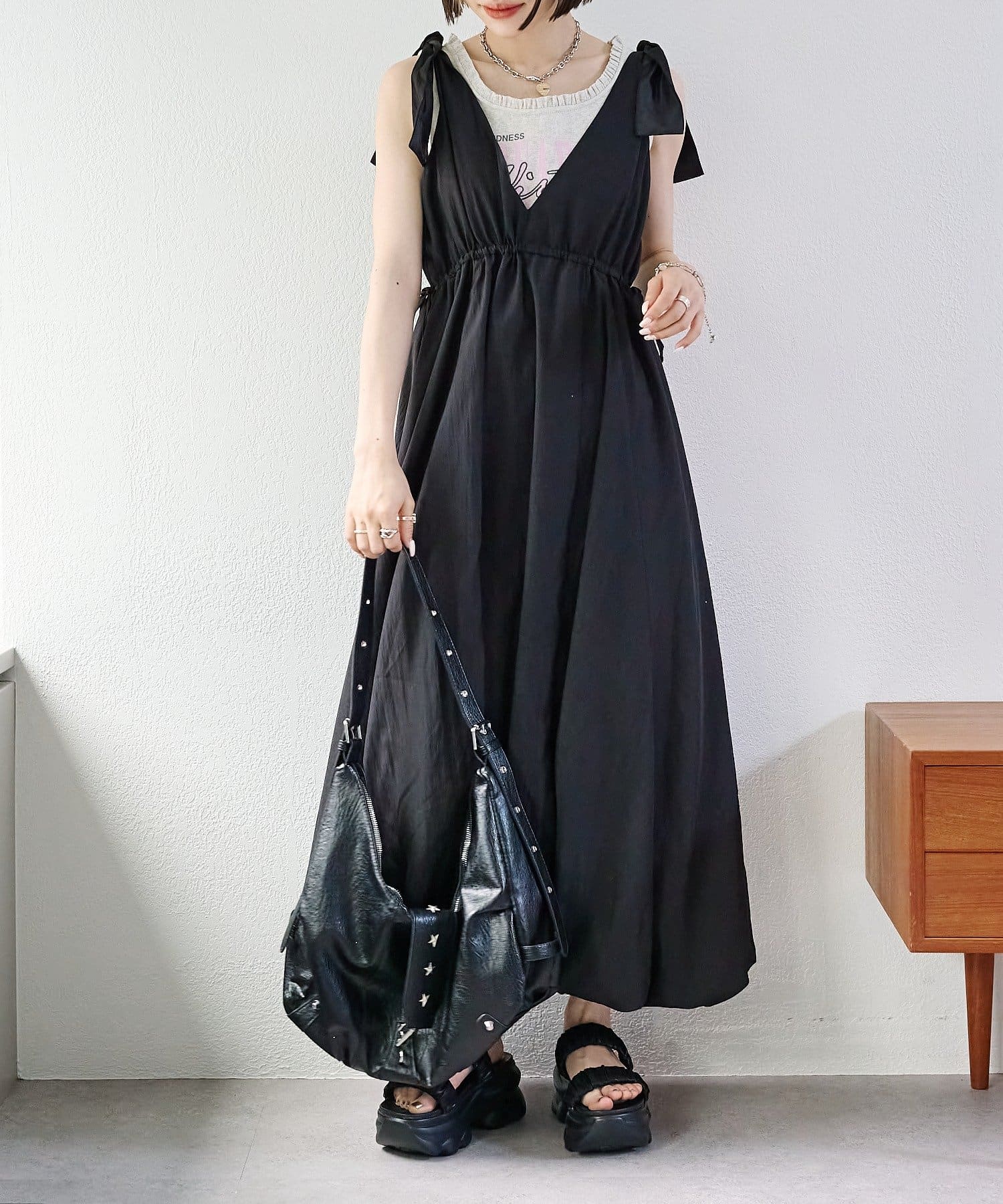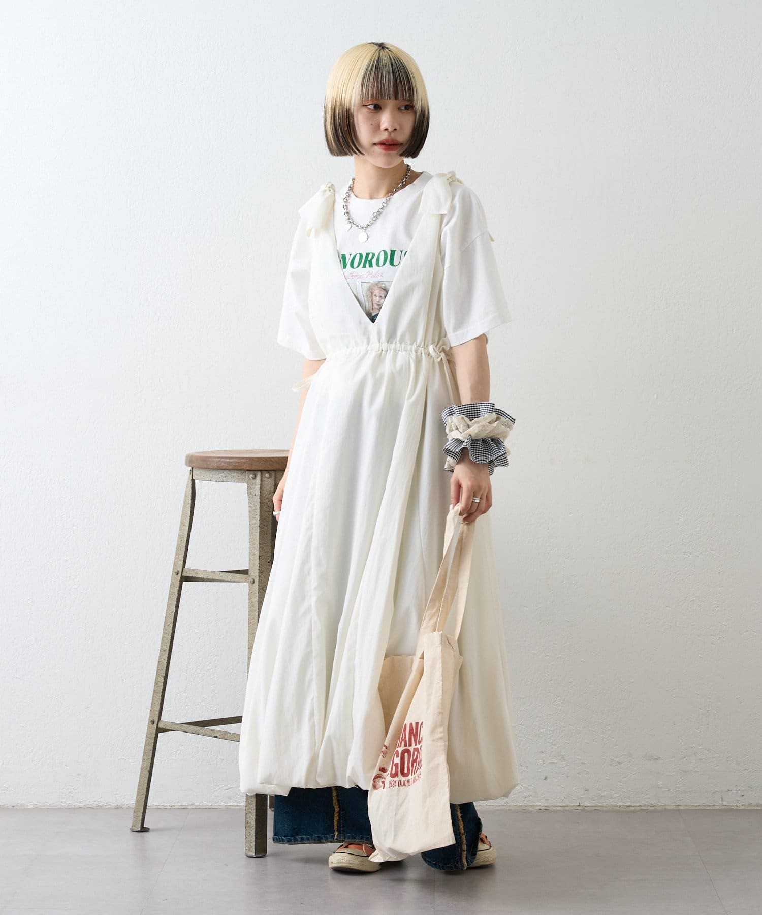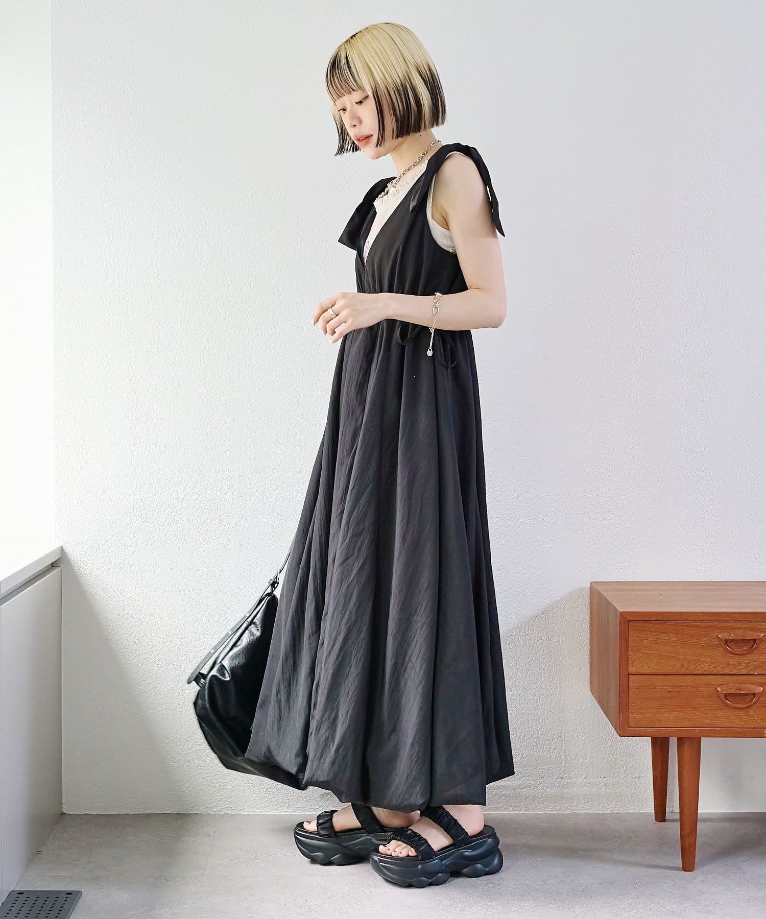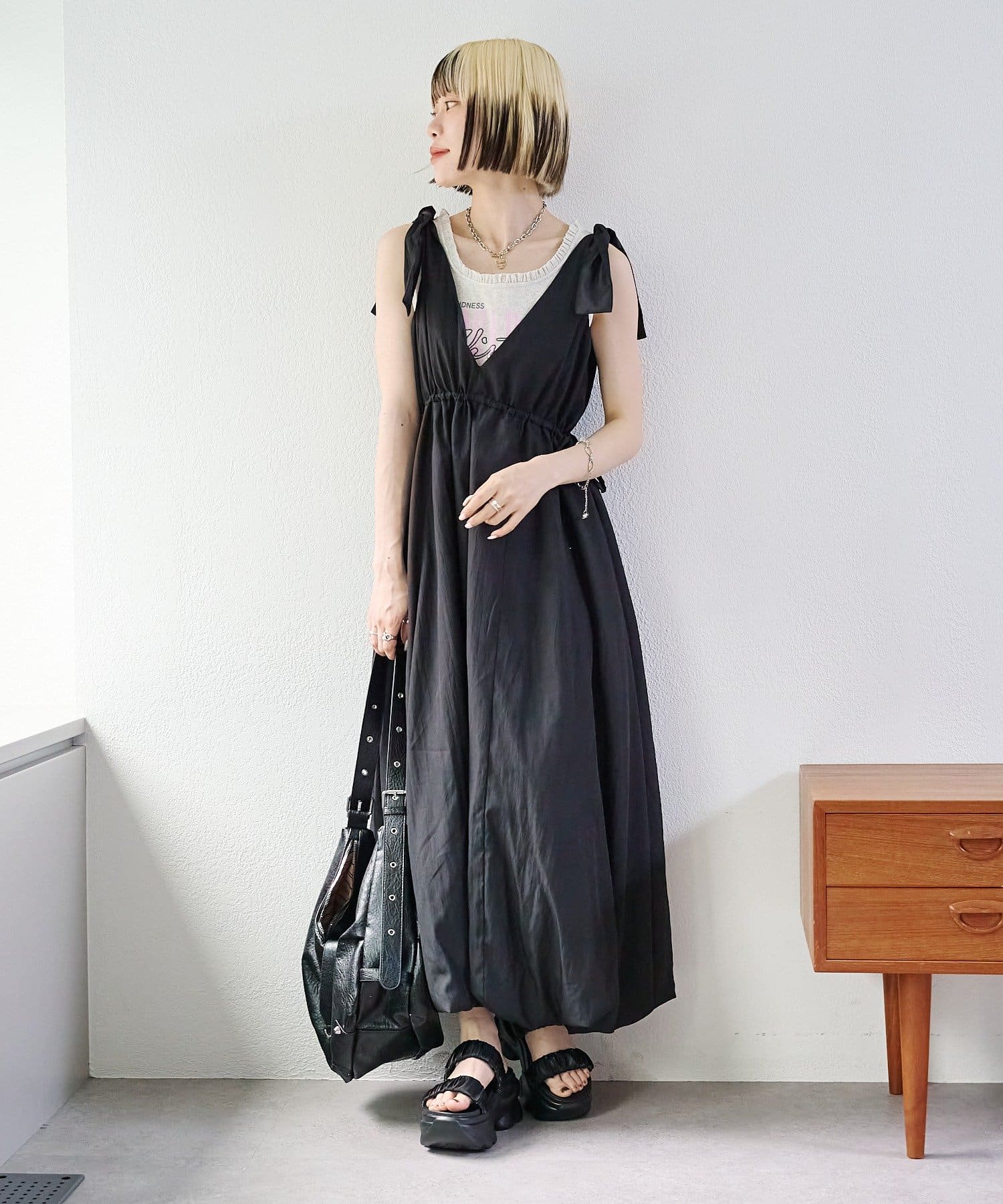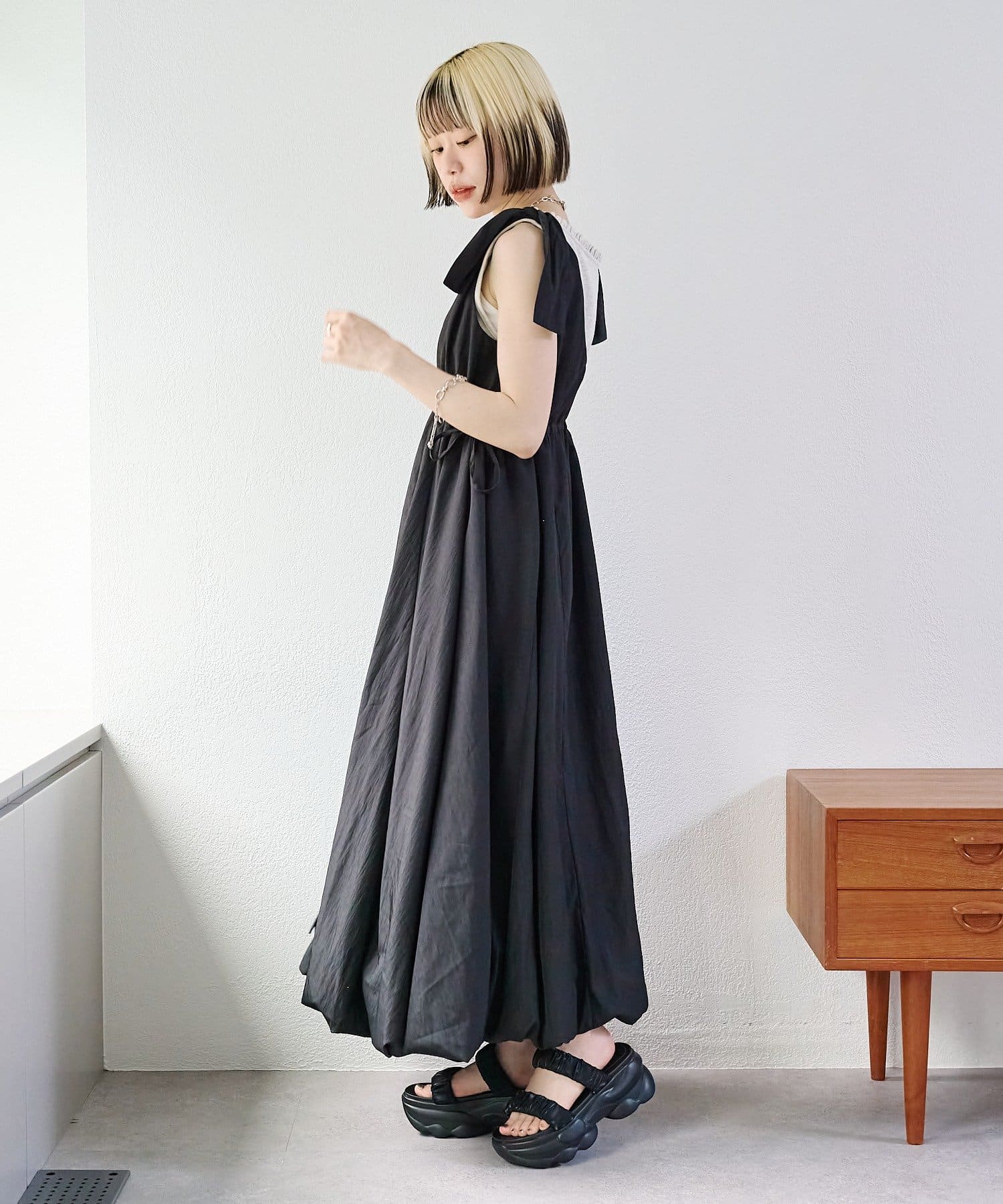【着用動画あり!/2サイズ展開】肩リボンバルーンワンピース