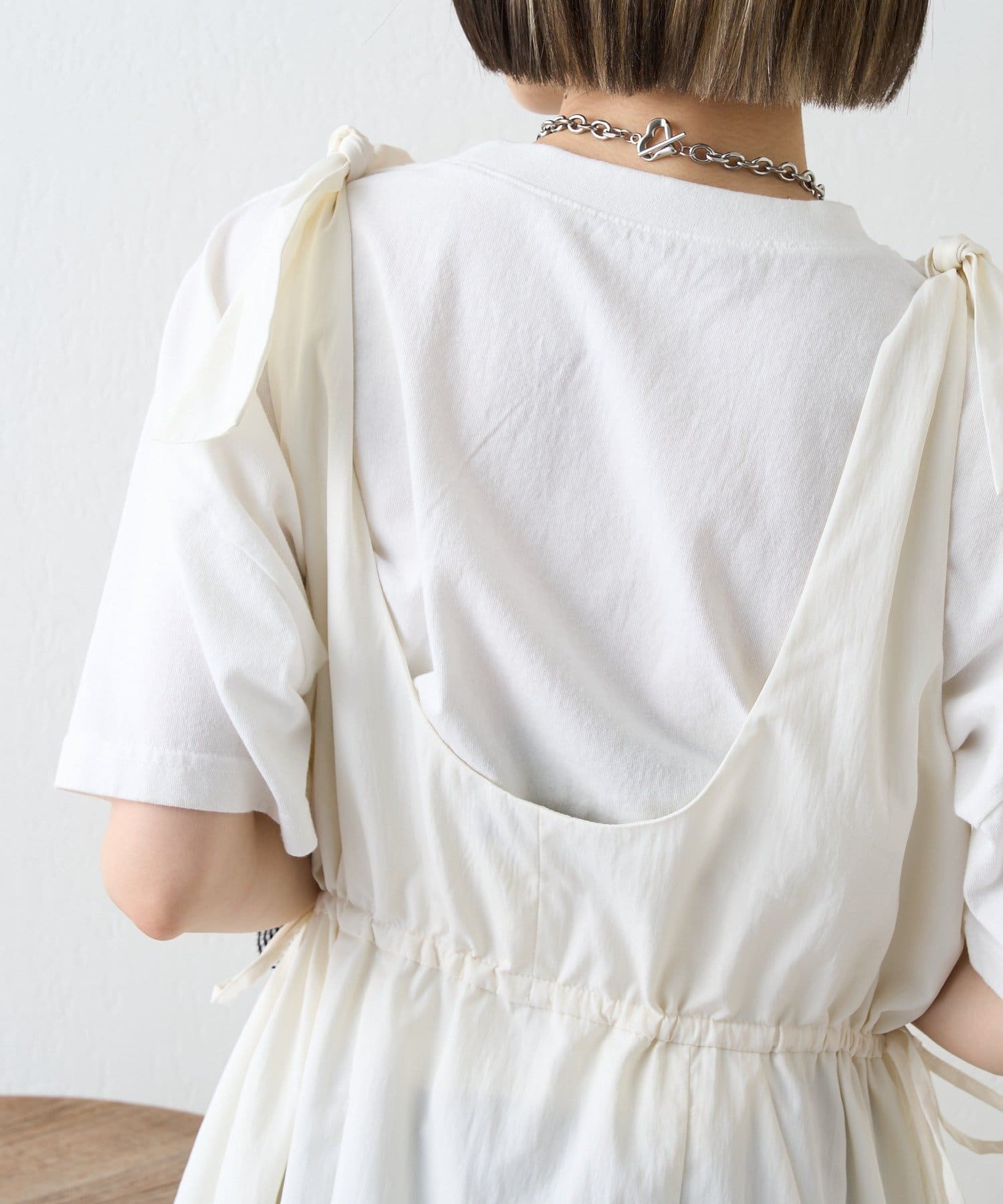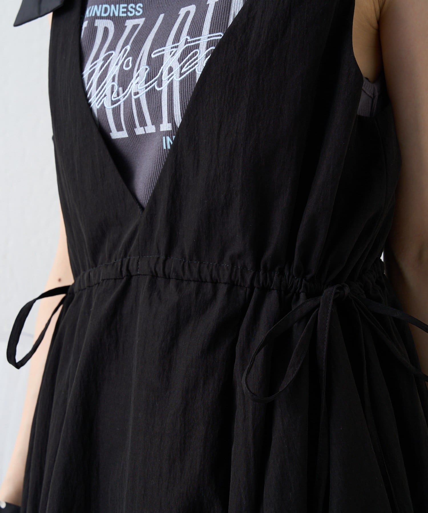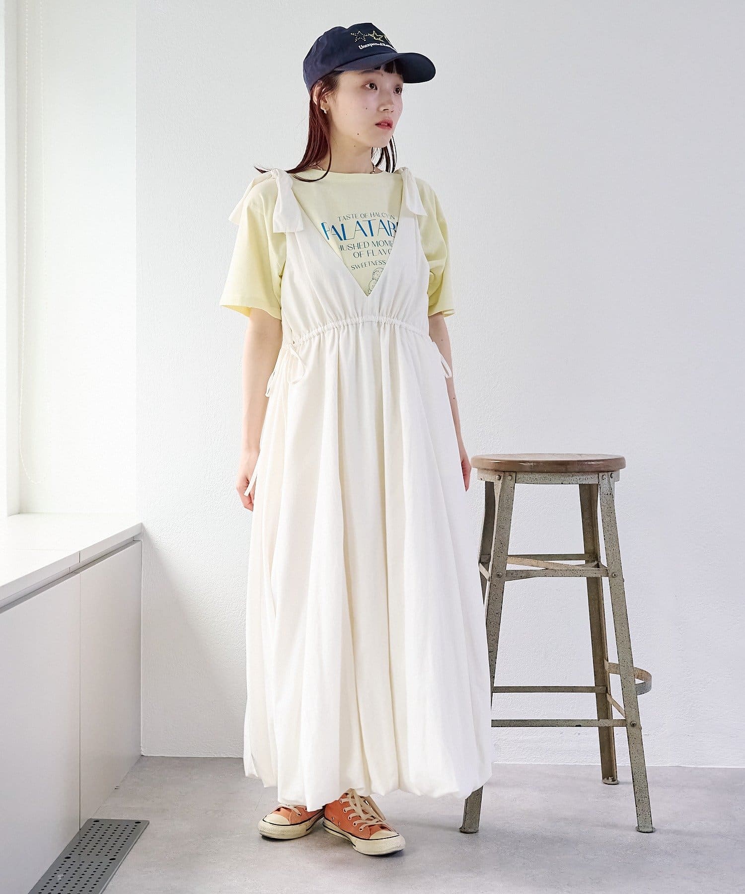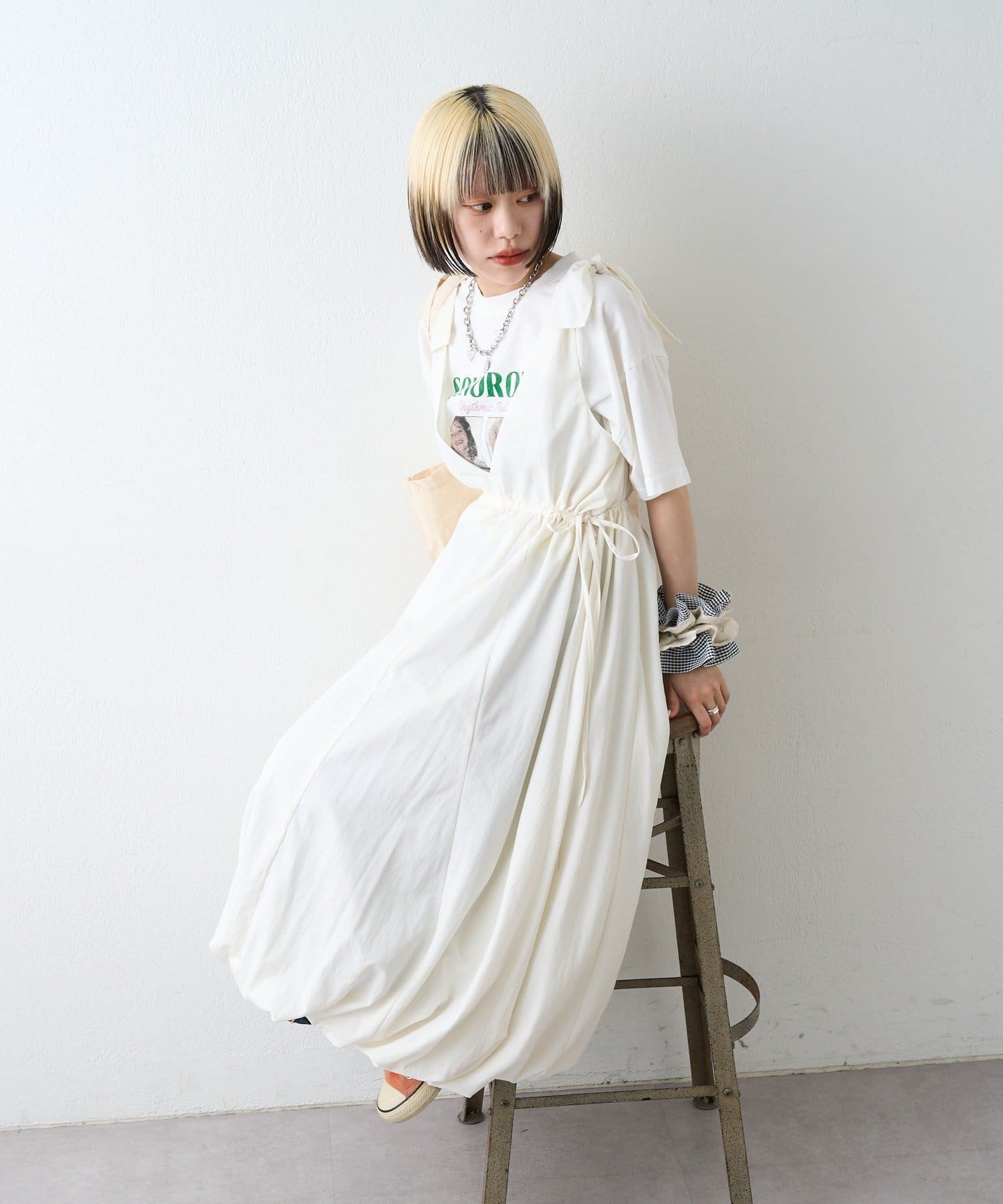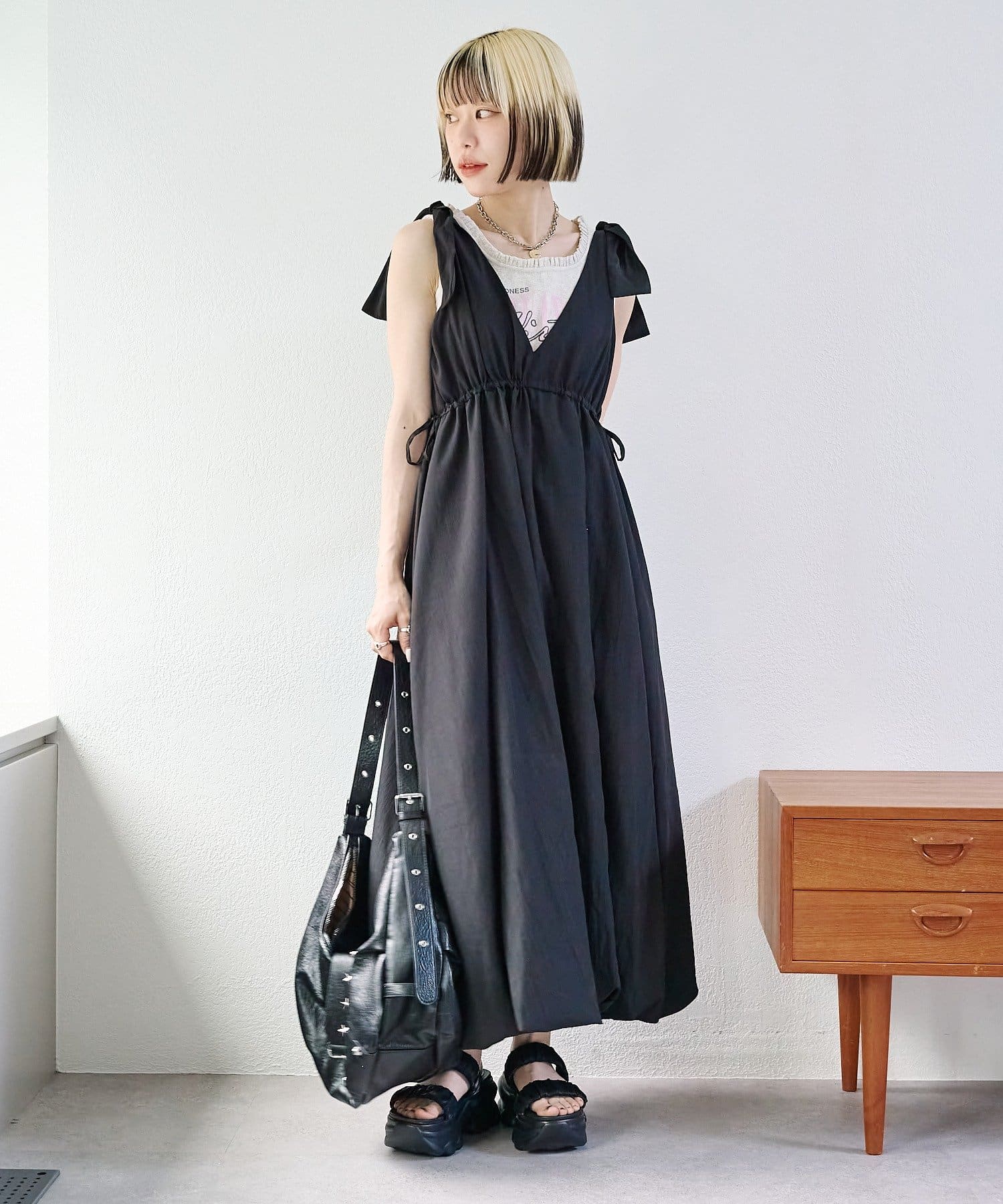【着用動画あり!/2サイズ展開】肩リボンバルーンワンピース