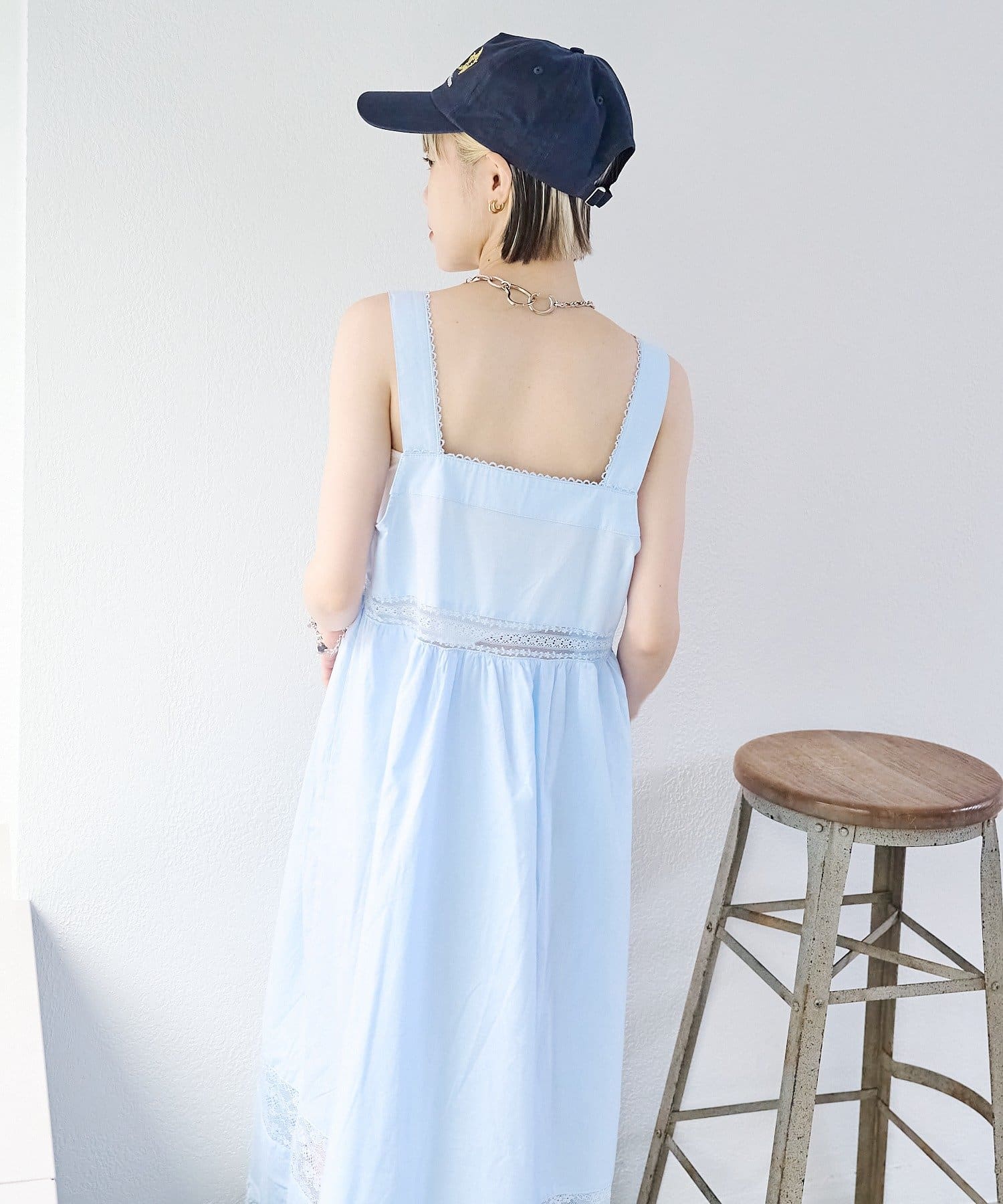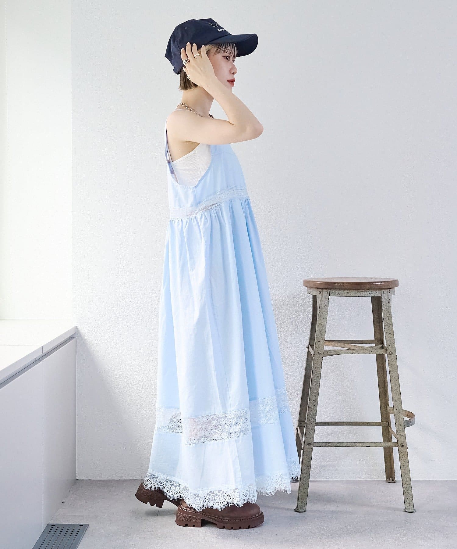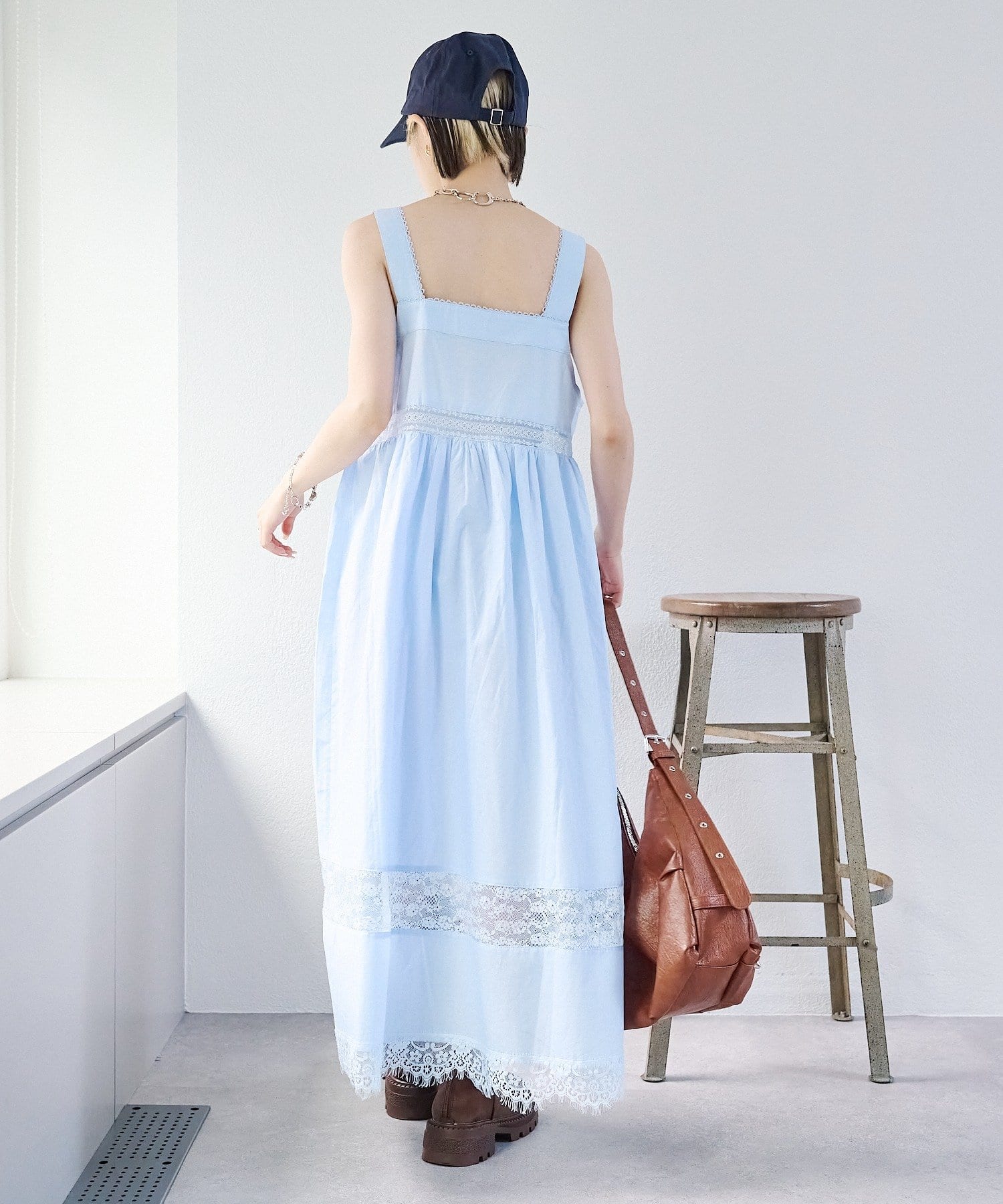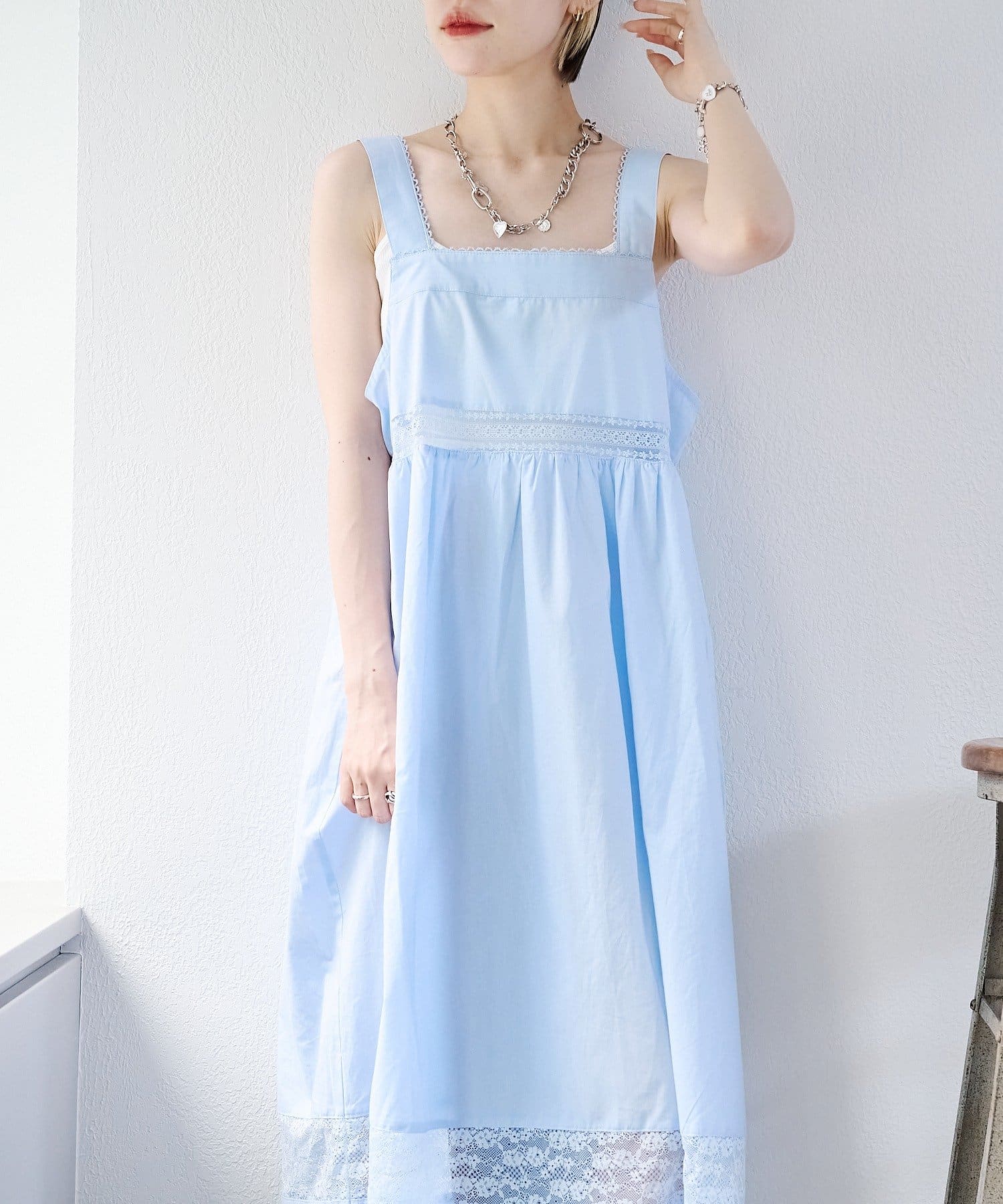 ・シンプルな生地感とレースの透け感が涼しげなワンピース