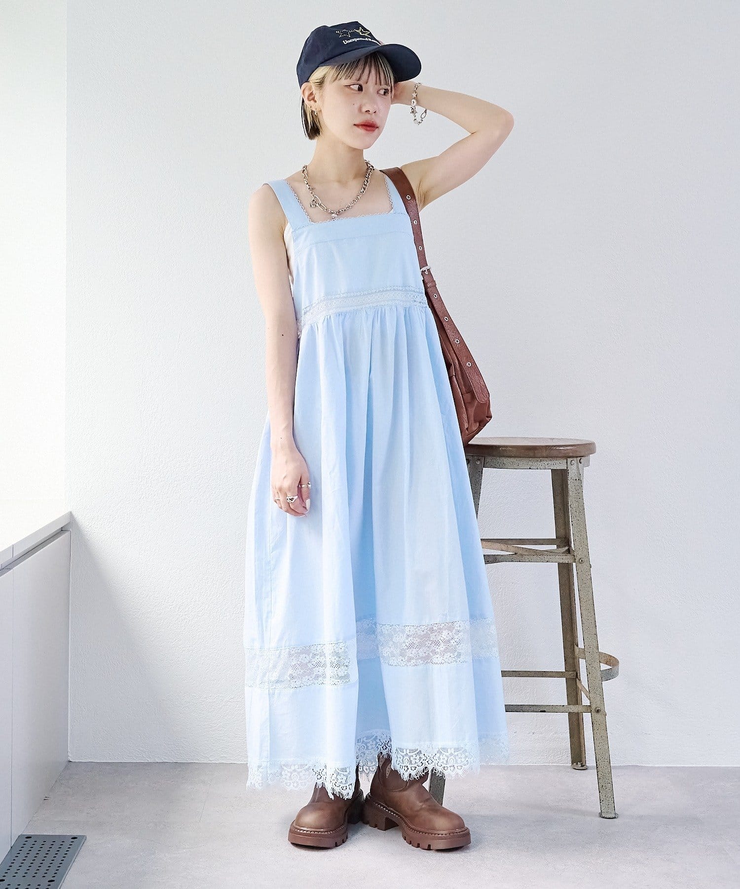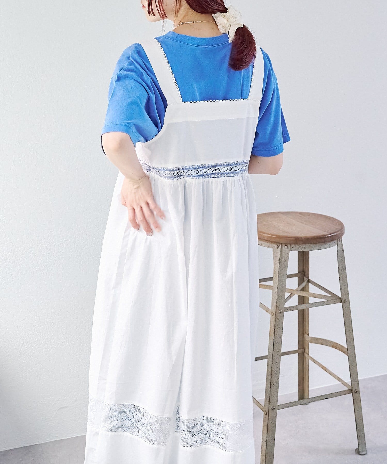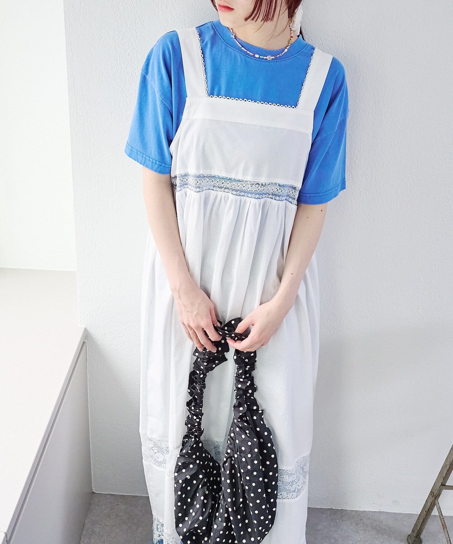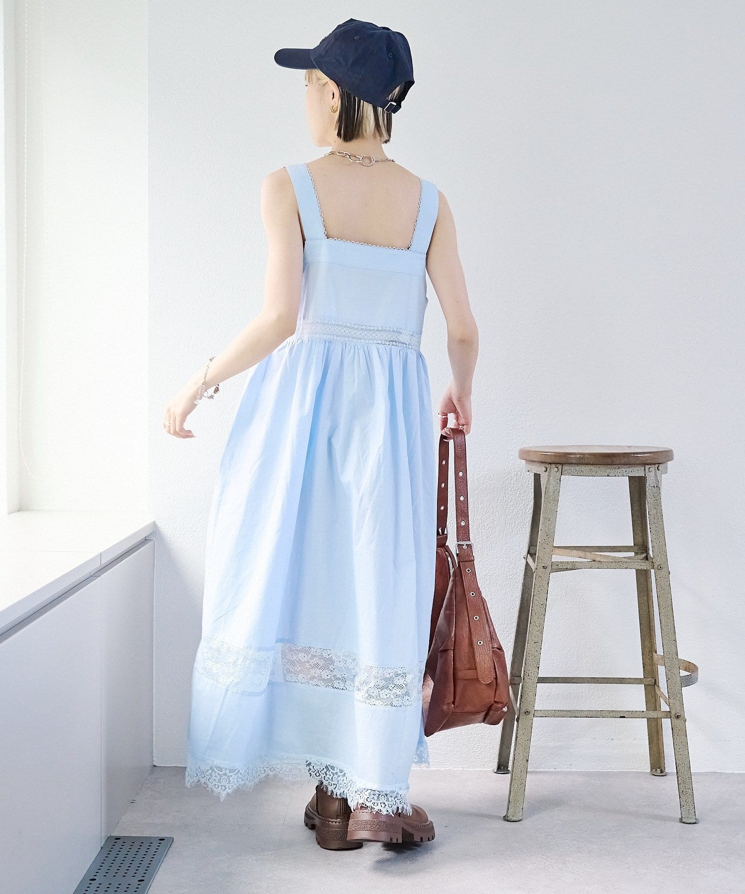・シンプルな生地感とレースの透け感が涼しげなワンピース