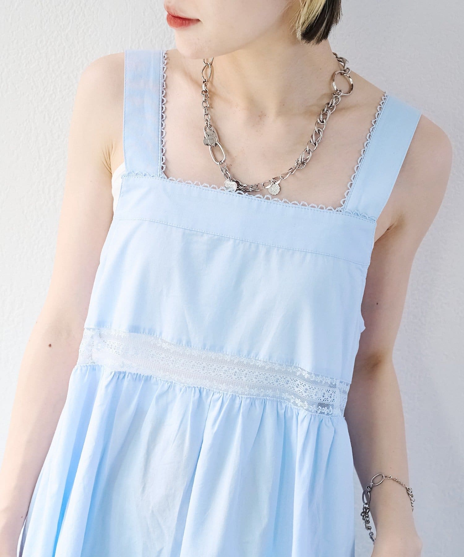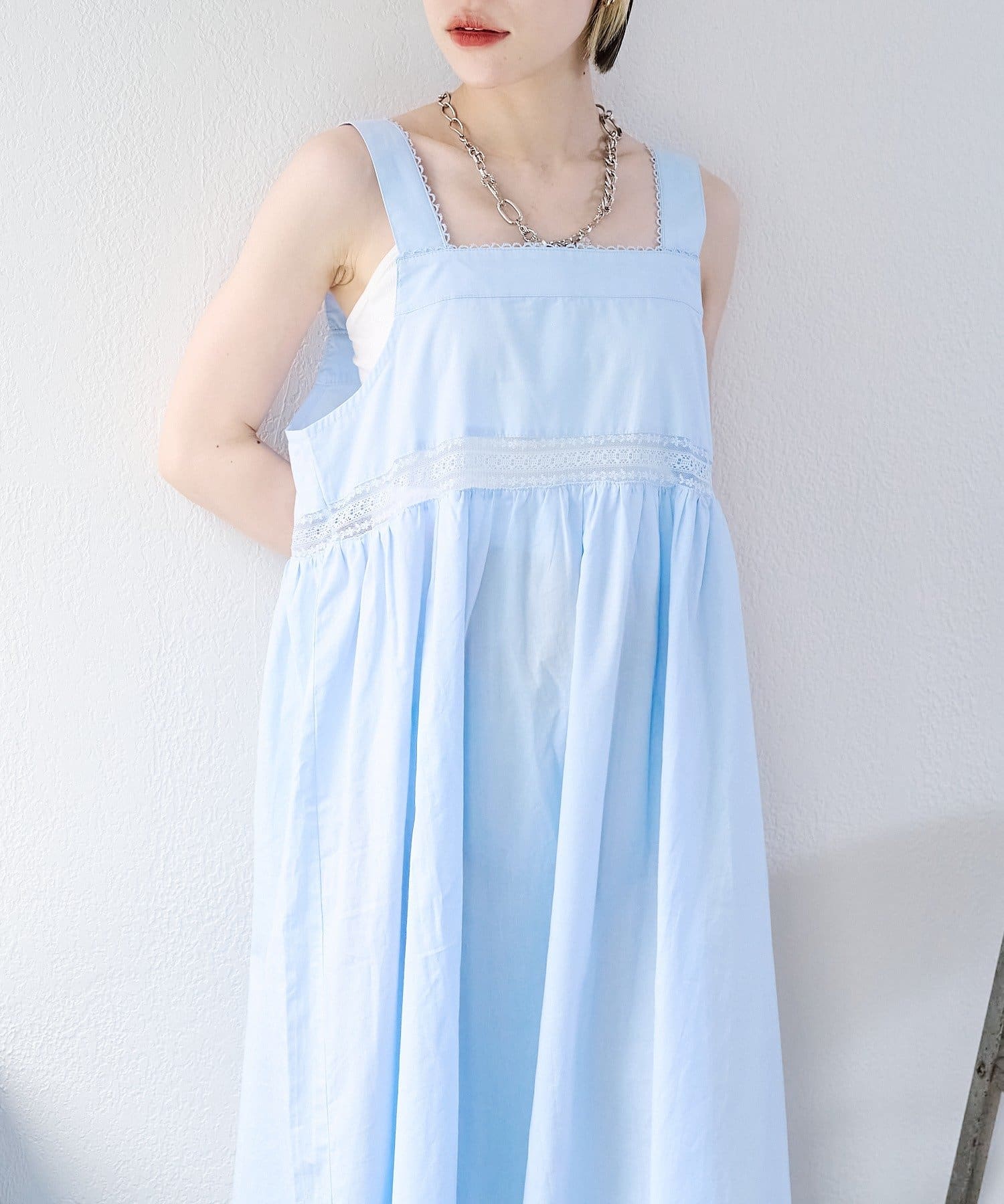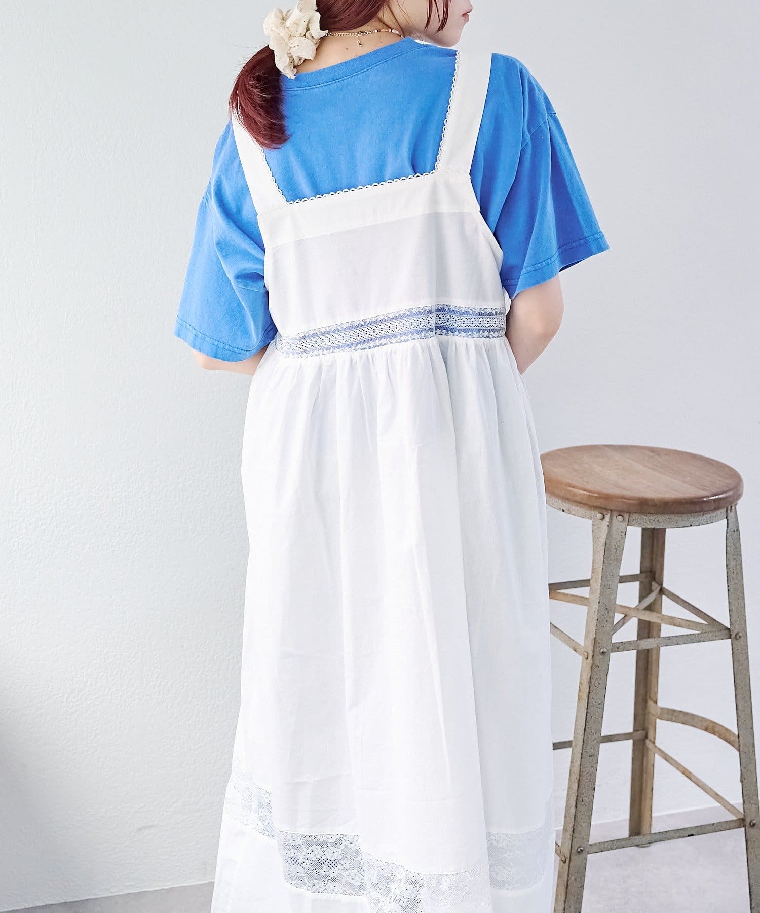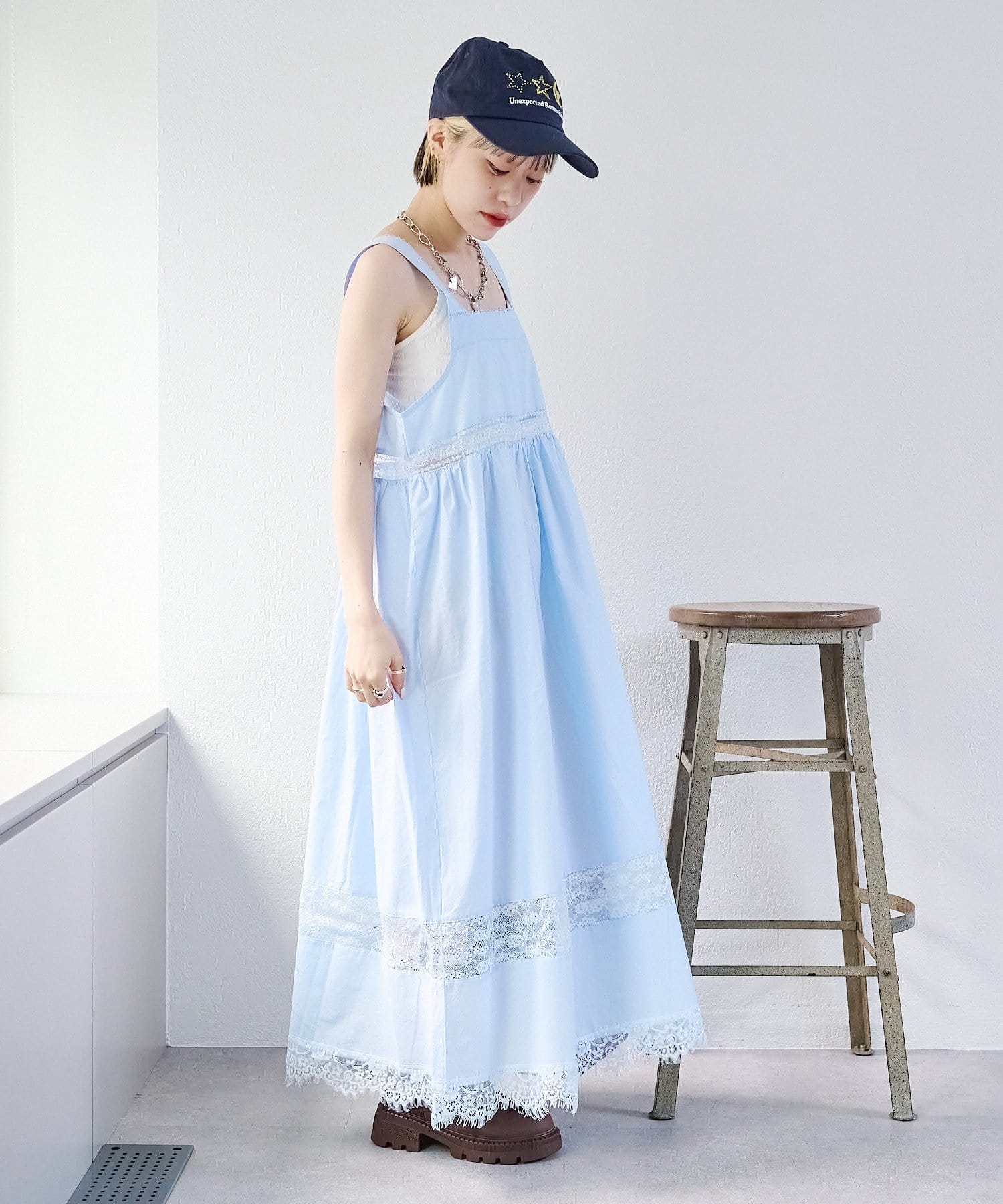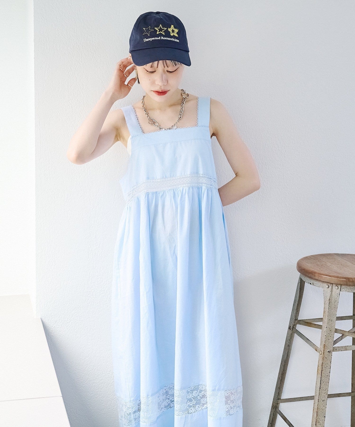 ・シンプルな生地感とレースの透け感が涼しげなワンピース