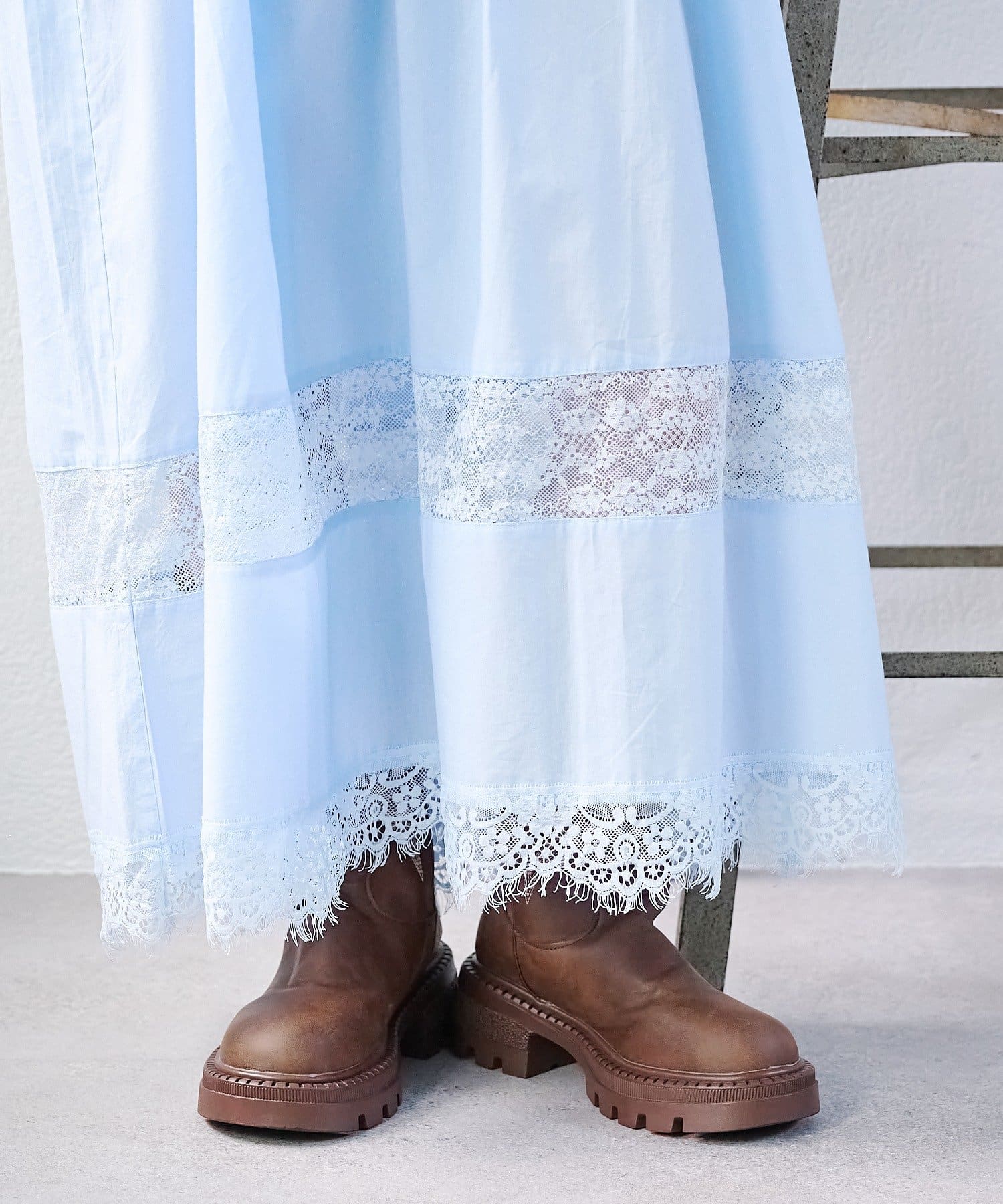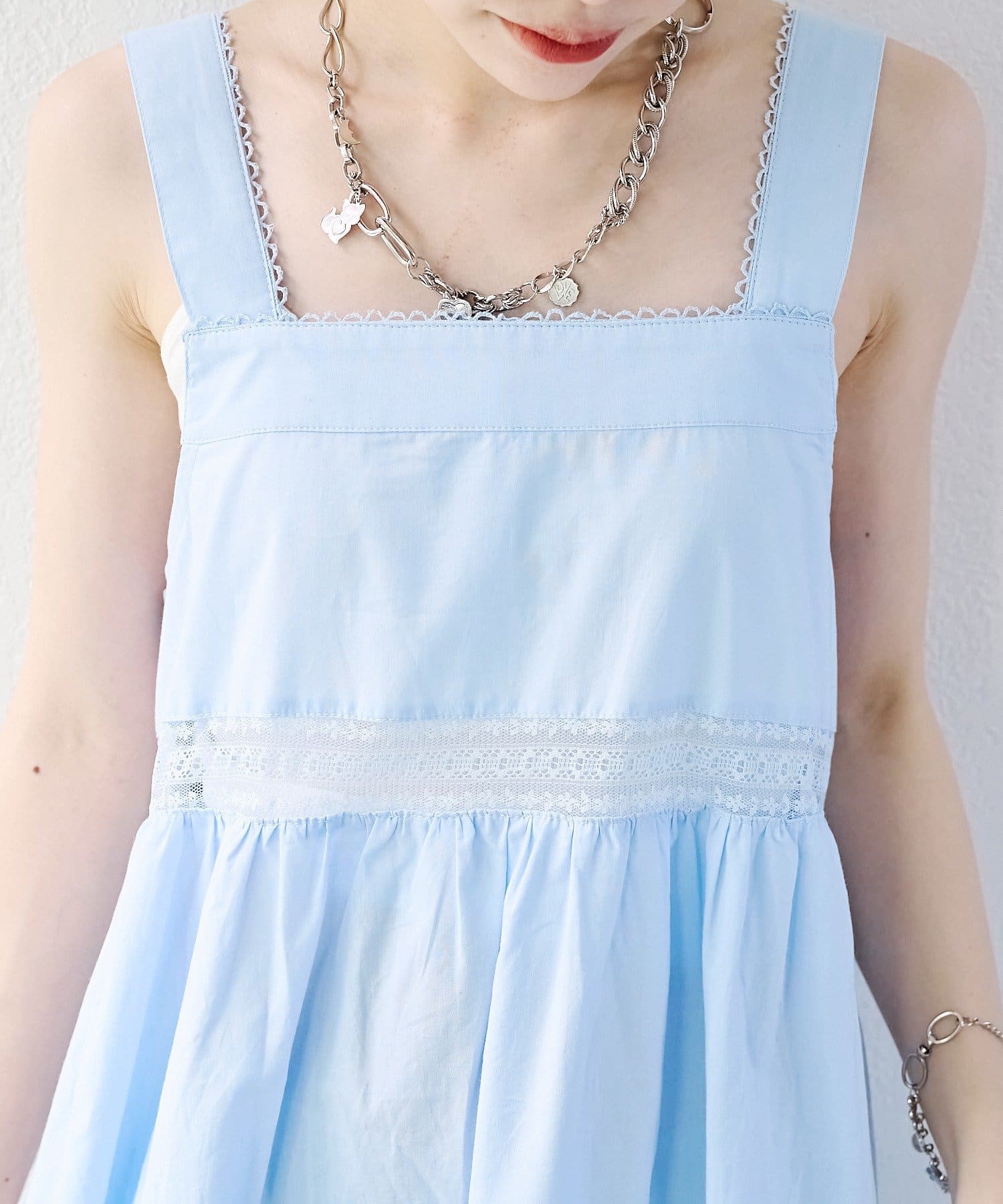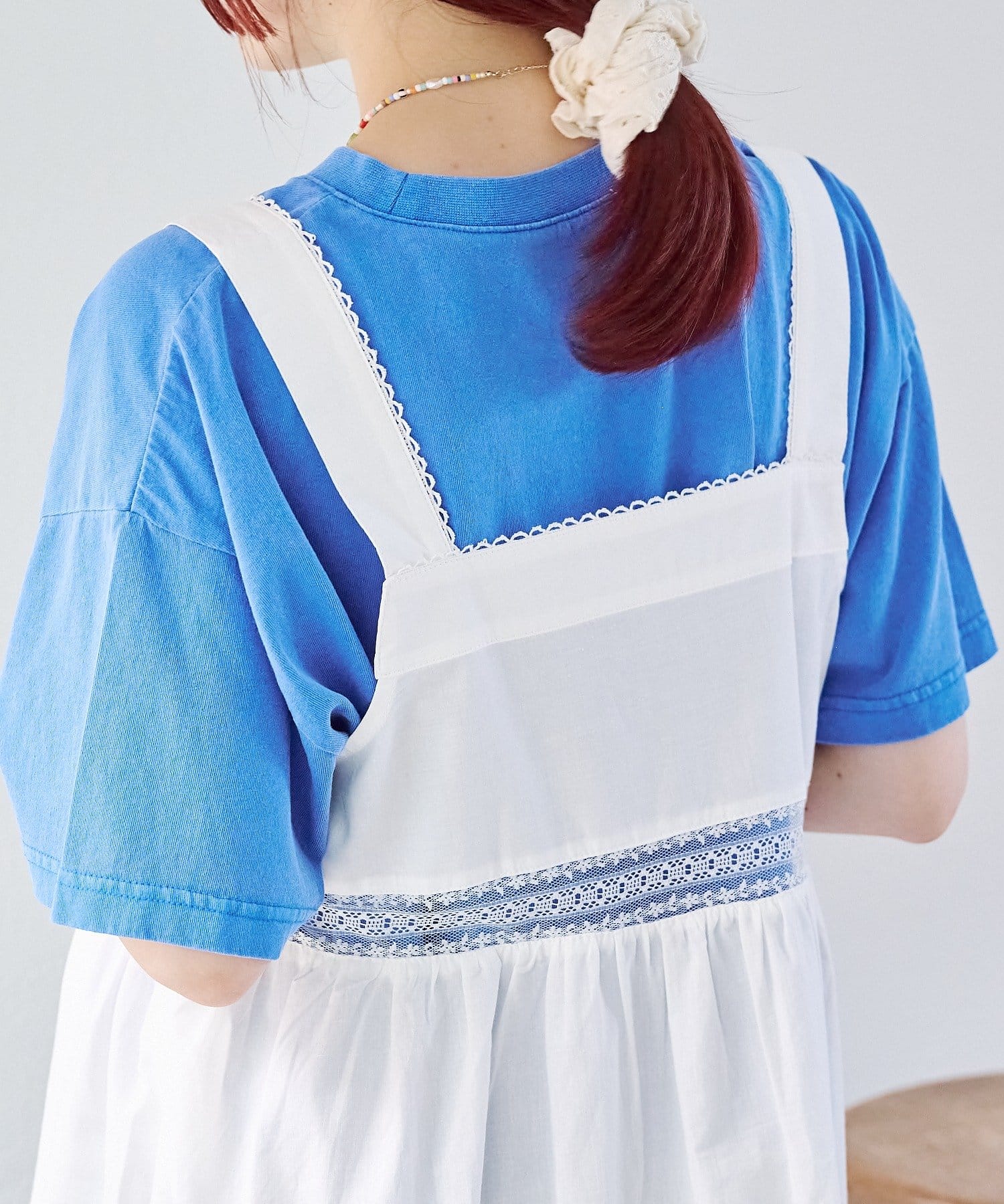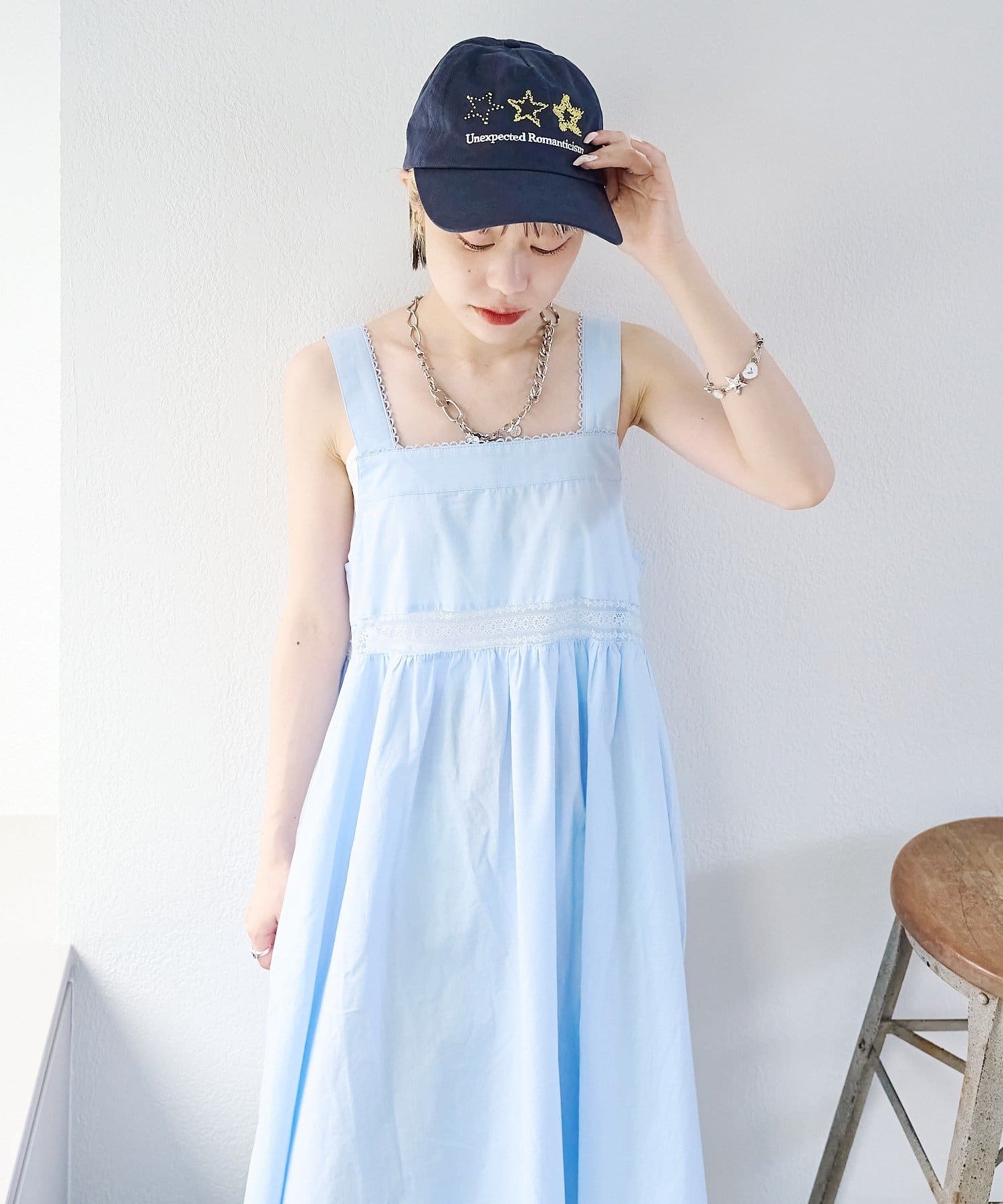 ・シンプルな生地感とレースの透け感が涼しげなワンピース