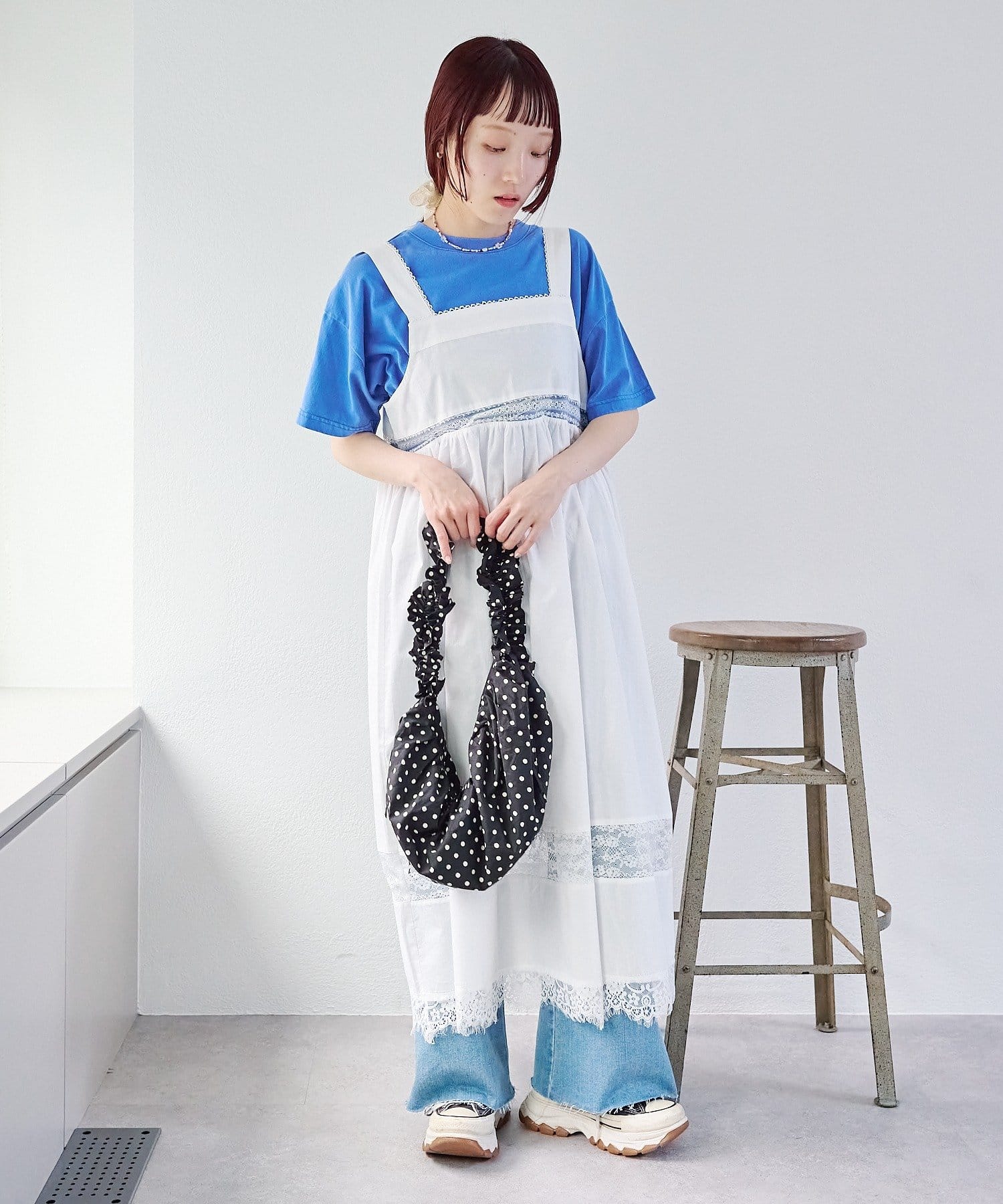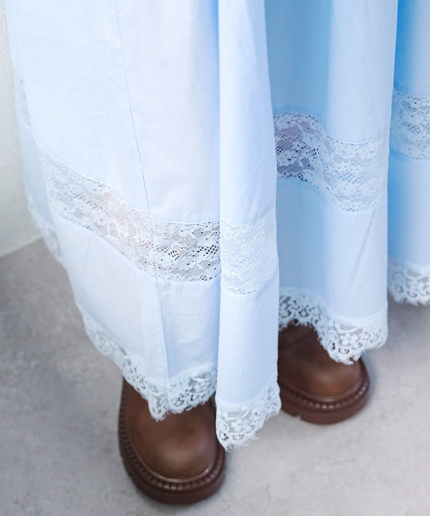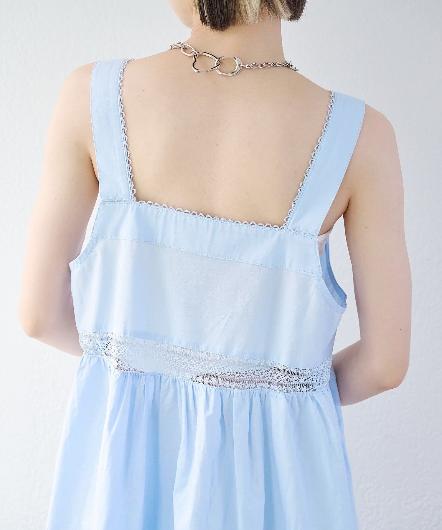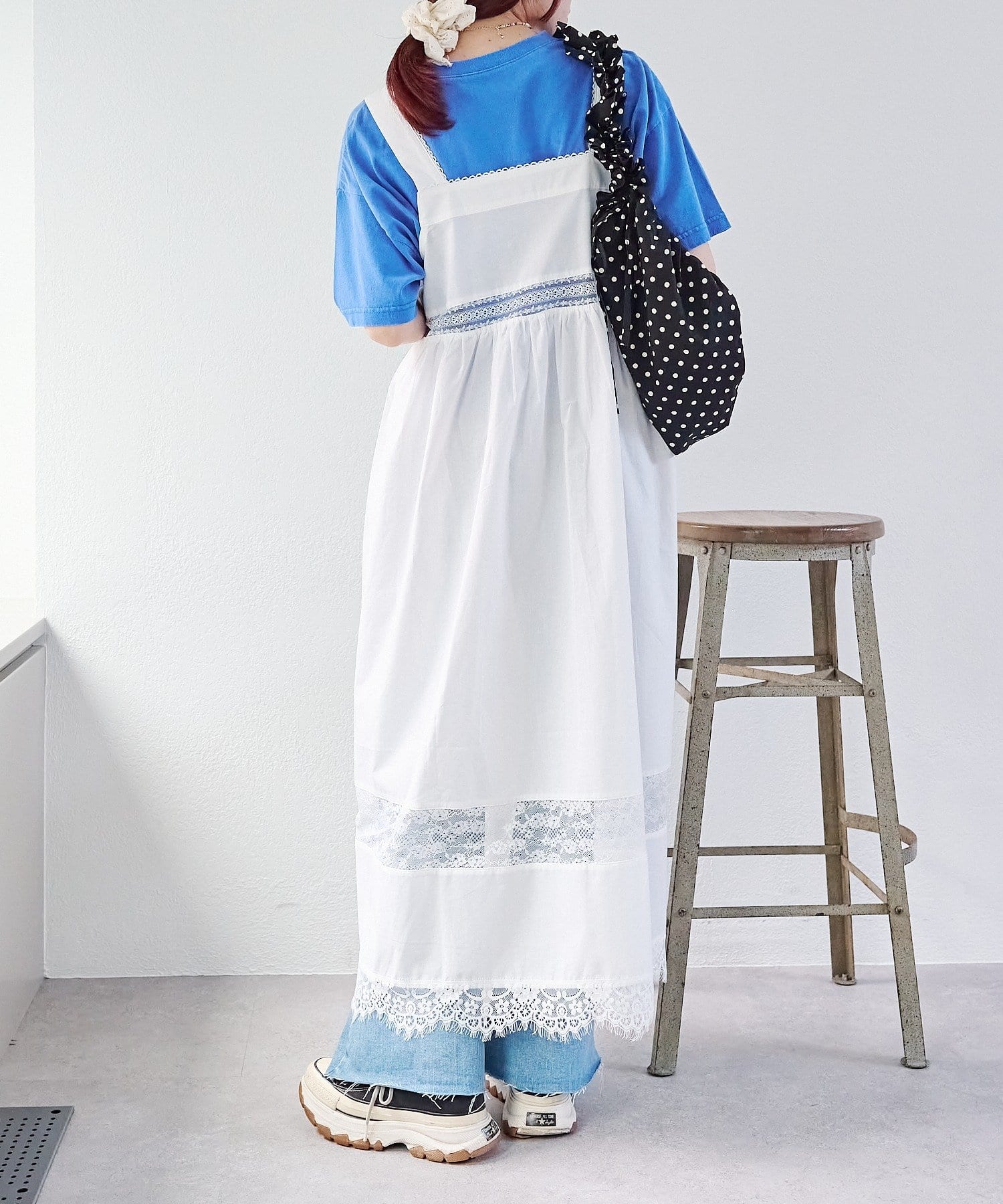 ・シンプルな生地感とレースの透け感が涼しげなワンピース