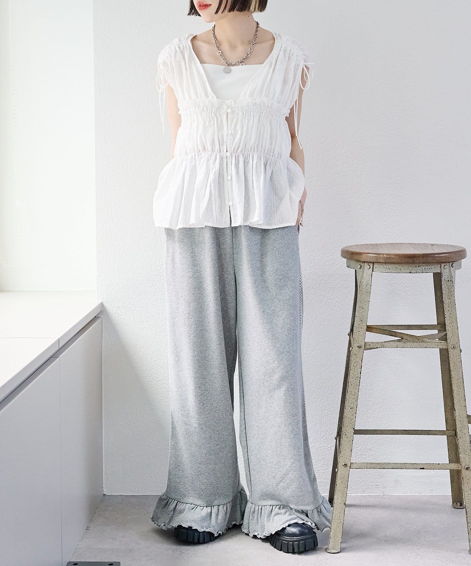 ・レース×スウェットの相性も良く、ラフなスタイルもおすすめ!