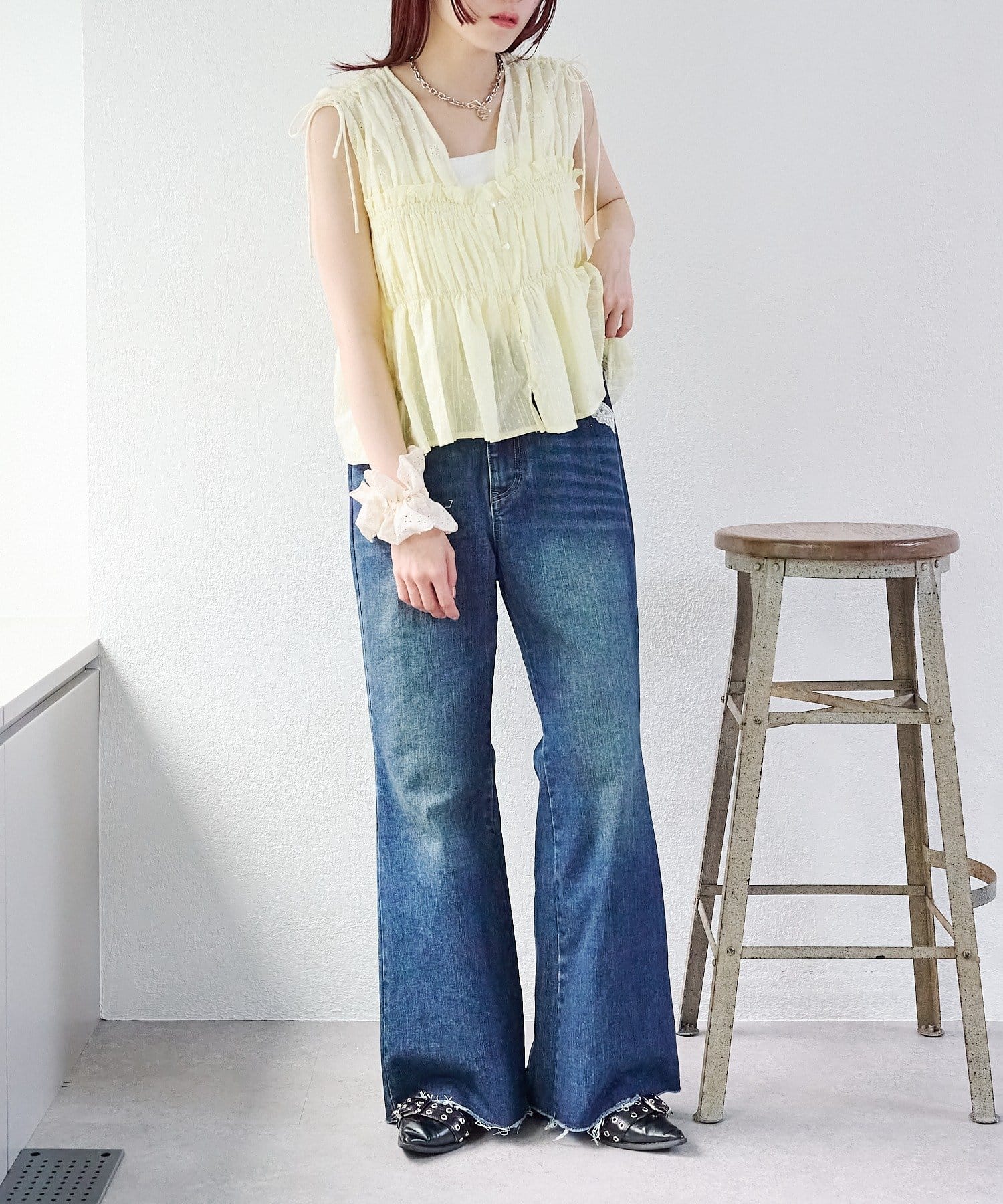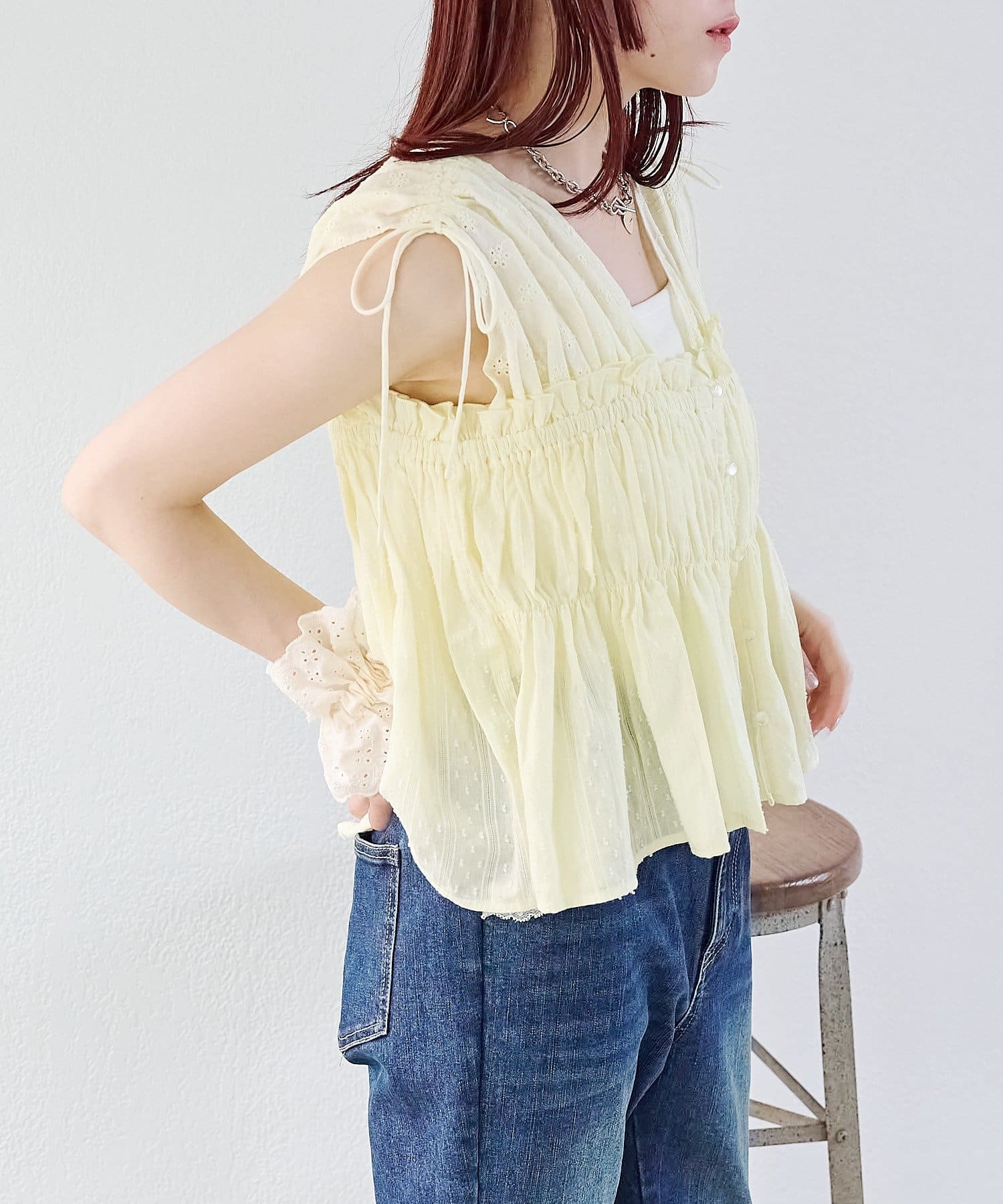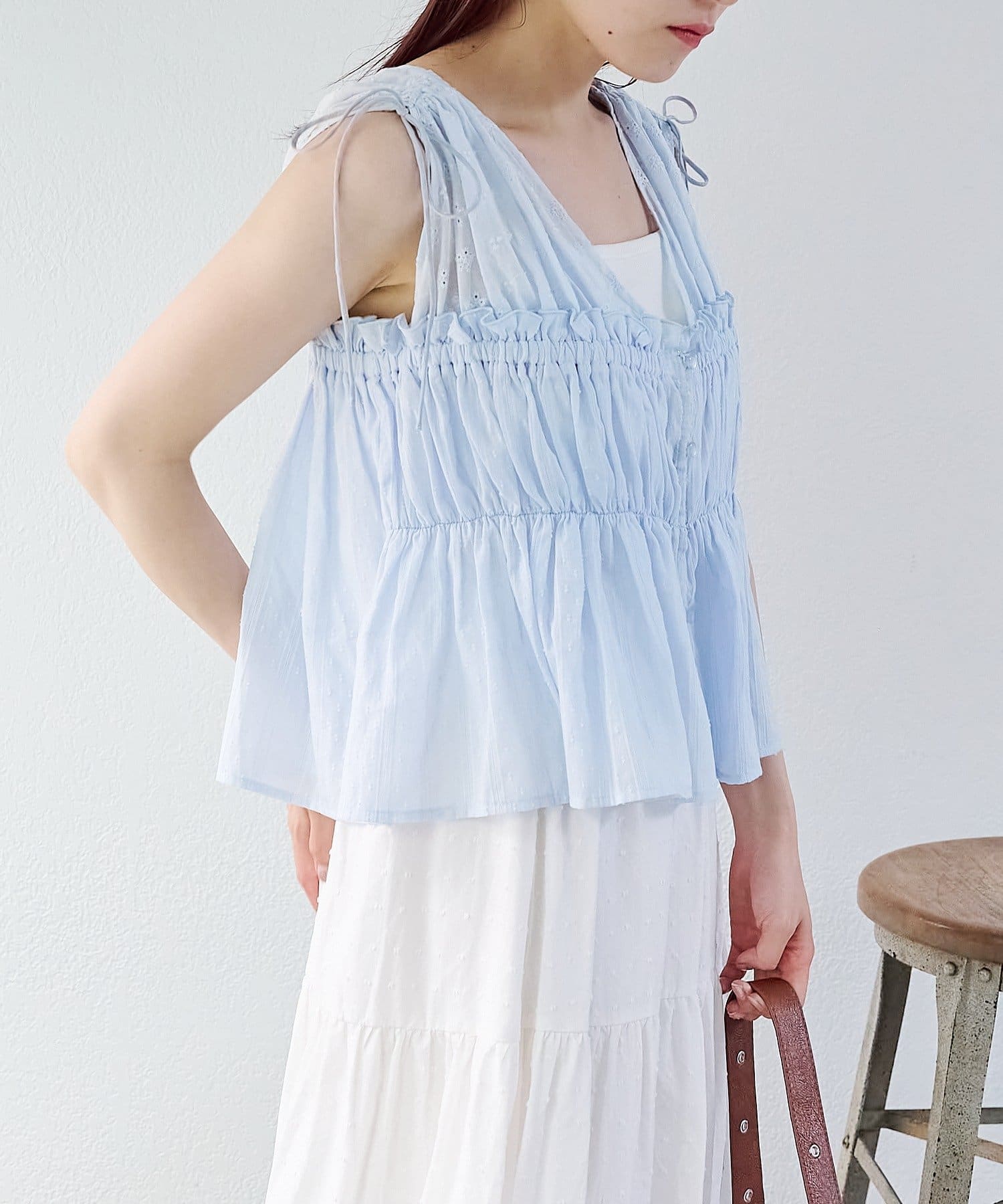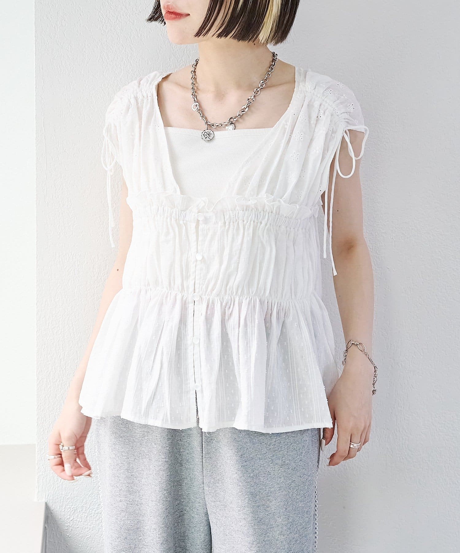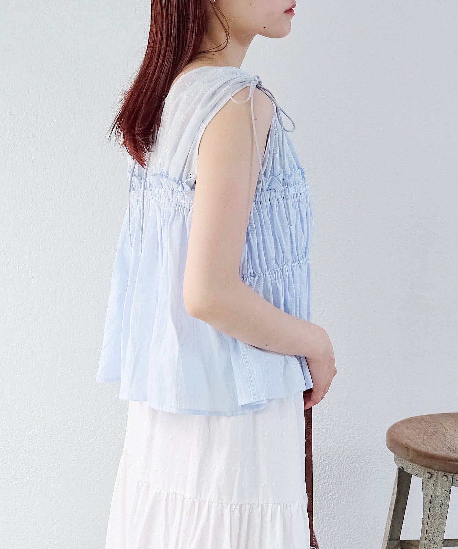 ・肩のドロストでコーデに合わせた雰囲気に、結んだリボンが可愛いデザイン