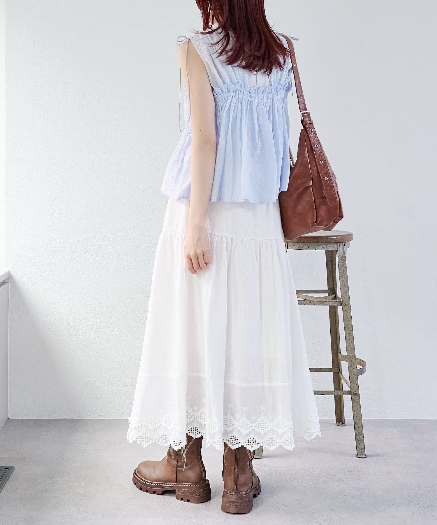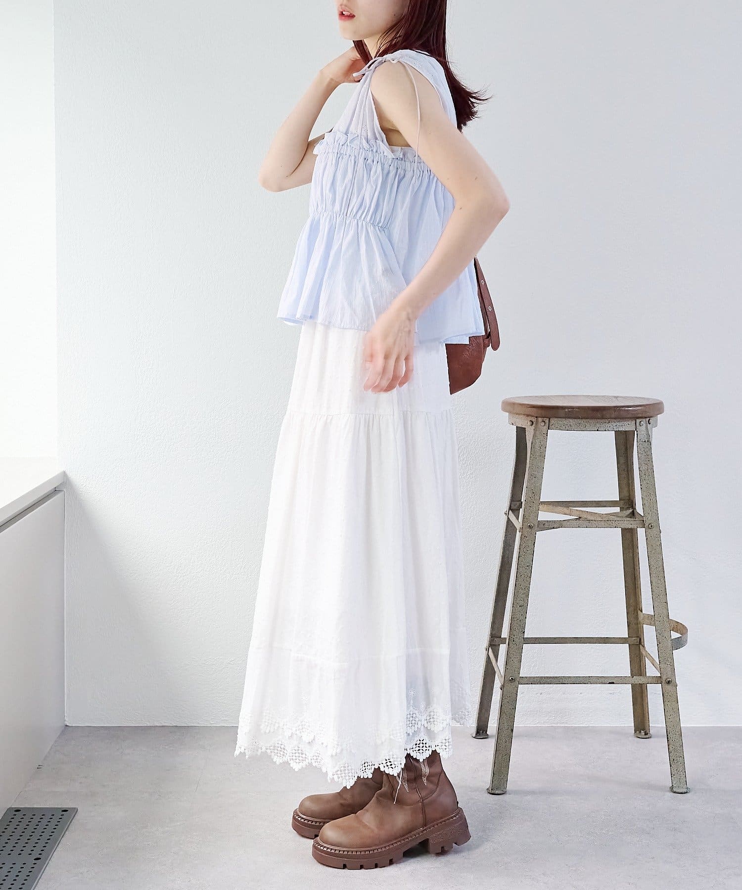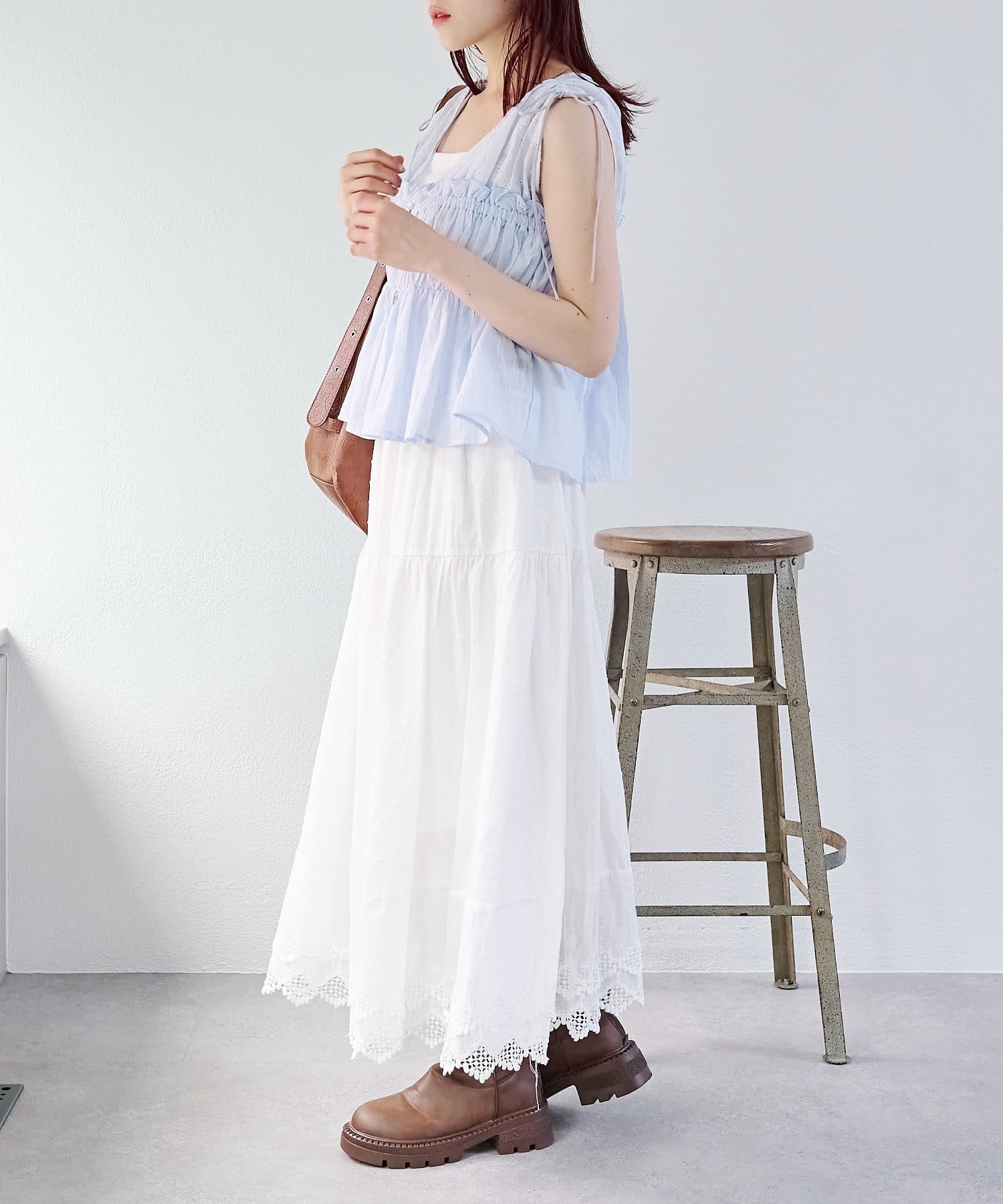 ・レースの生地とフリルシャーリングがふわっと広がるシルエットにマッチ◎