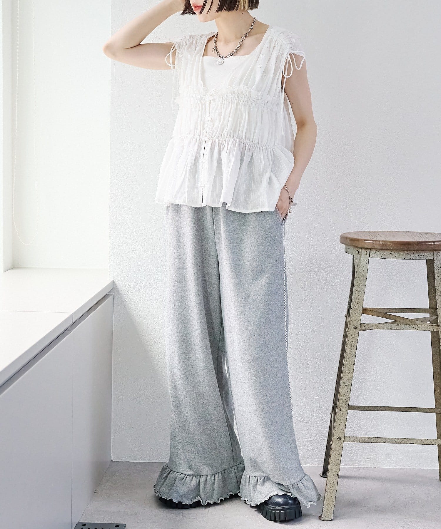 ・レース×スウェットの相性も良く、ラフなスタイルもおすすめ!