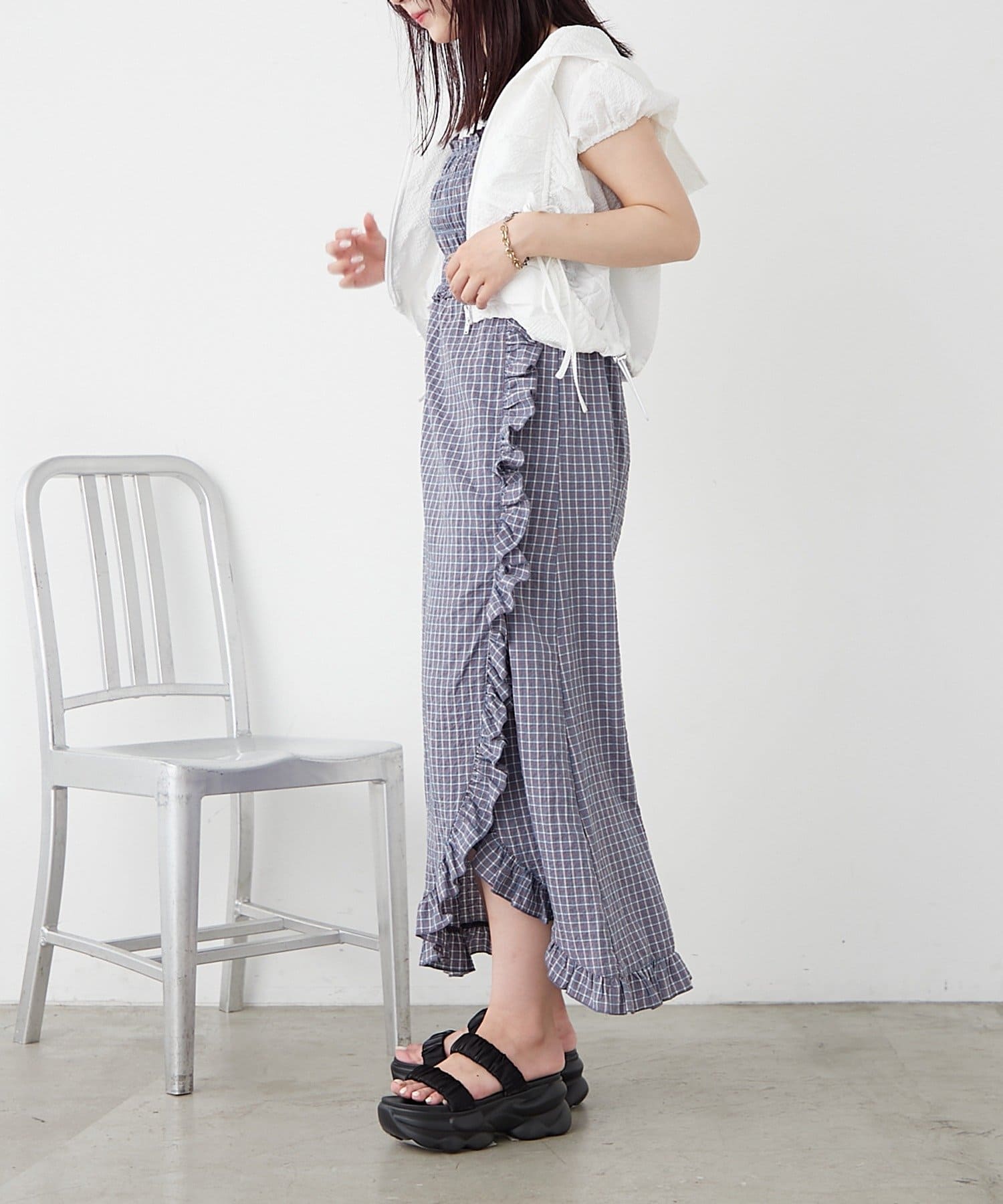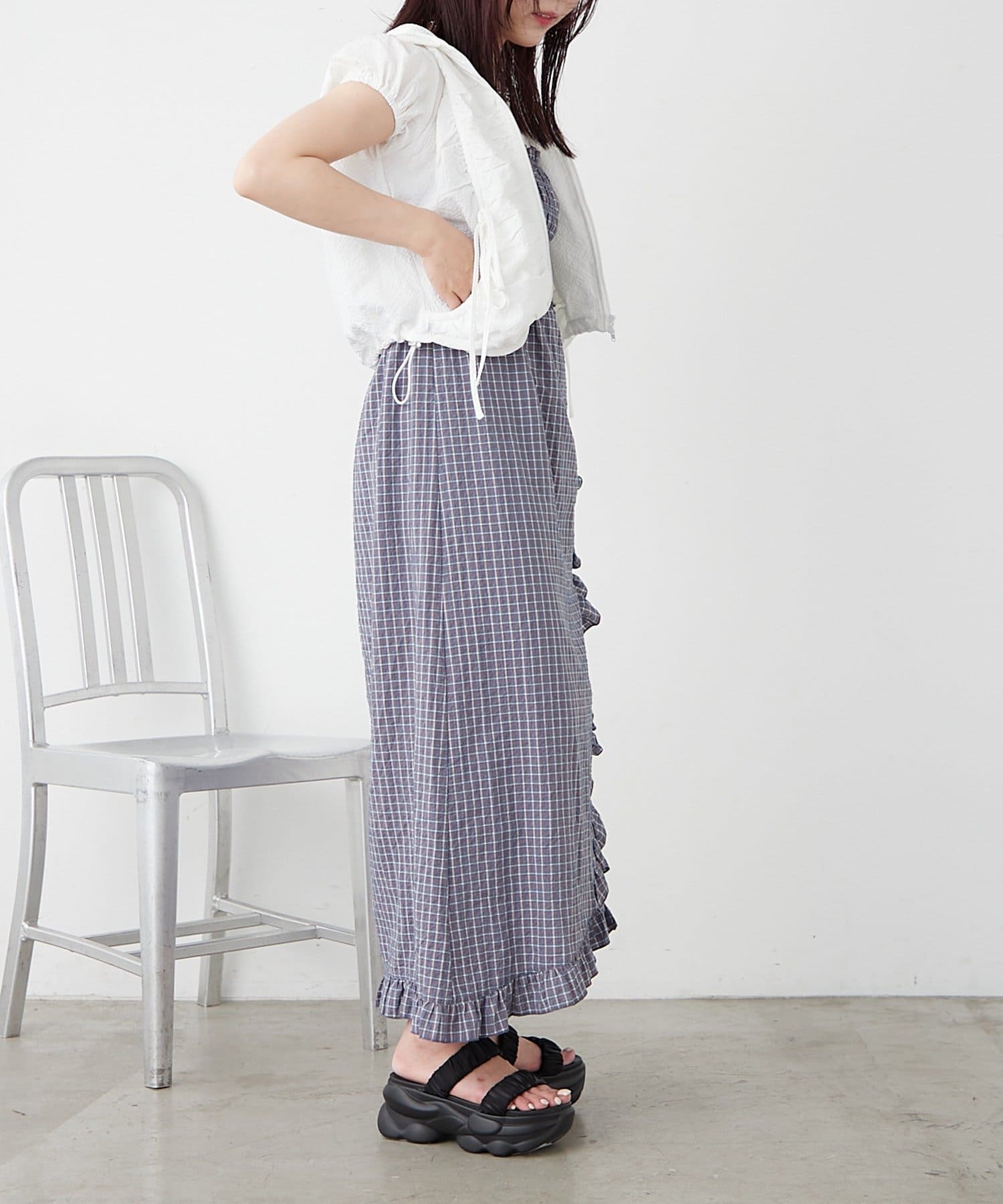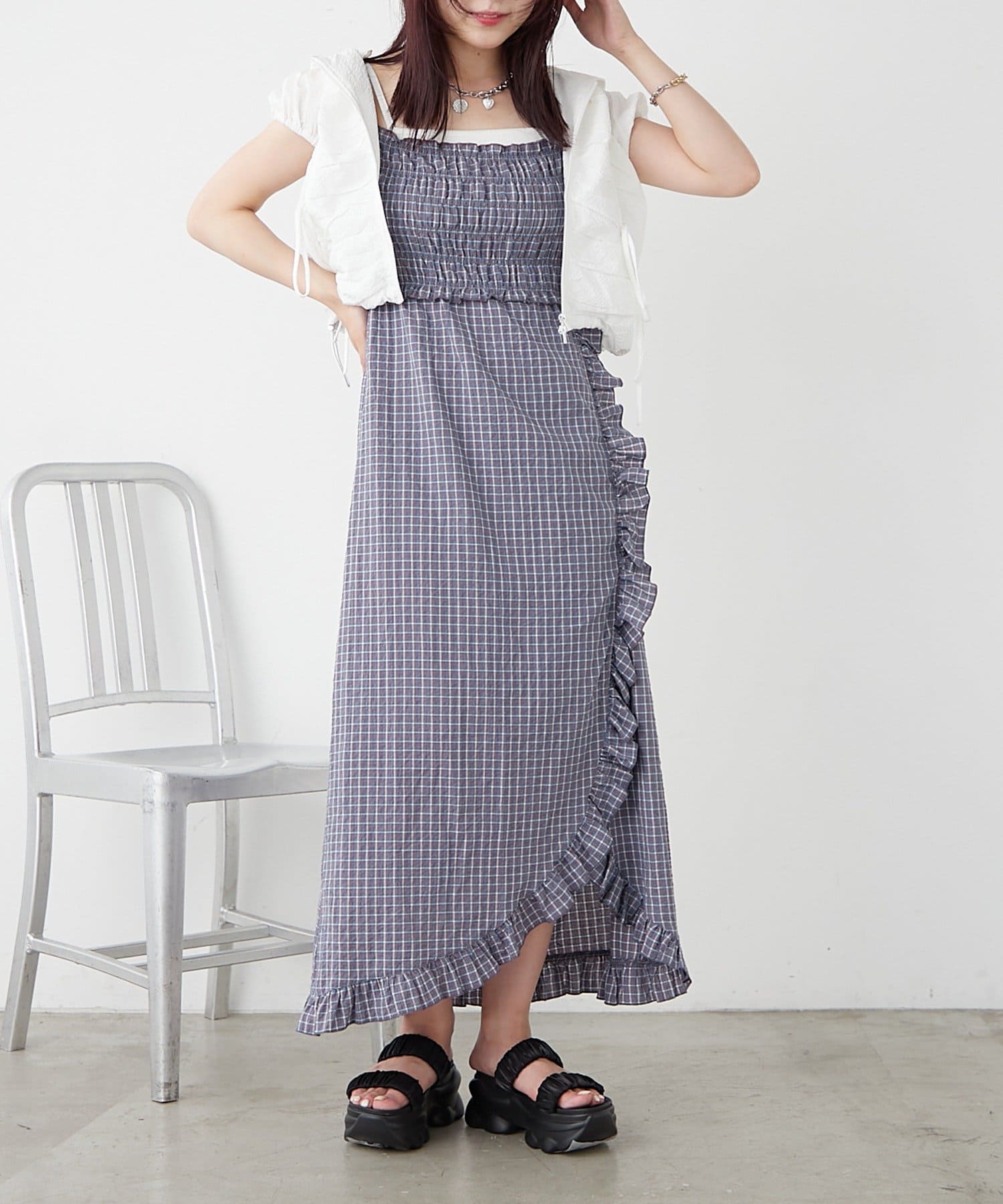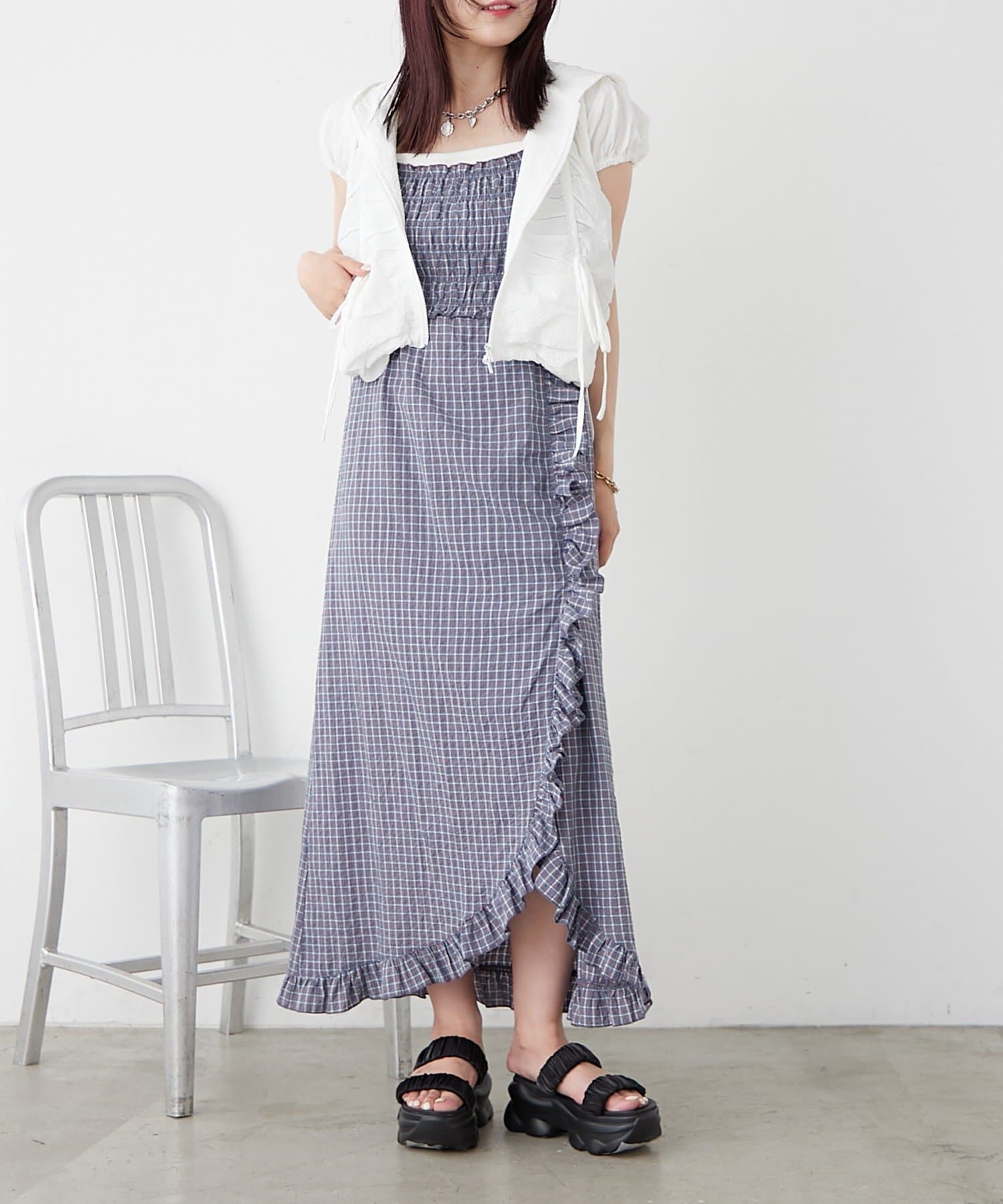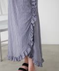 チェック柄とフリルのスリットが可愛いワンピース♡