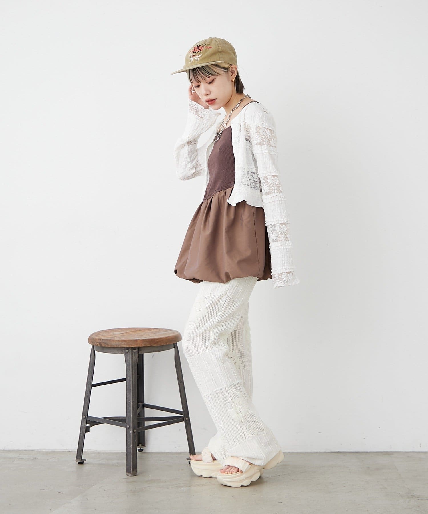 ・腕の作りがタイトなのでキャミワンピやノースリーブと合わせるのがおすすめ!