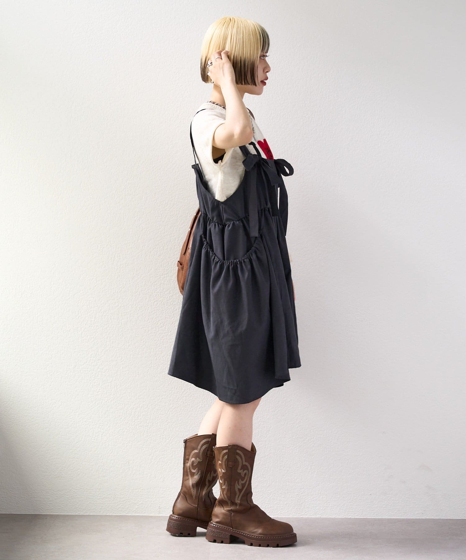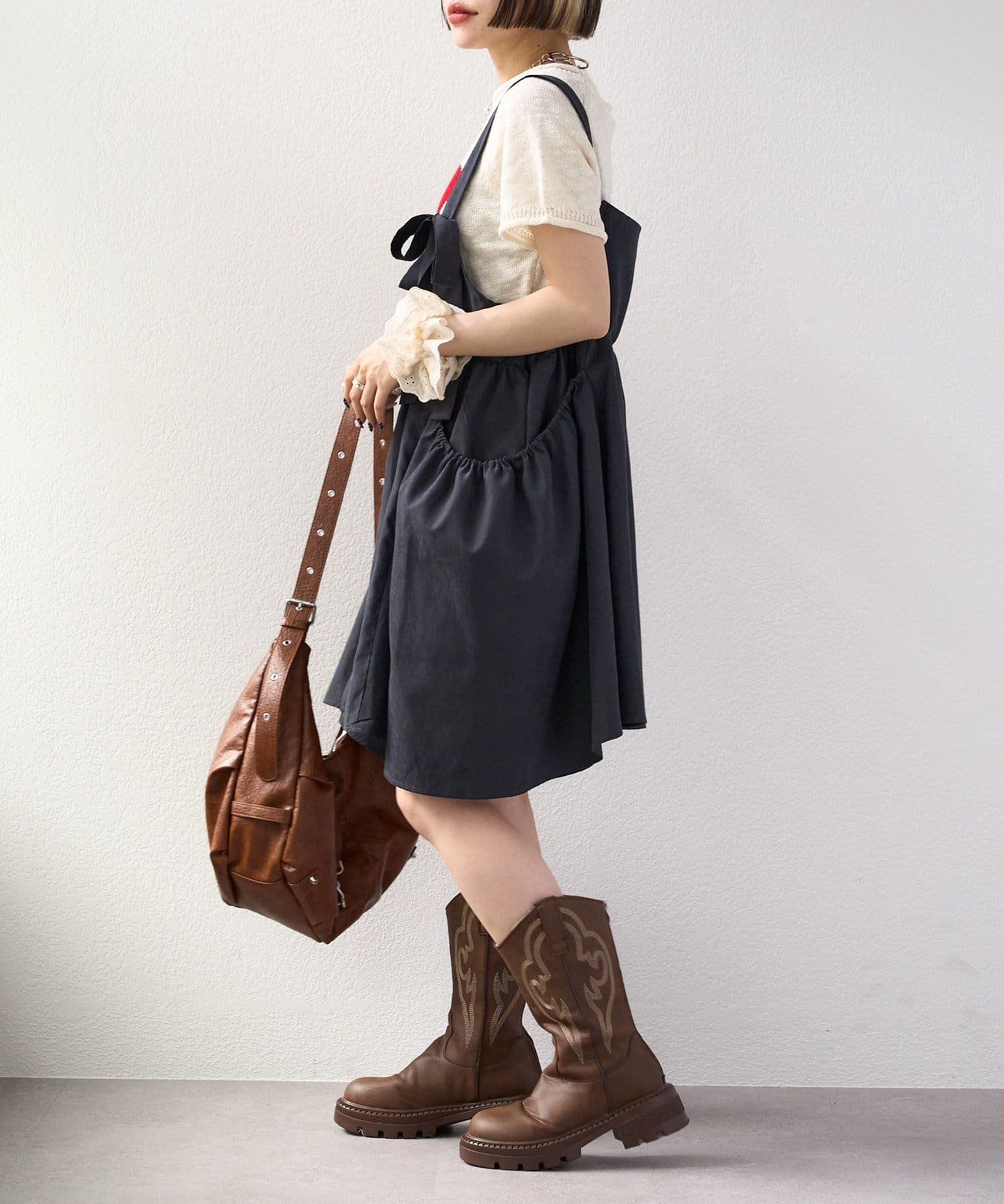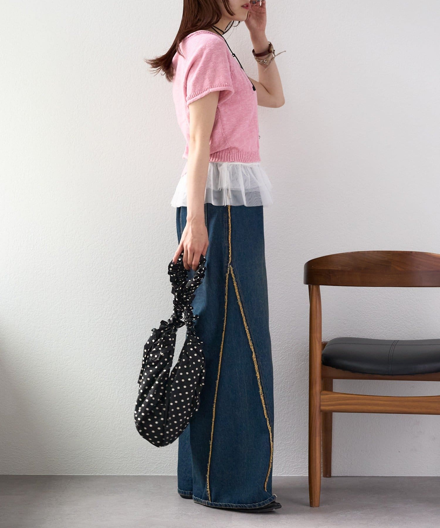 ・分厚くないニットなのでワンピースなどのインナーとしても使えます!