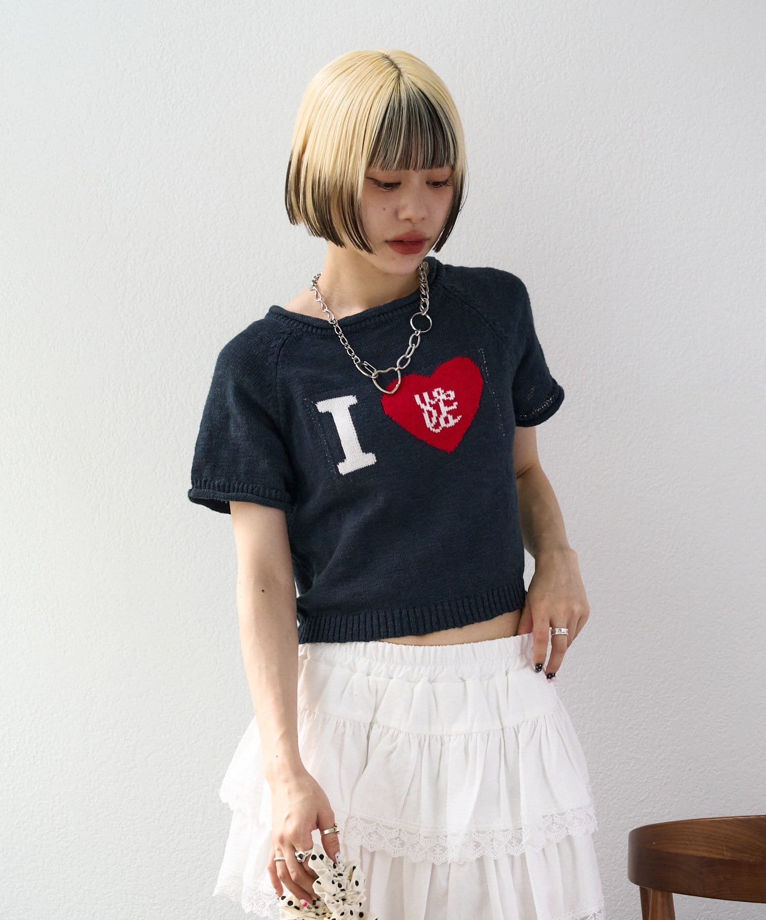 ・大きな「I ♡(love)」のロゴが特徴のニット