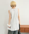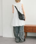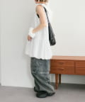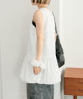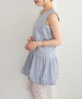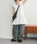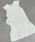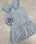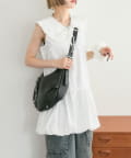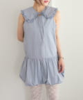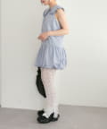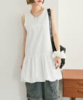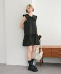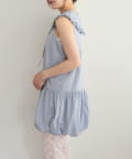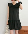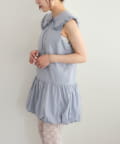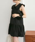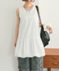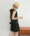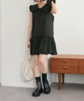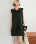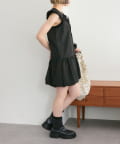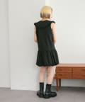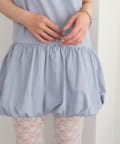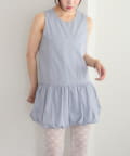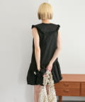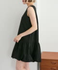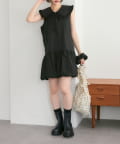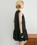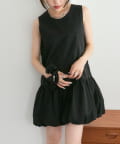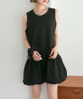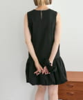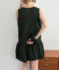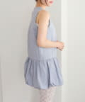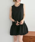 ・襟元シンプルなノースリーブワンピースはバルーンスカートでシルエットがかわいい♪