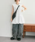 ・シンプルなワンピースはボトムスを合わせたレイヤードスタイルも!
