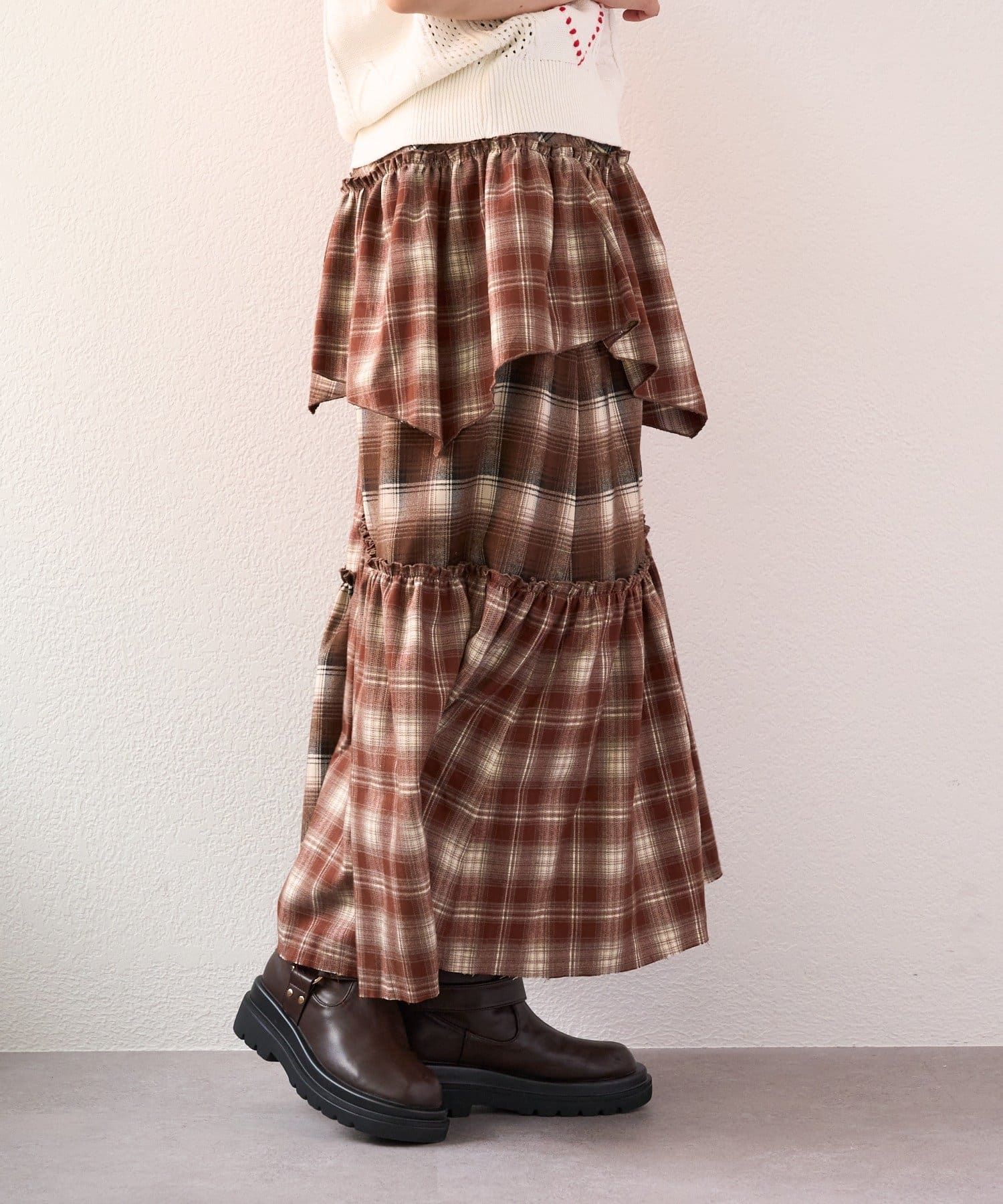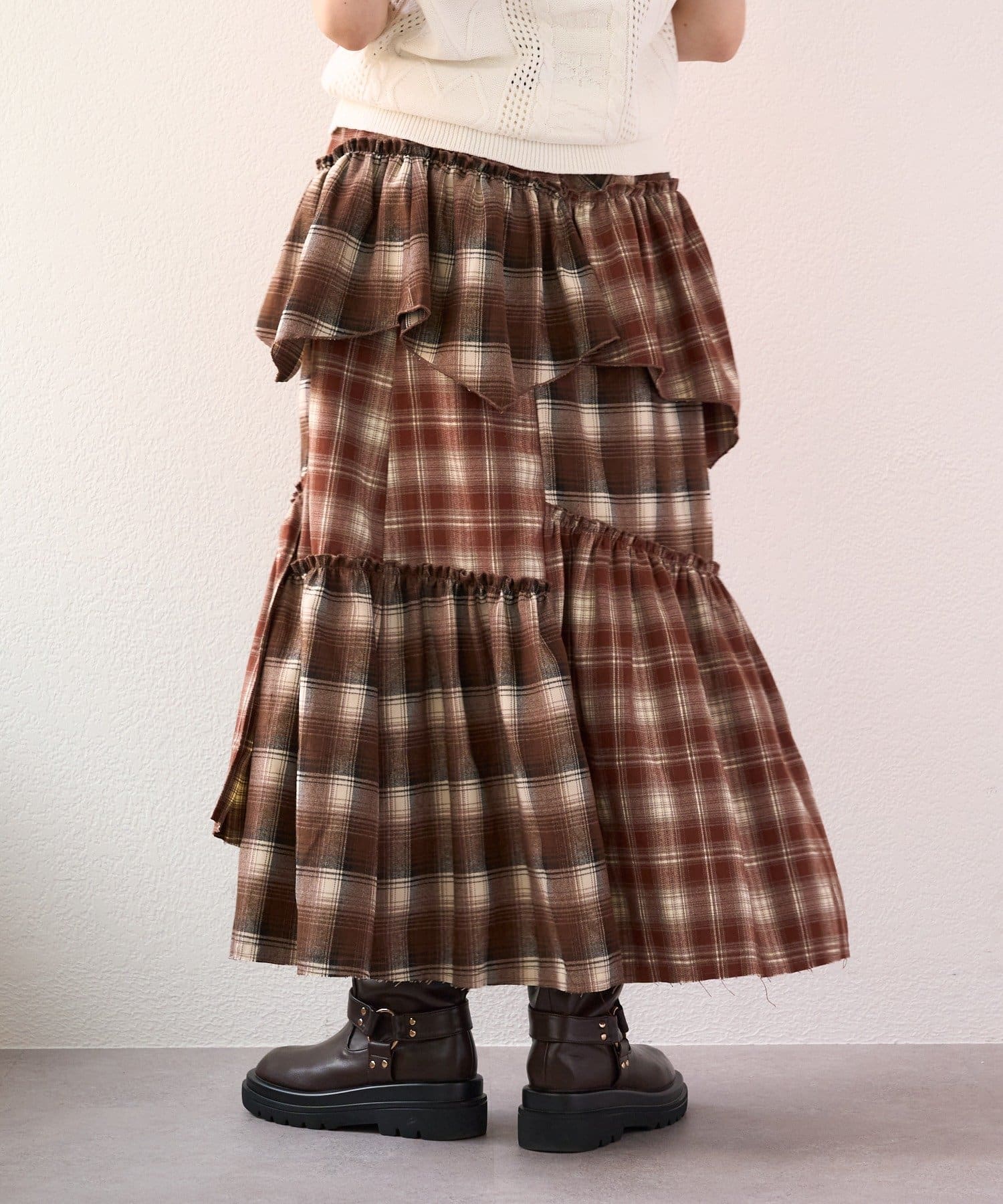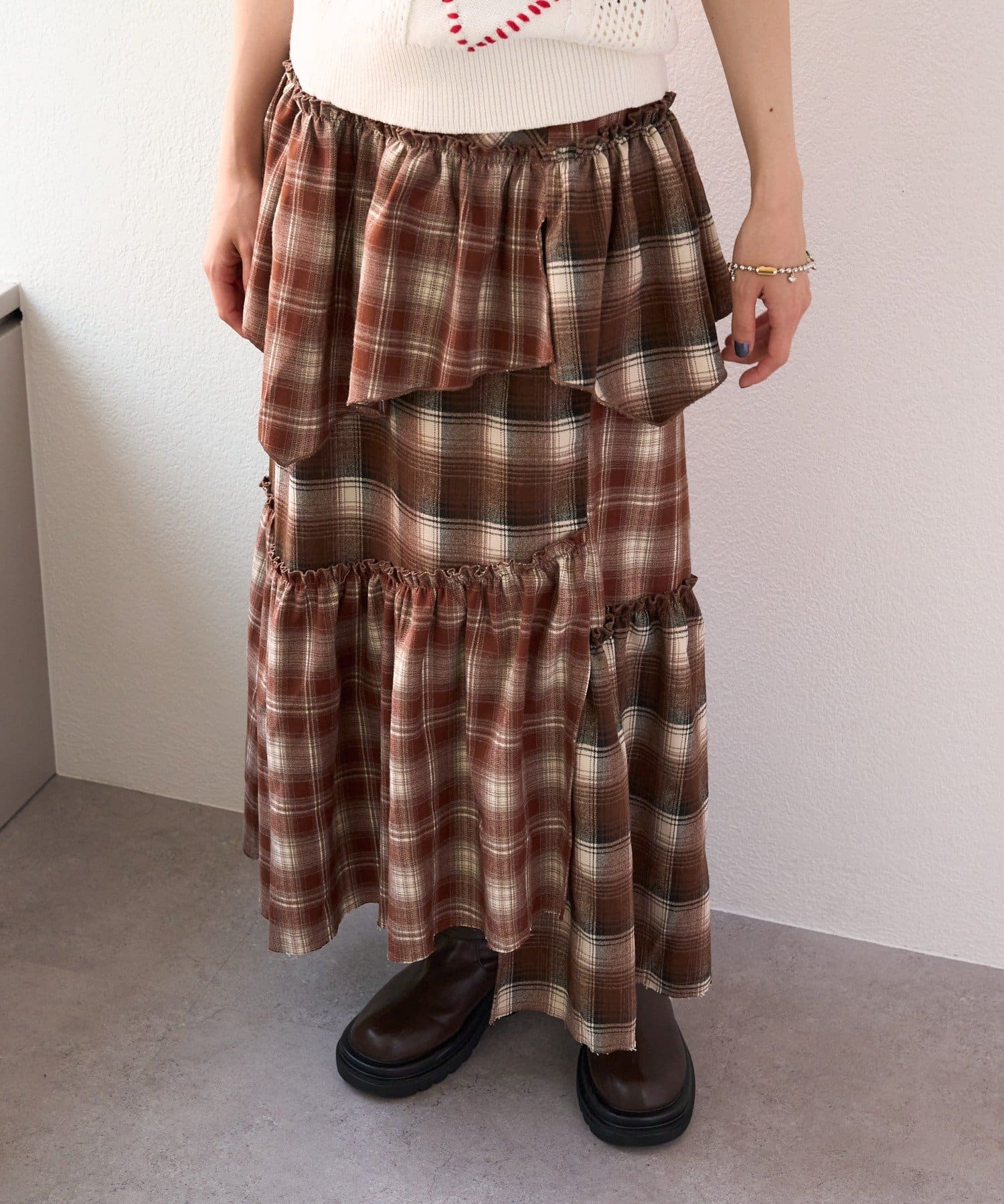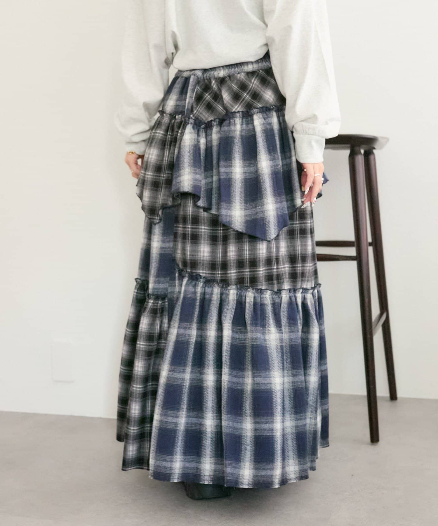 【25AW】リメイクチェックティアードスカート