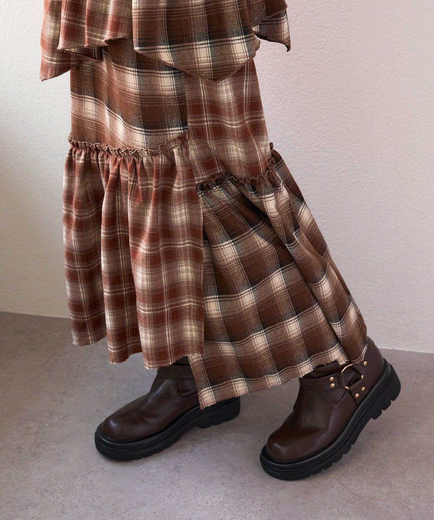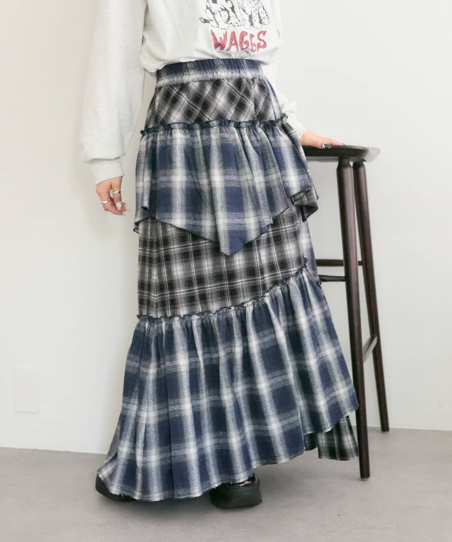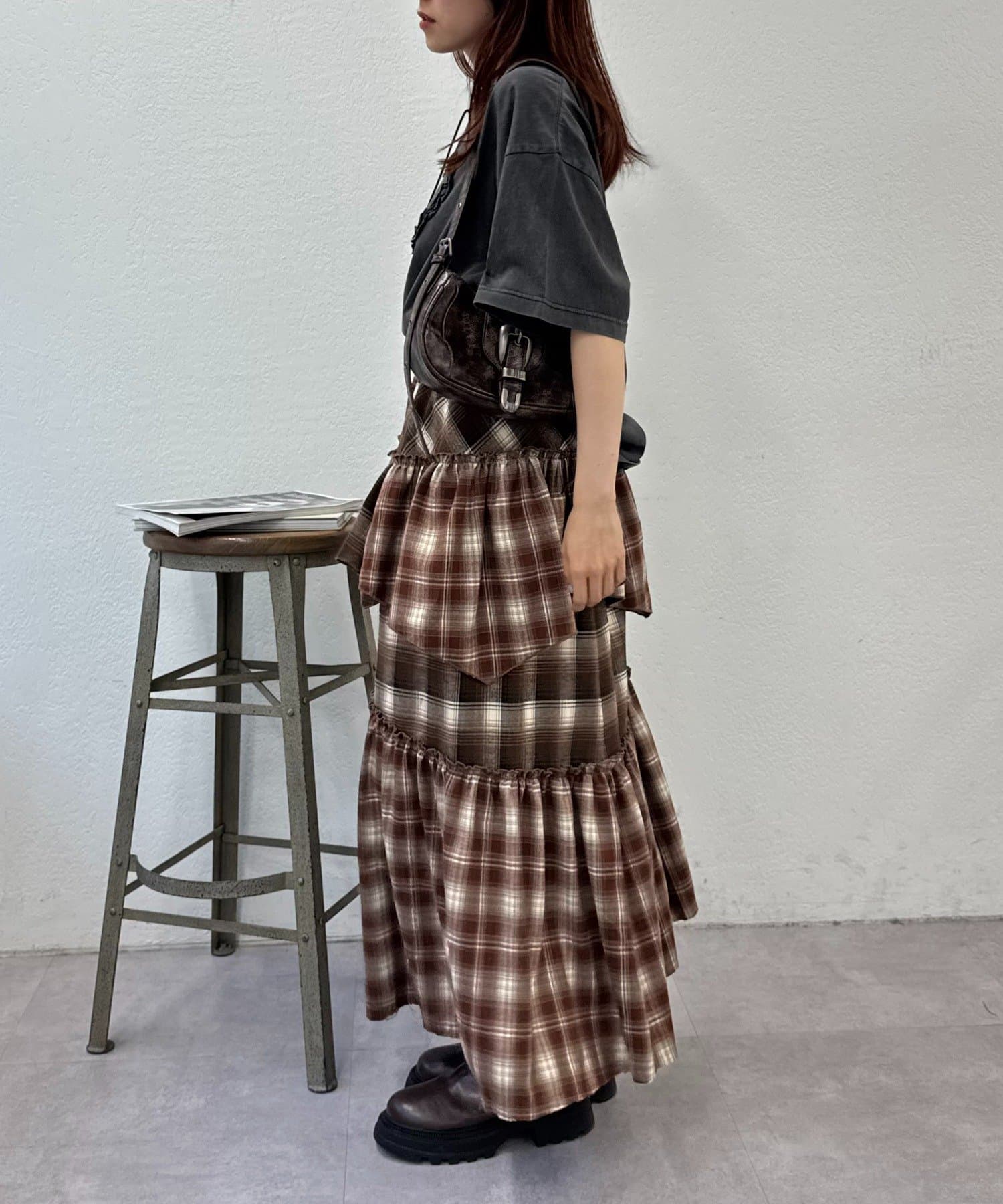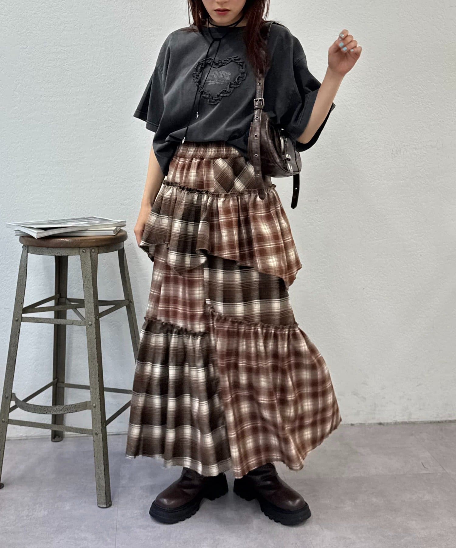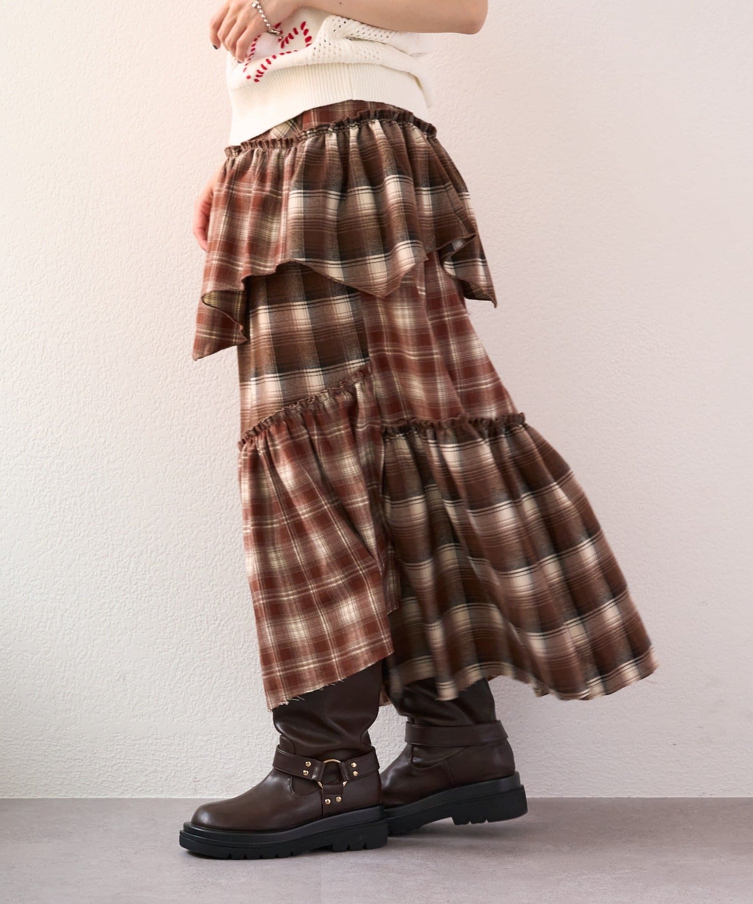 【25AW】リメイクチェックティアードスカート