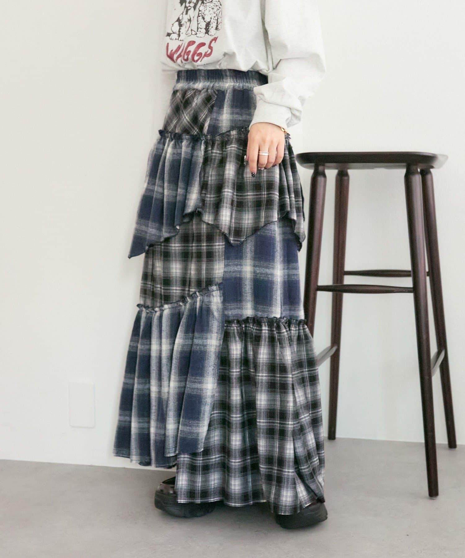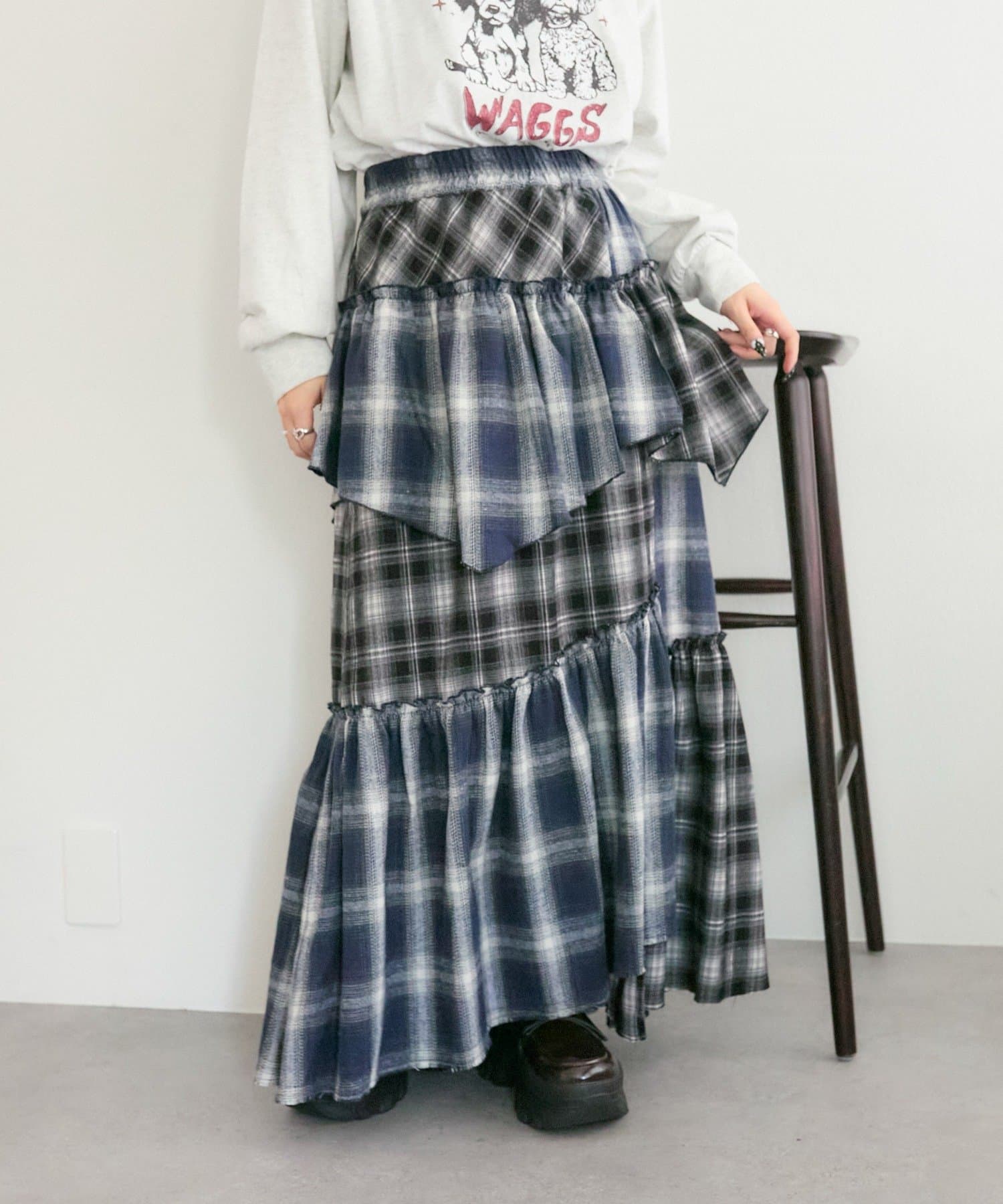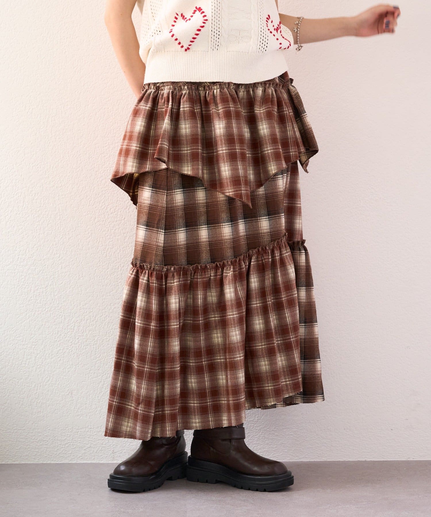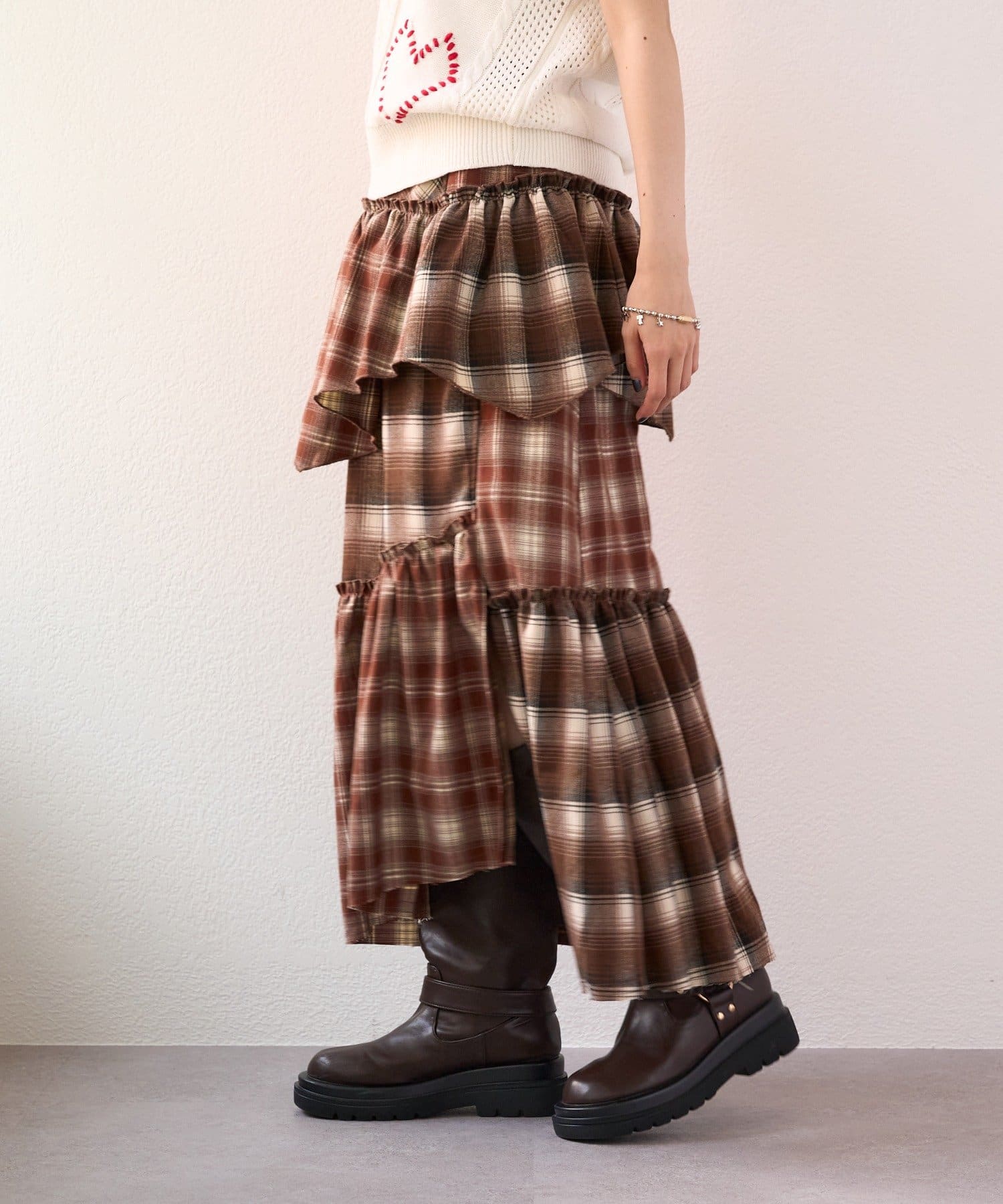 【25AW】リメイクチェックティアードスカート