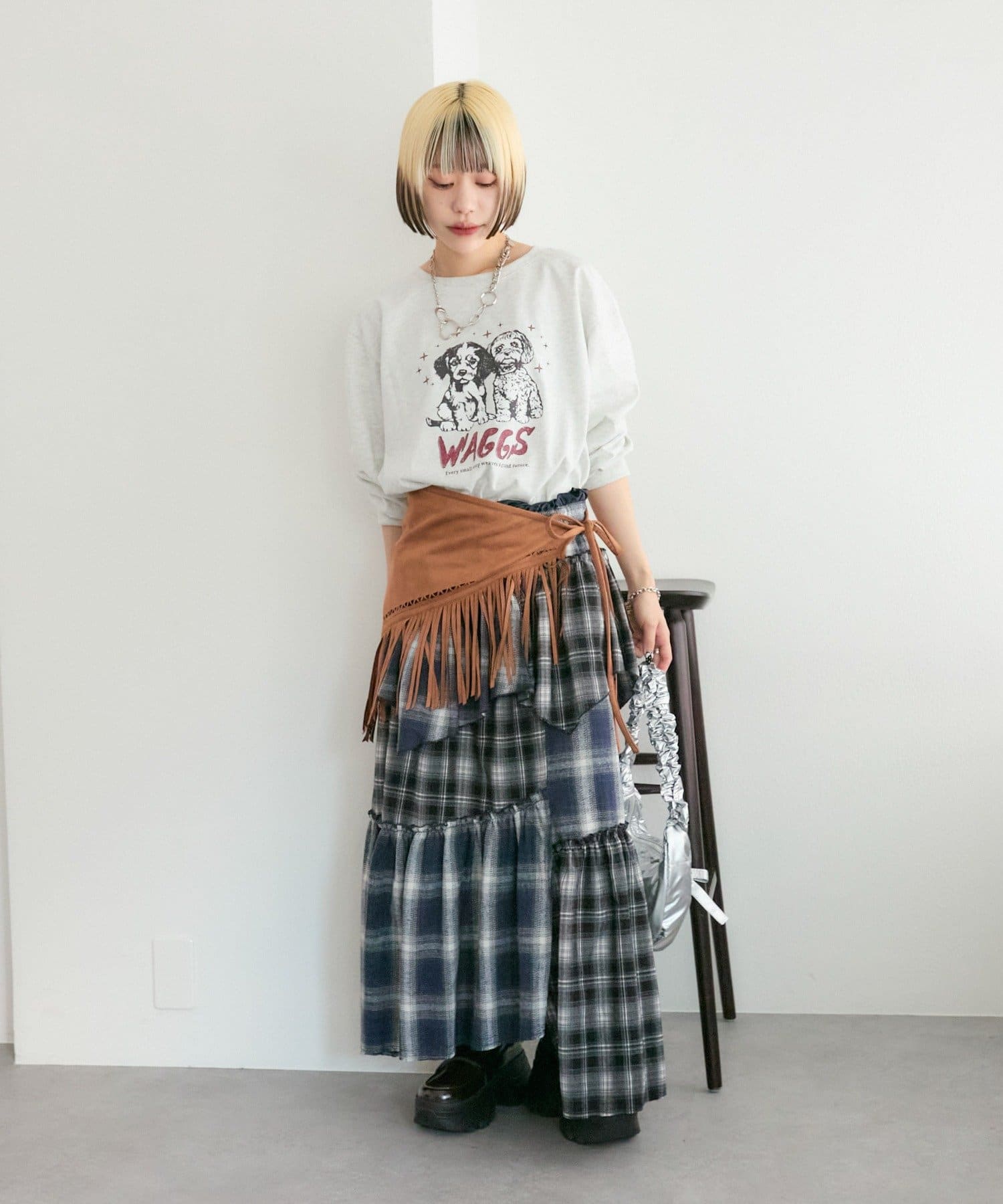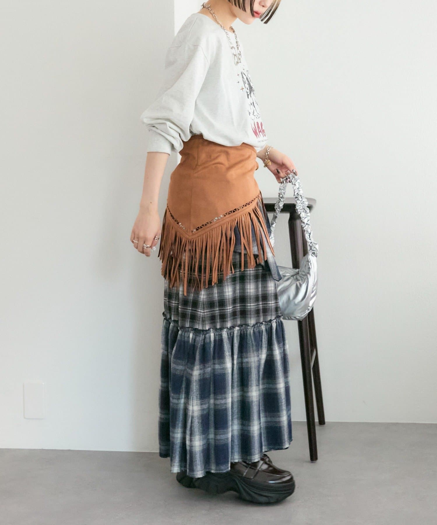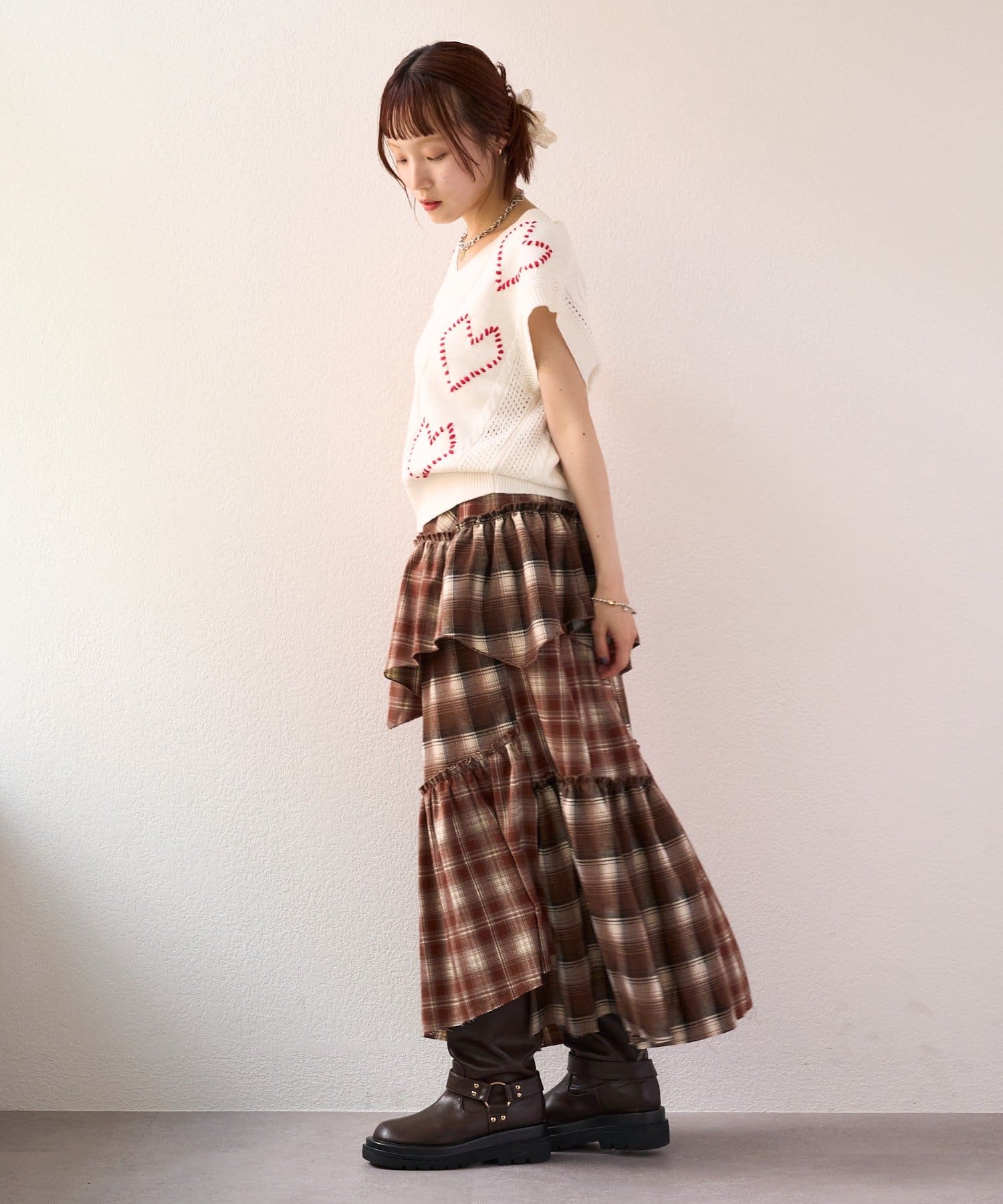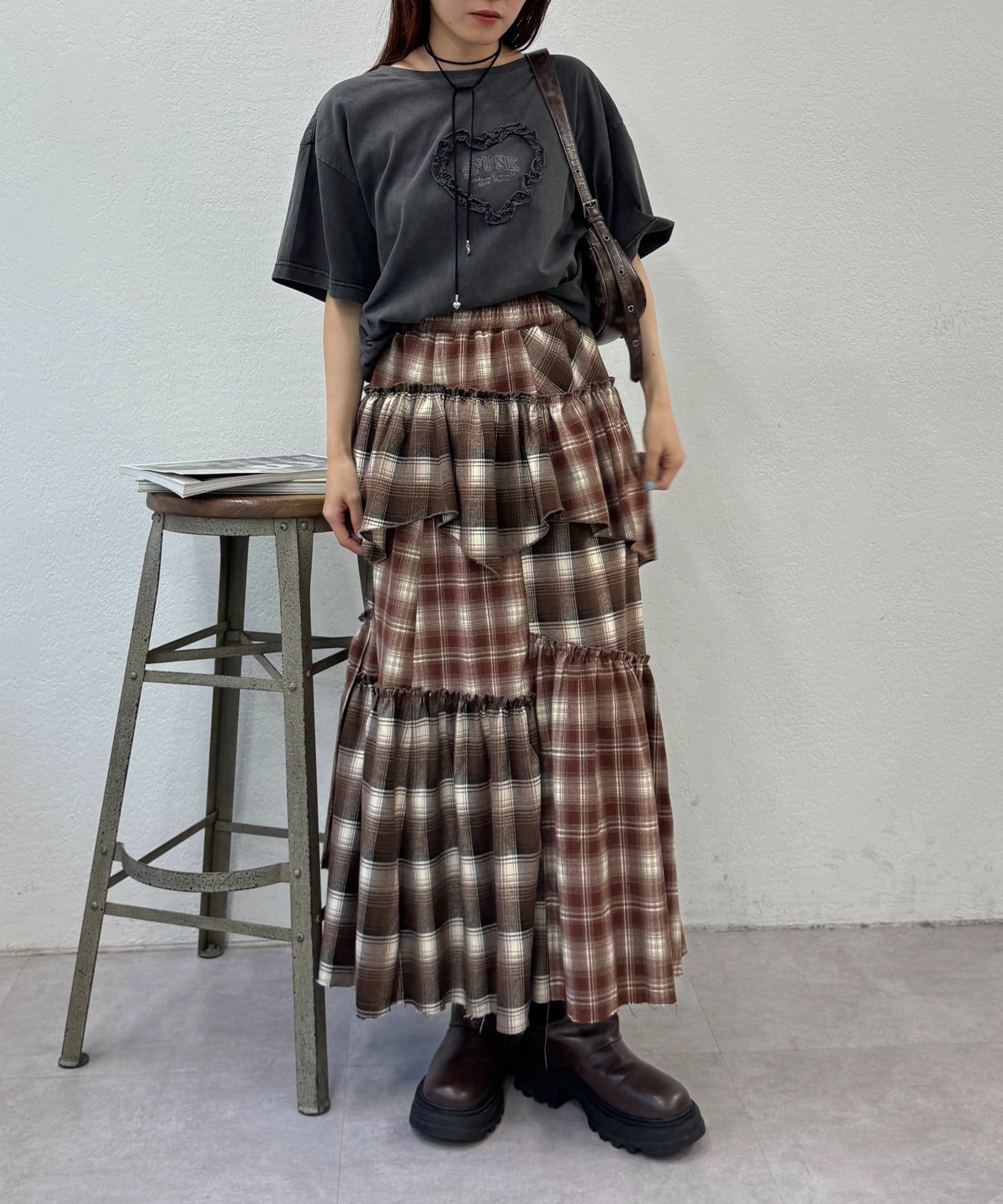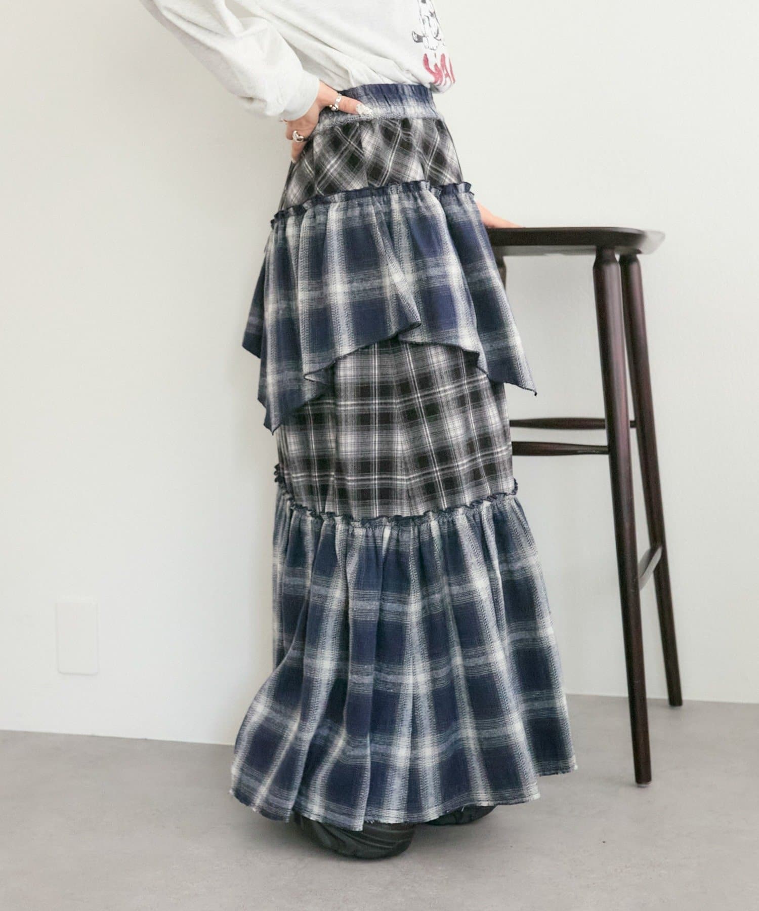 【25AW】リメイクチェックティアードスカート
