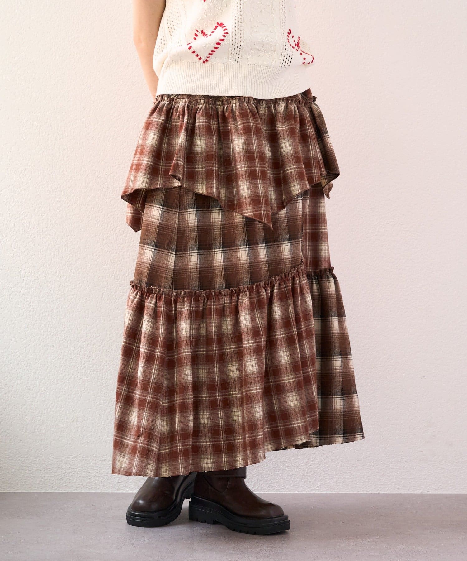 TOP > w closet > レディース > スカート > スカート > 【25AW】リメイクチェックティアードスカート