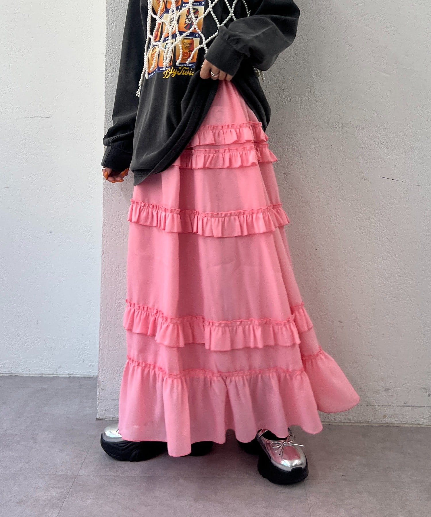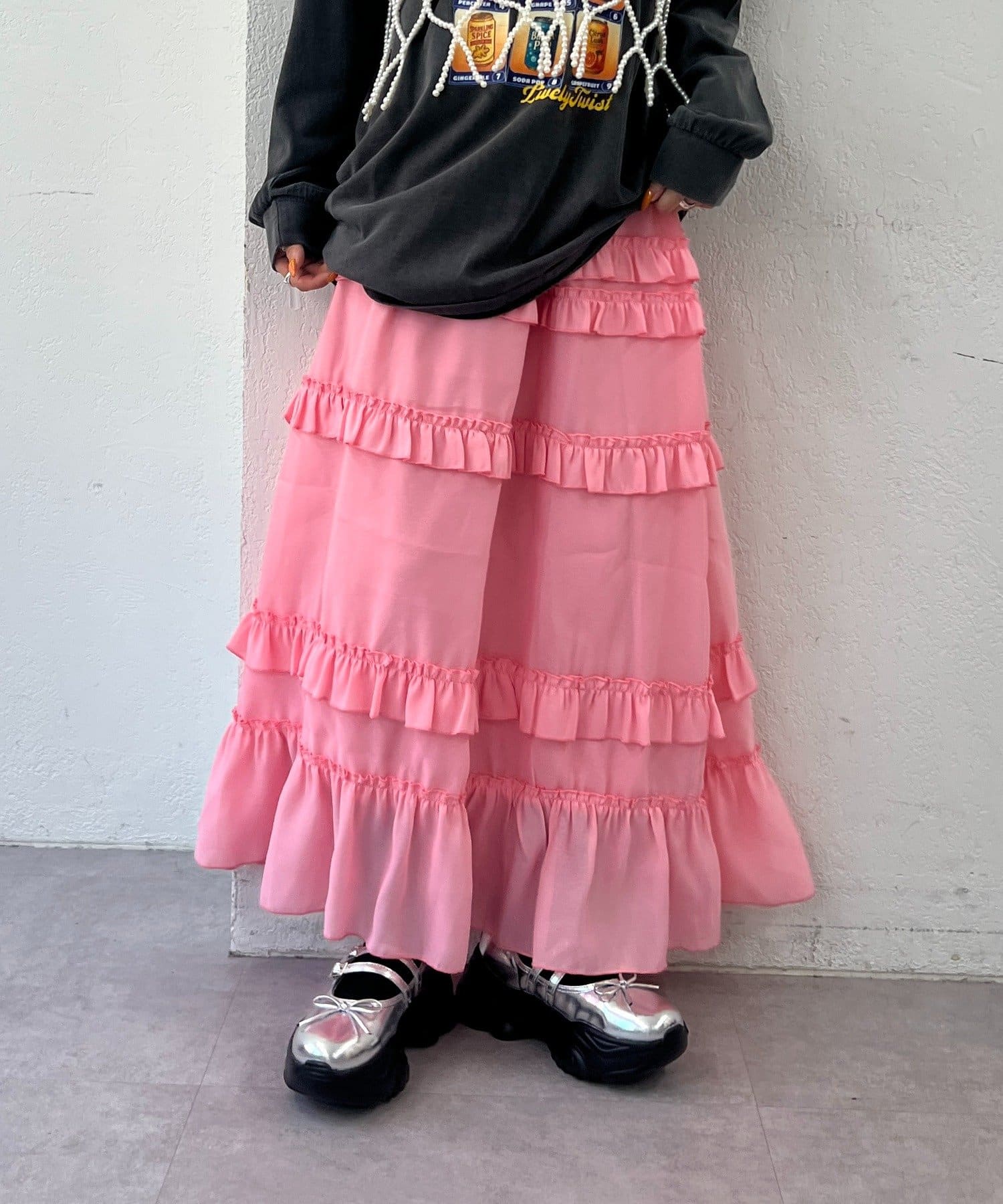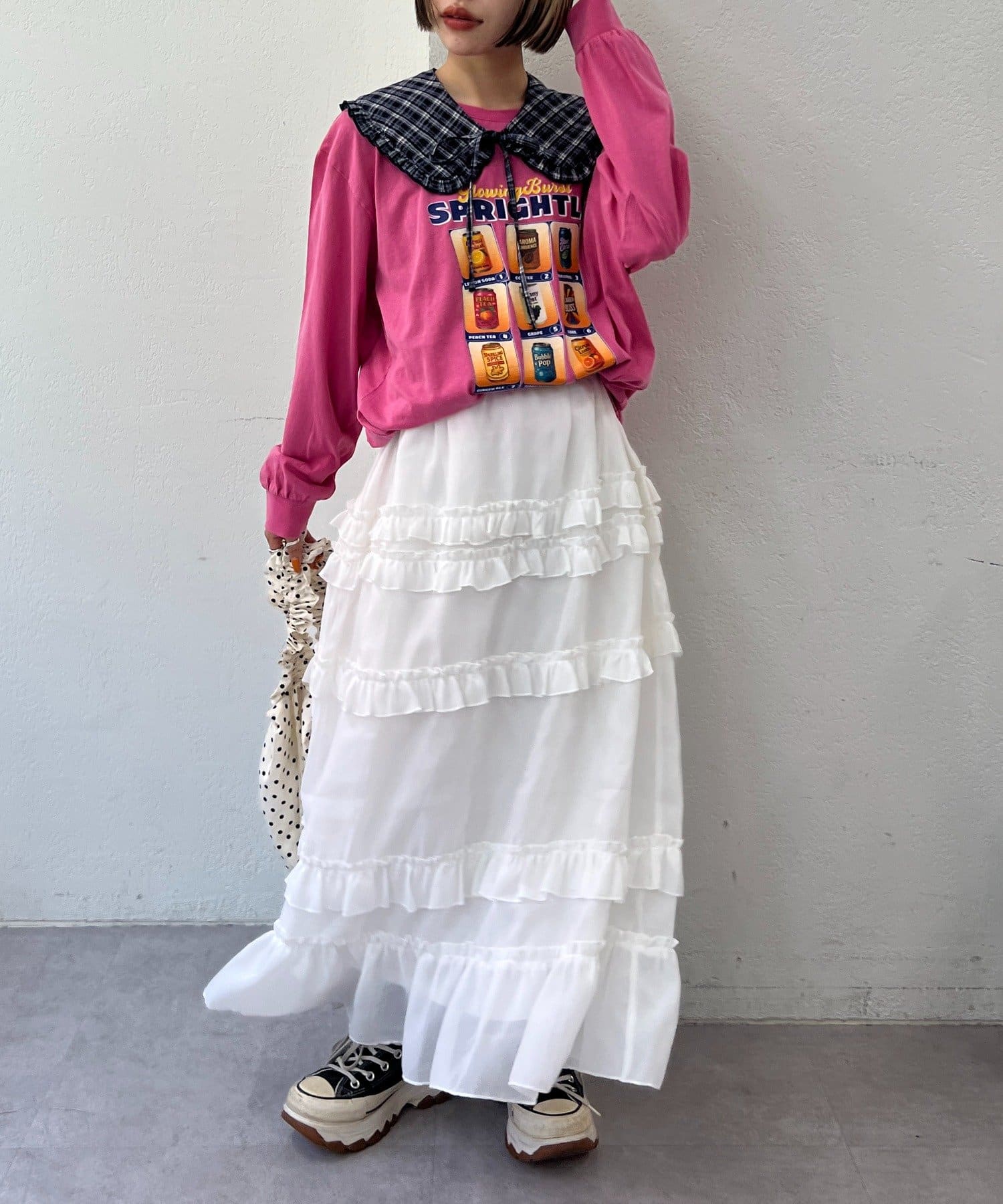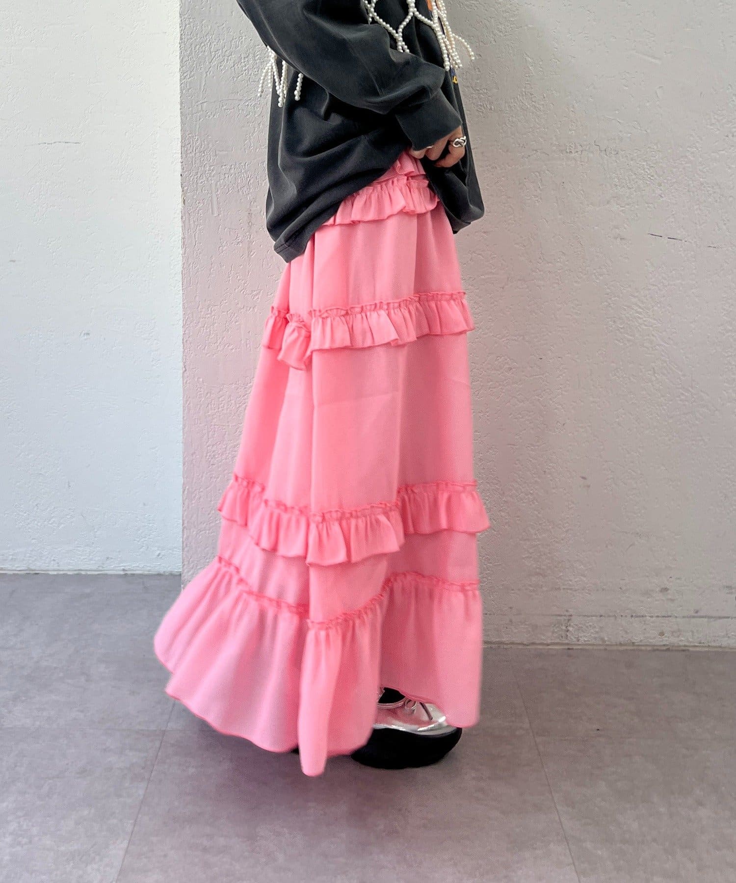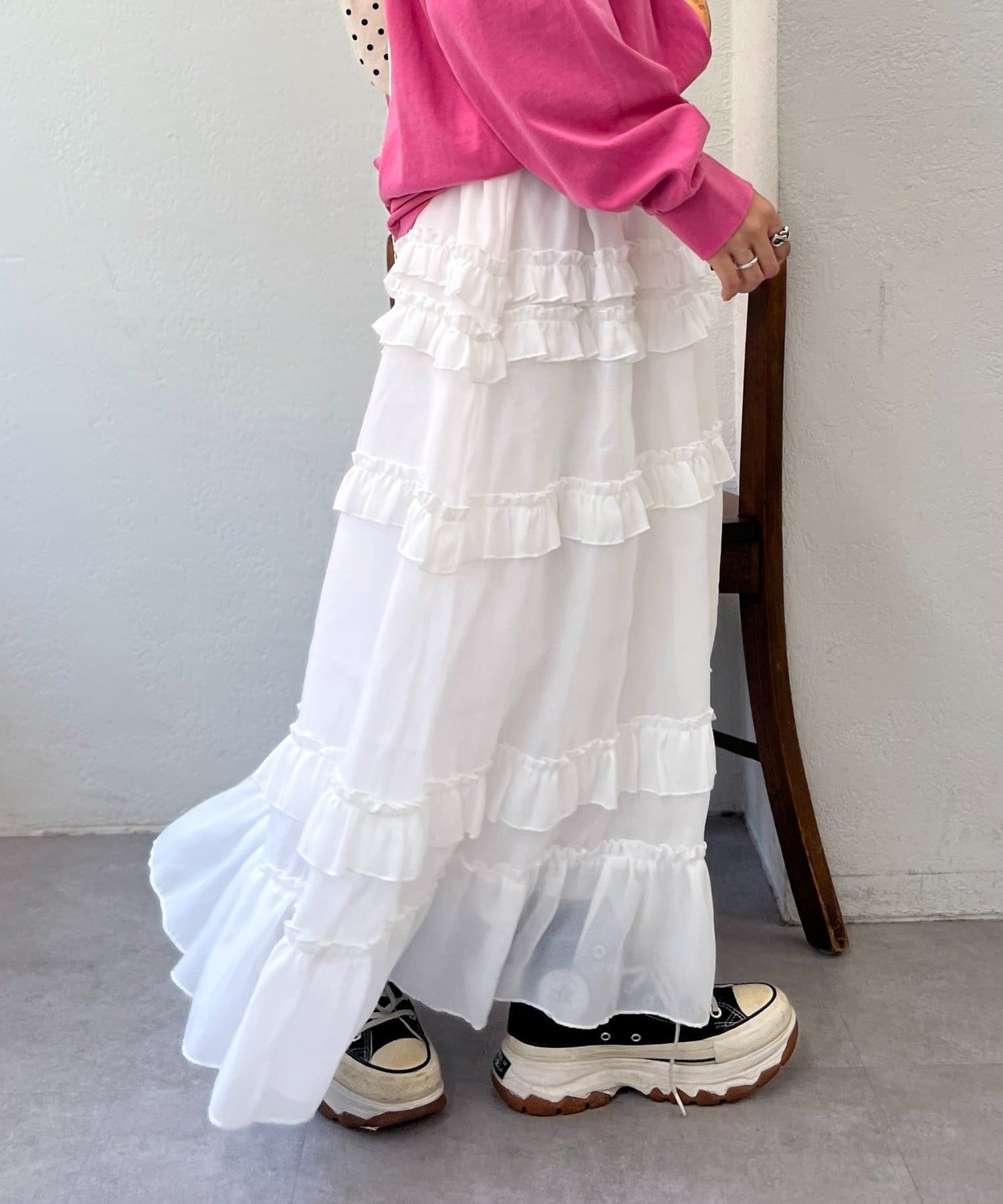 ・カラフルなカラバリとたっぷりのフリルが可愛いティアードスカート