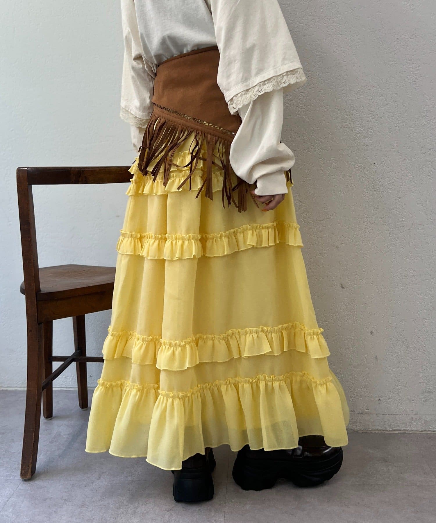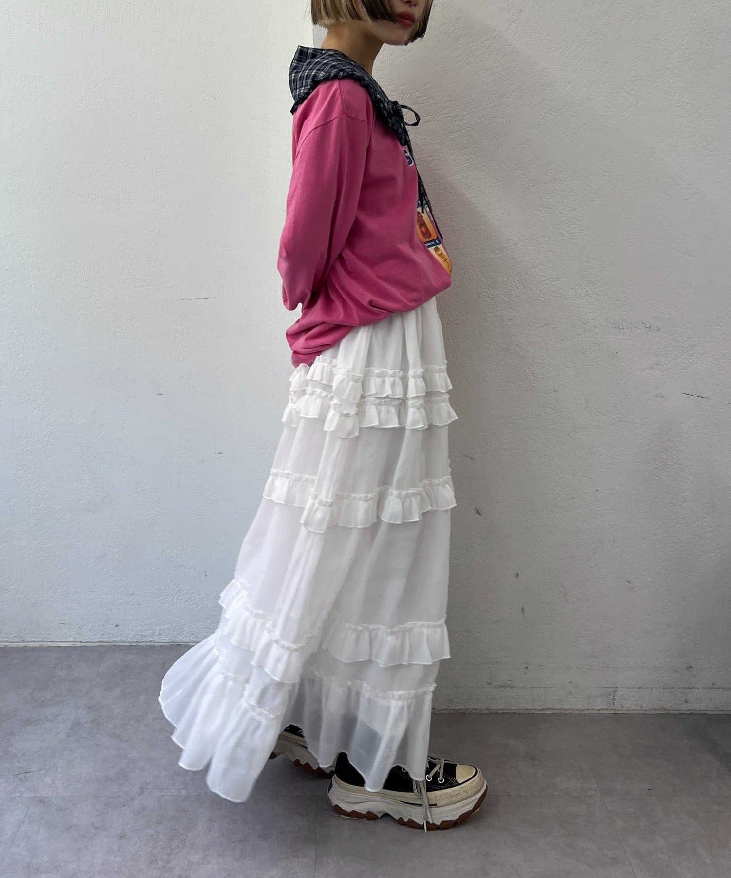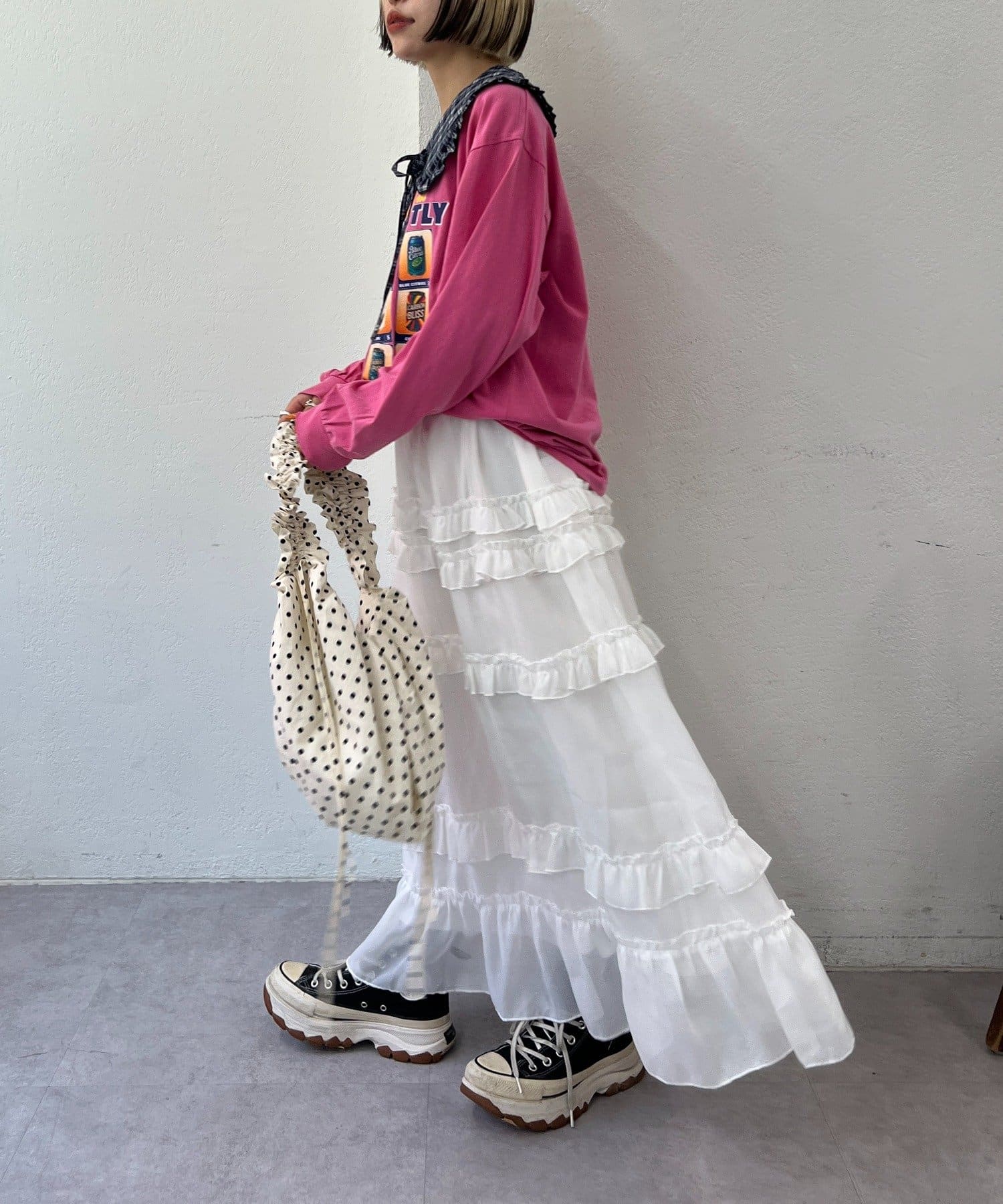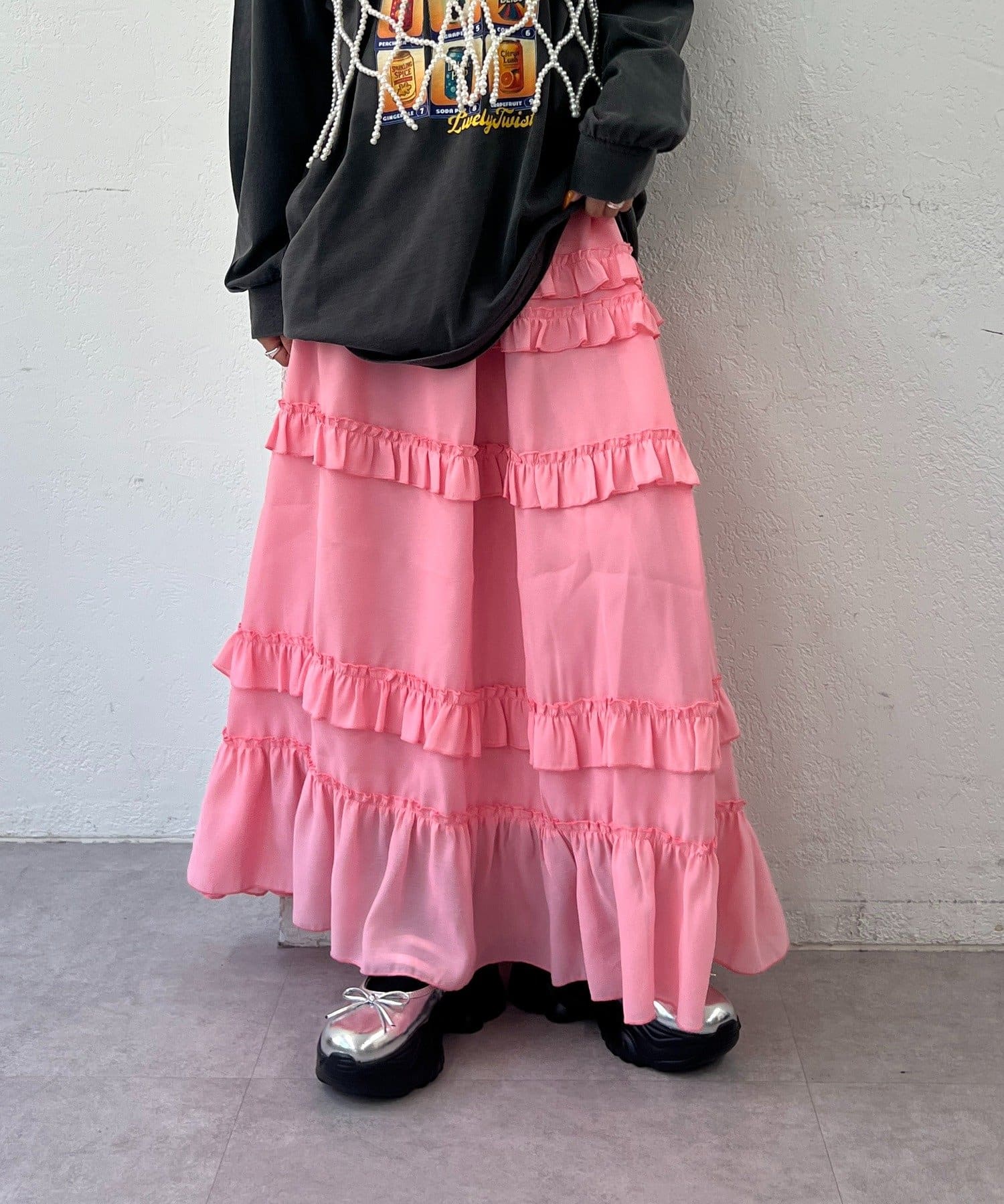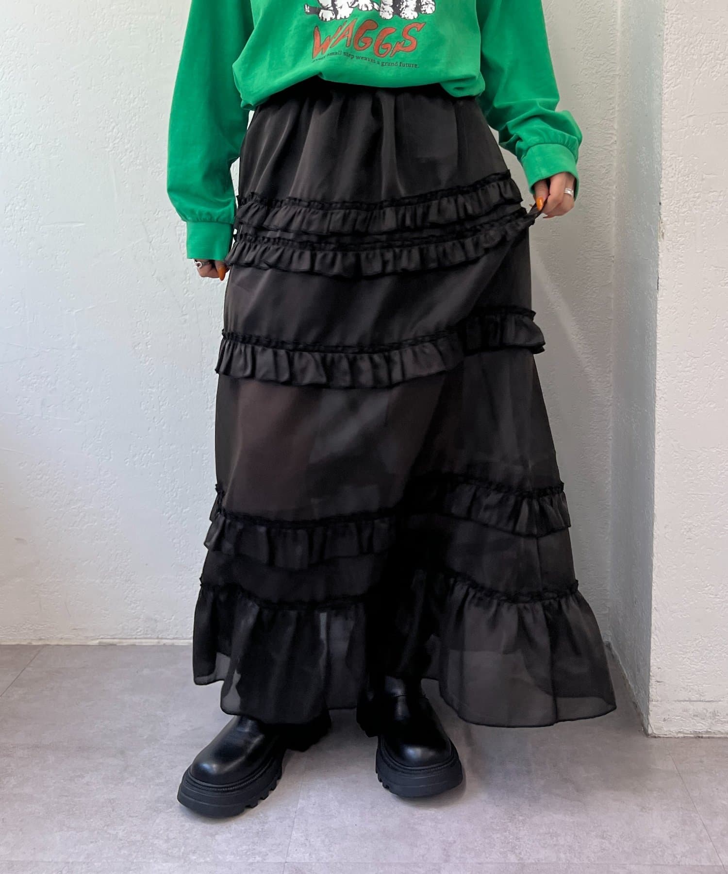 ・カラフルなカラバリとたっぷりのフリルが可愛いティアードスカート