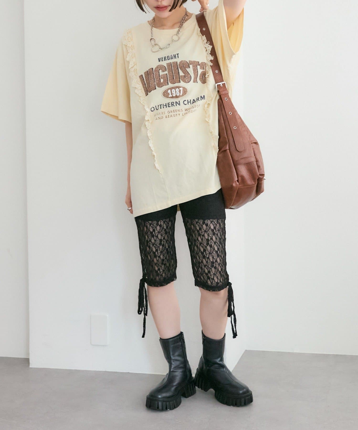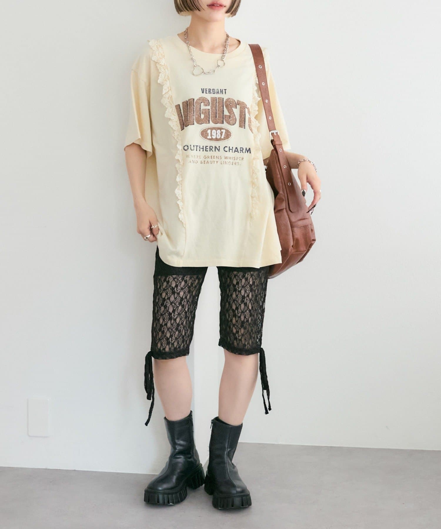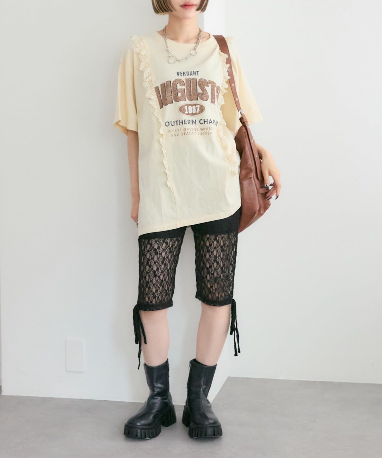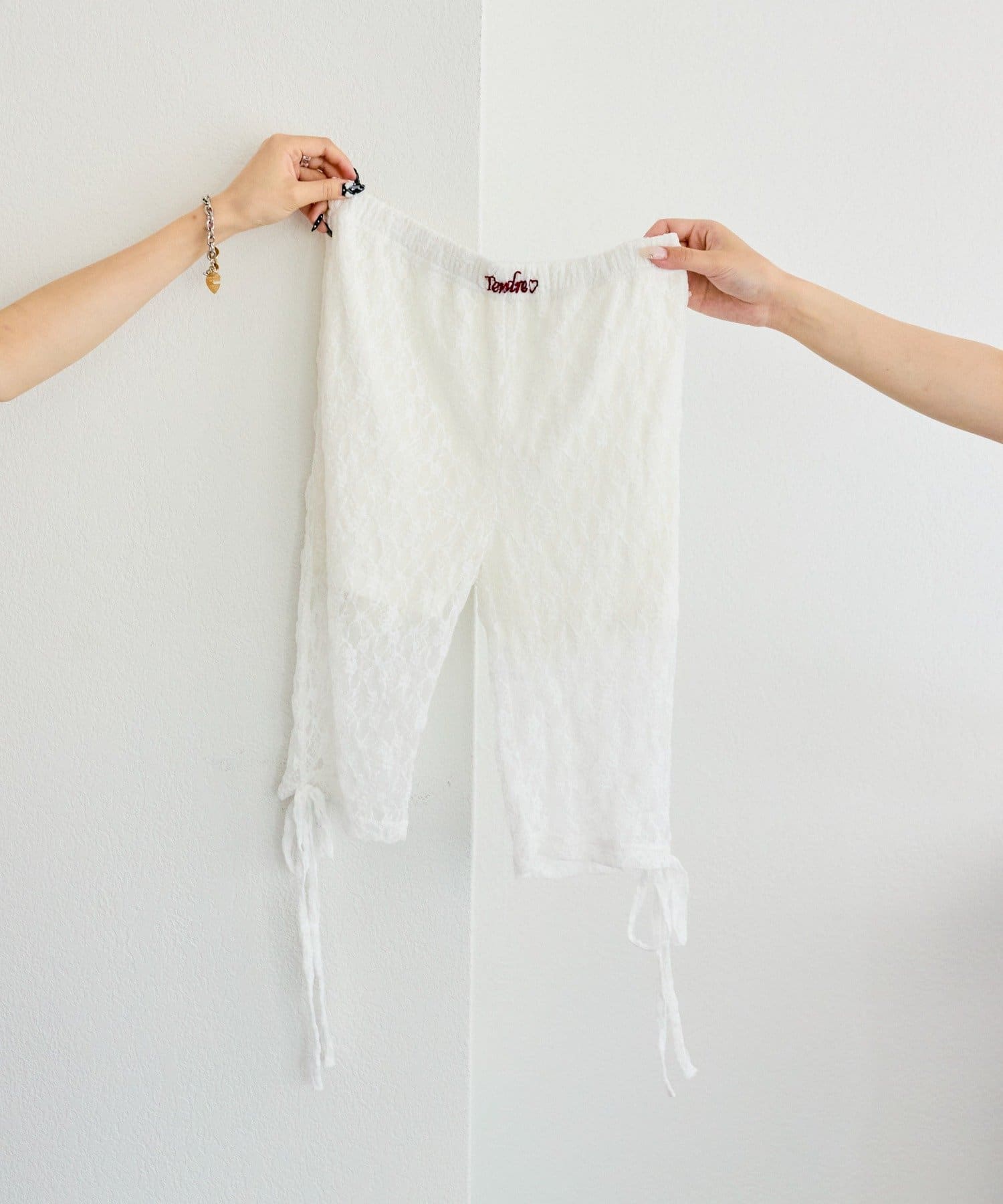 ・ウエストのロゴ刺繍、レースとリボンがかわいいハーフパンツ♪