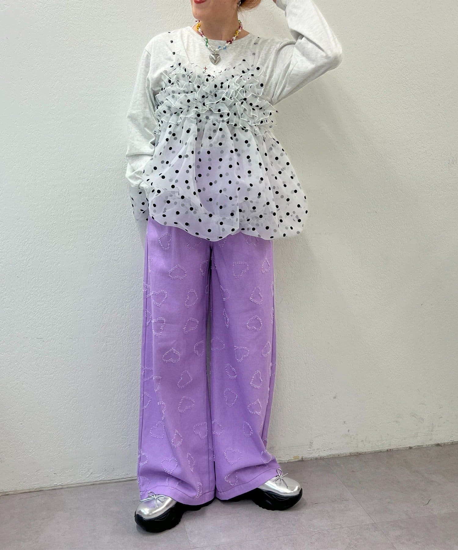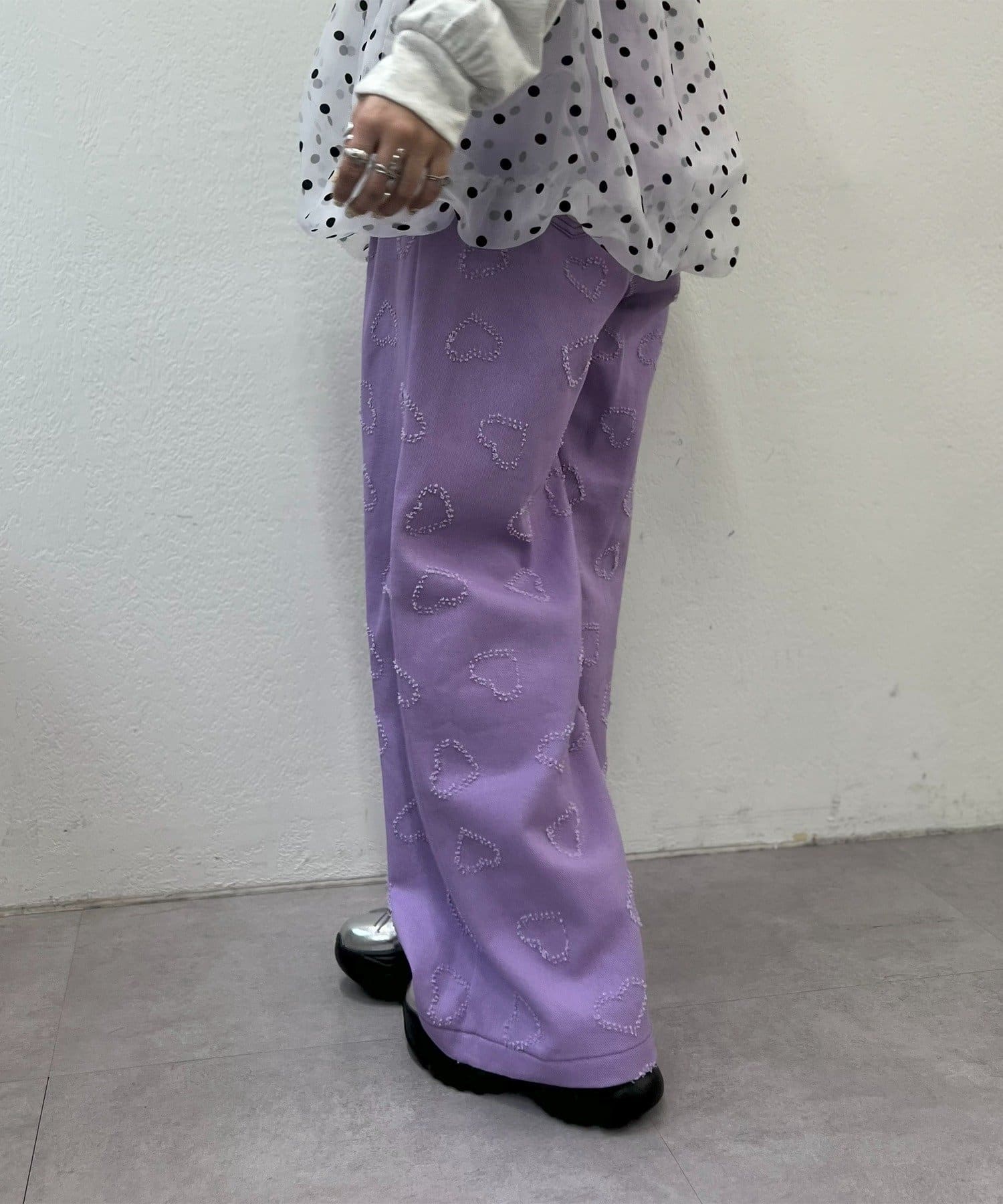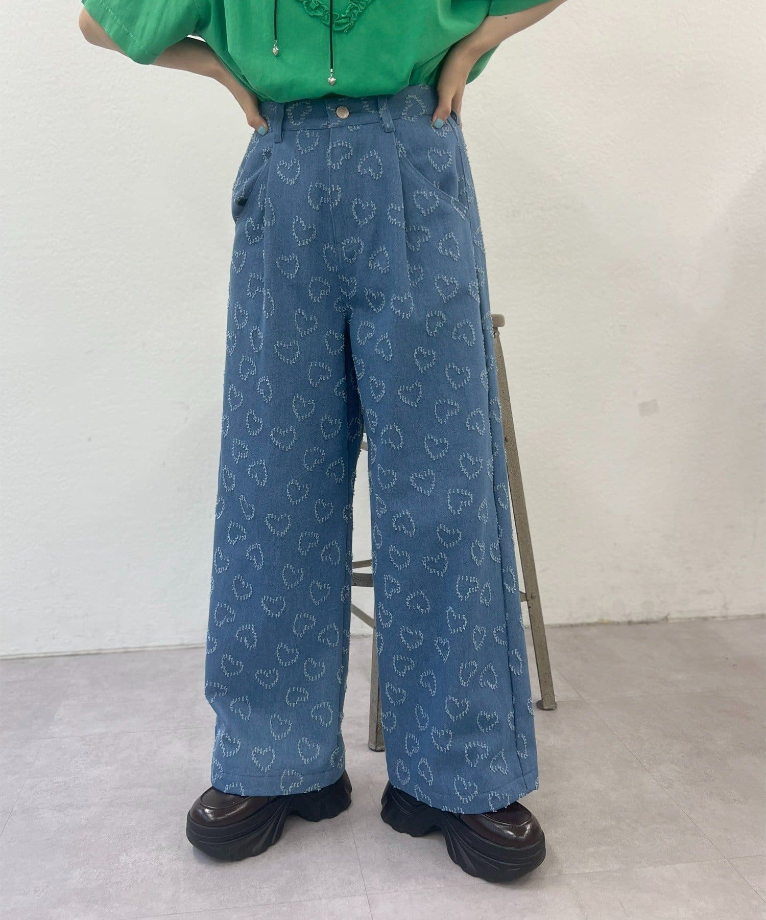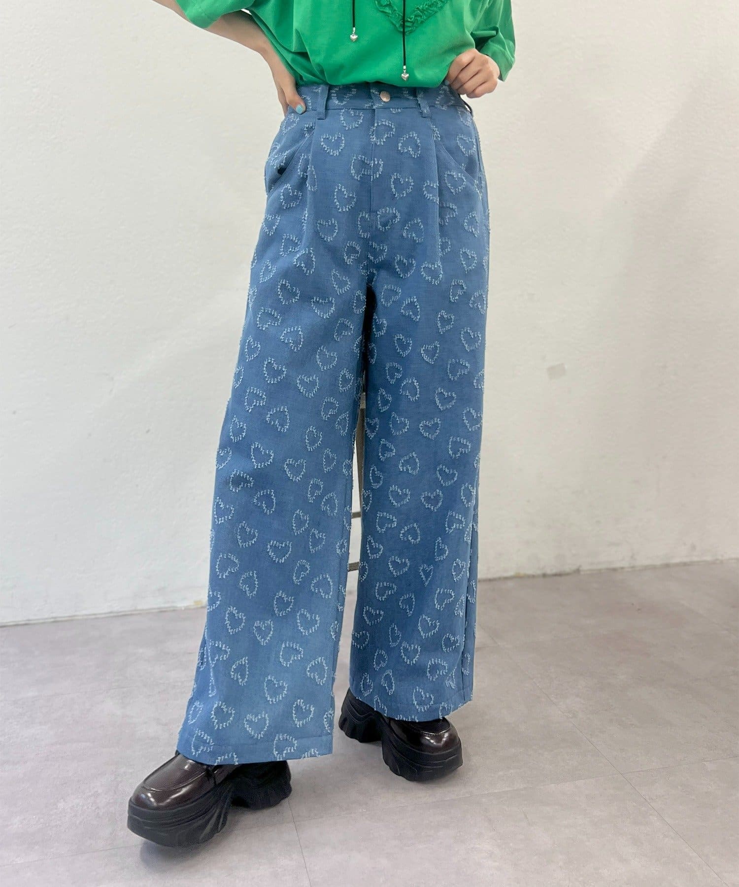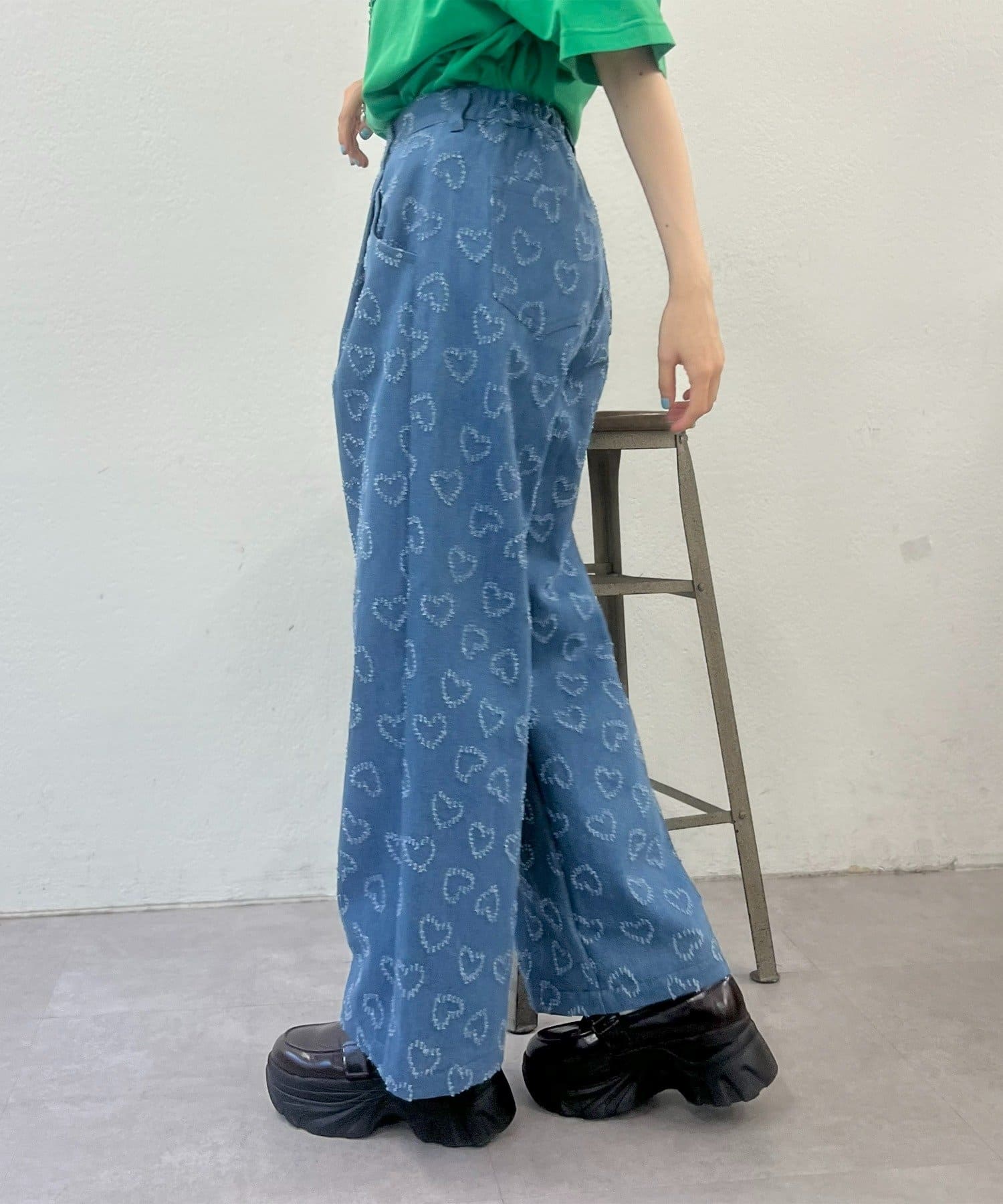 w closet(ダブルクローゼット) 【25AW】【2サイズ展開】ハートジャガードデニムパンツ
