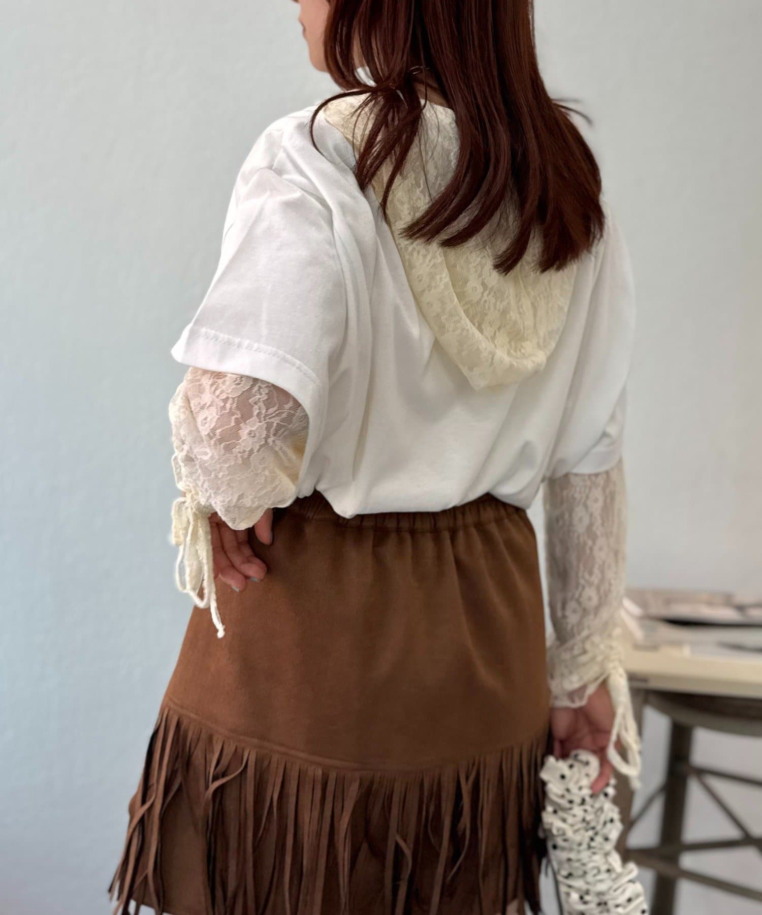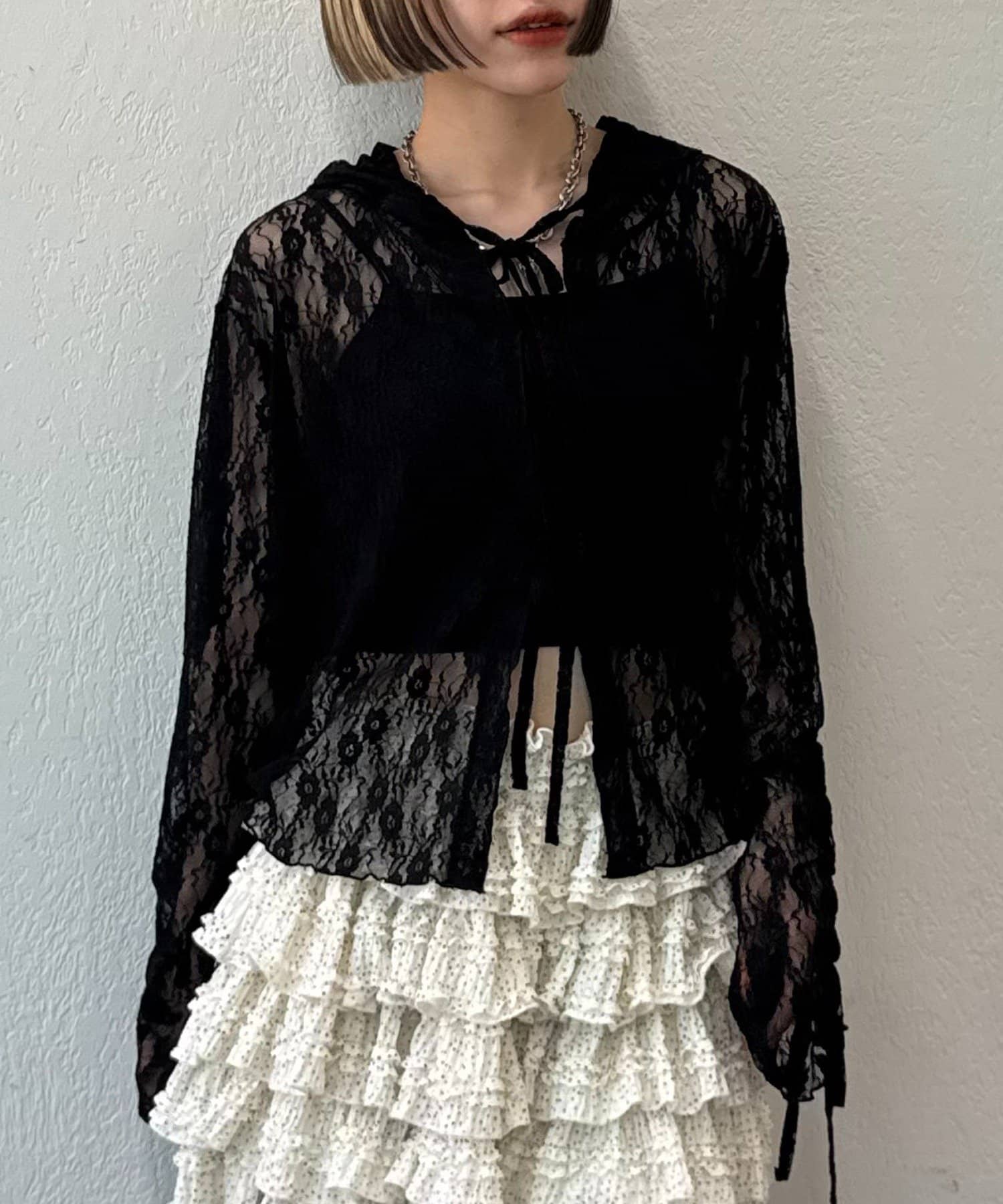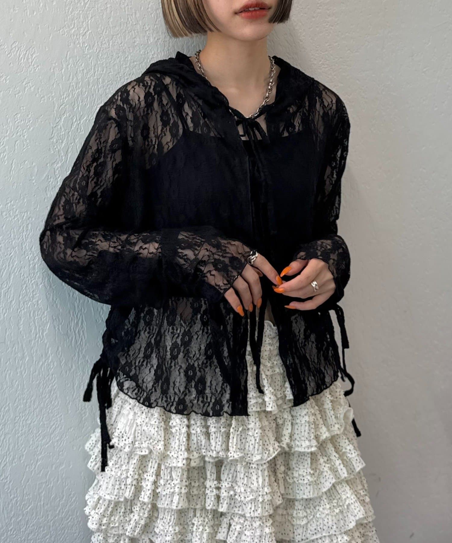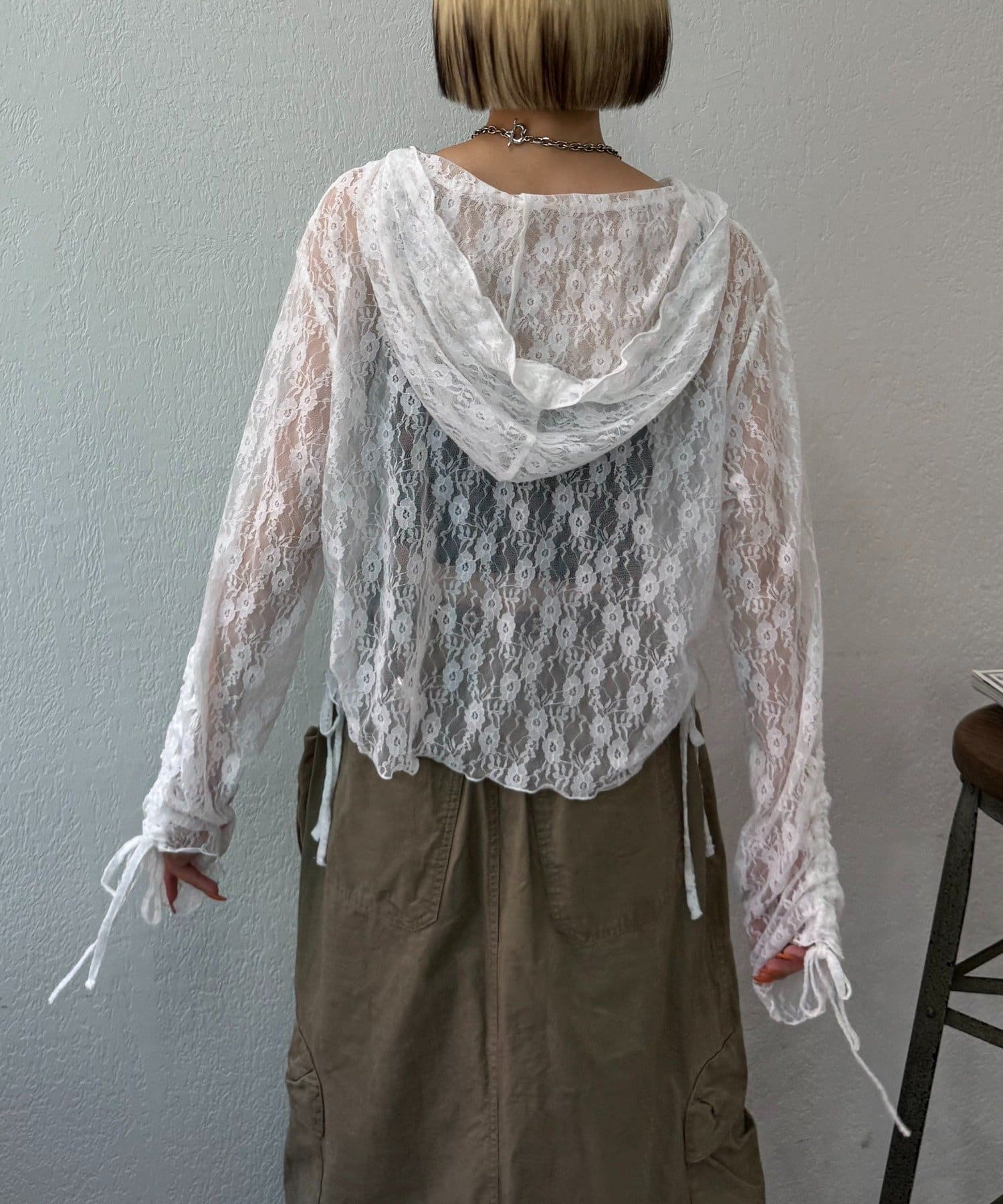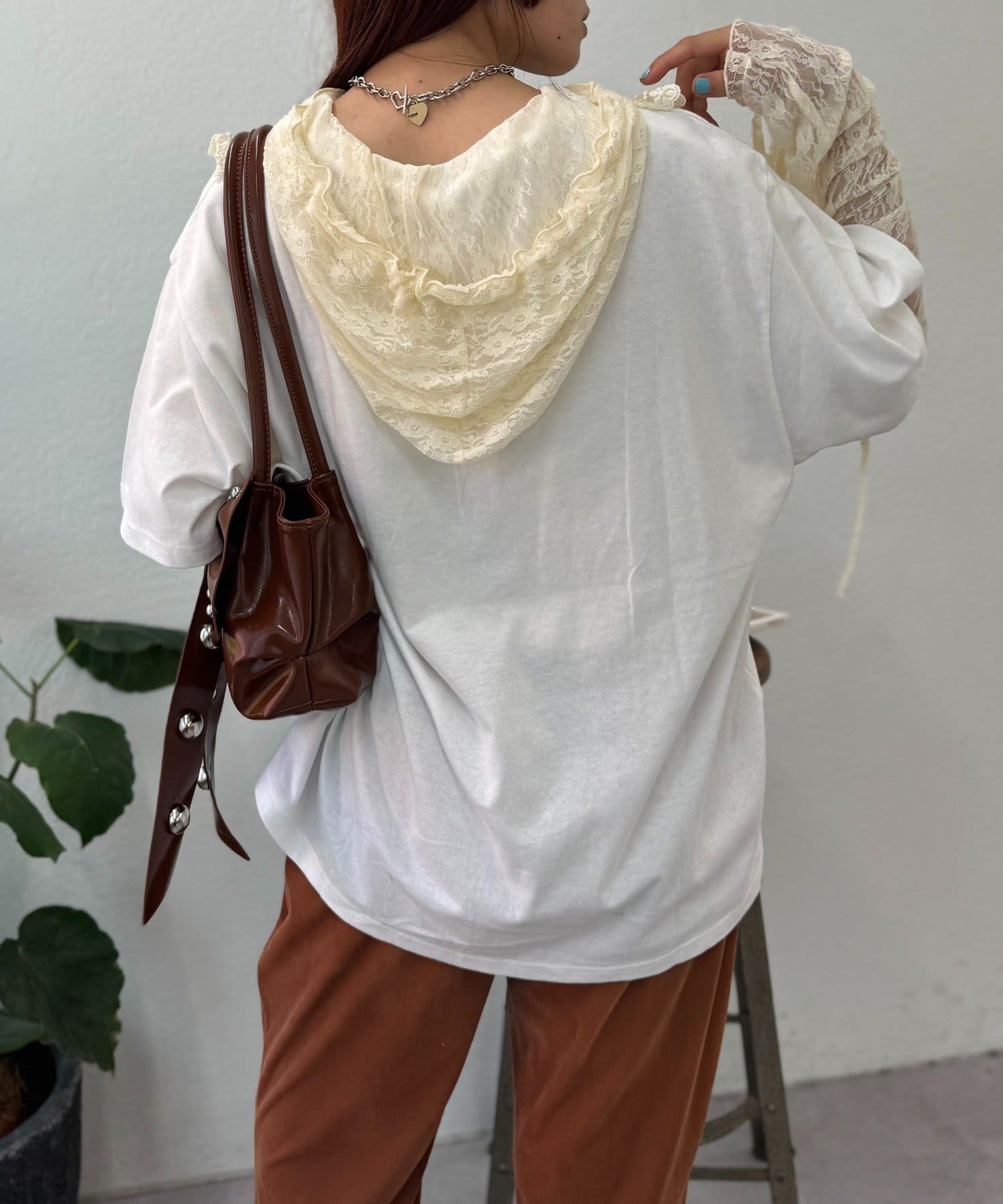 レース×フードのミックステイストが今っぽいシャツが登場!