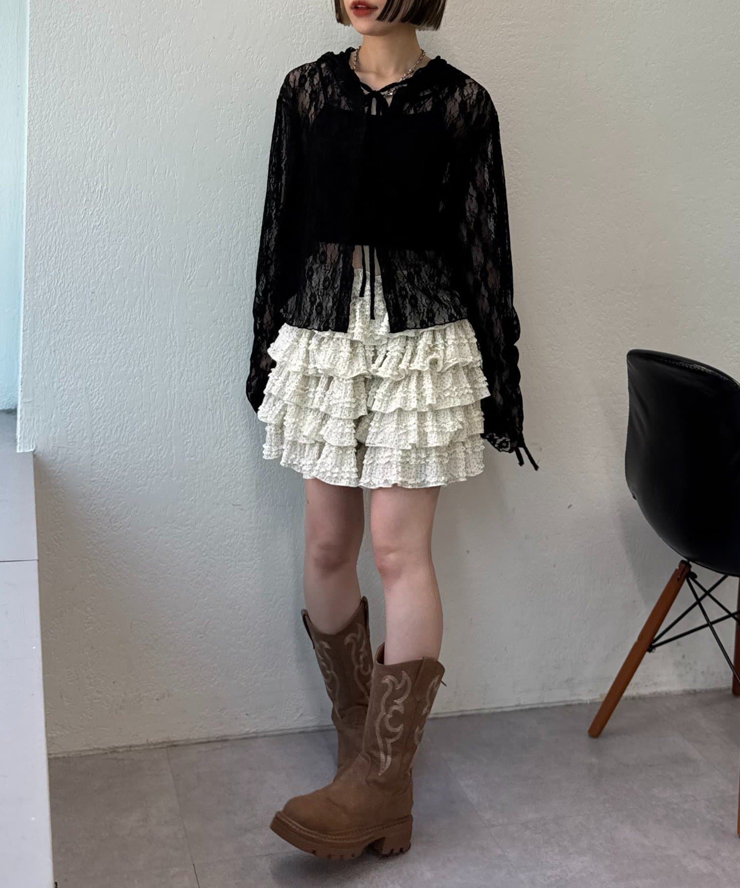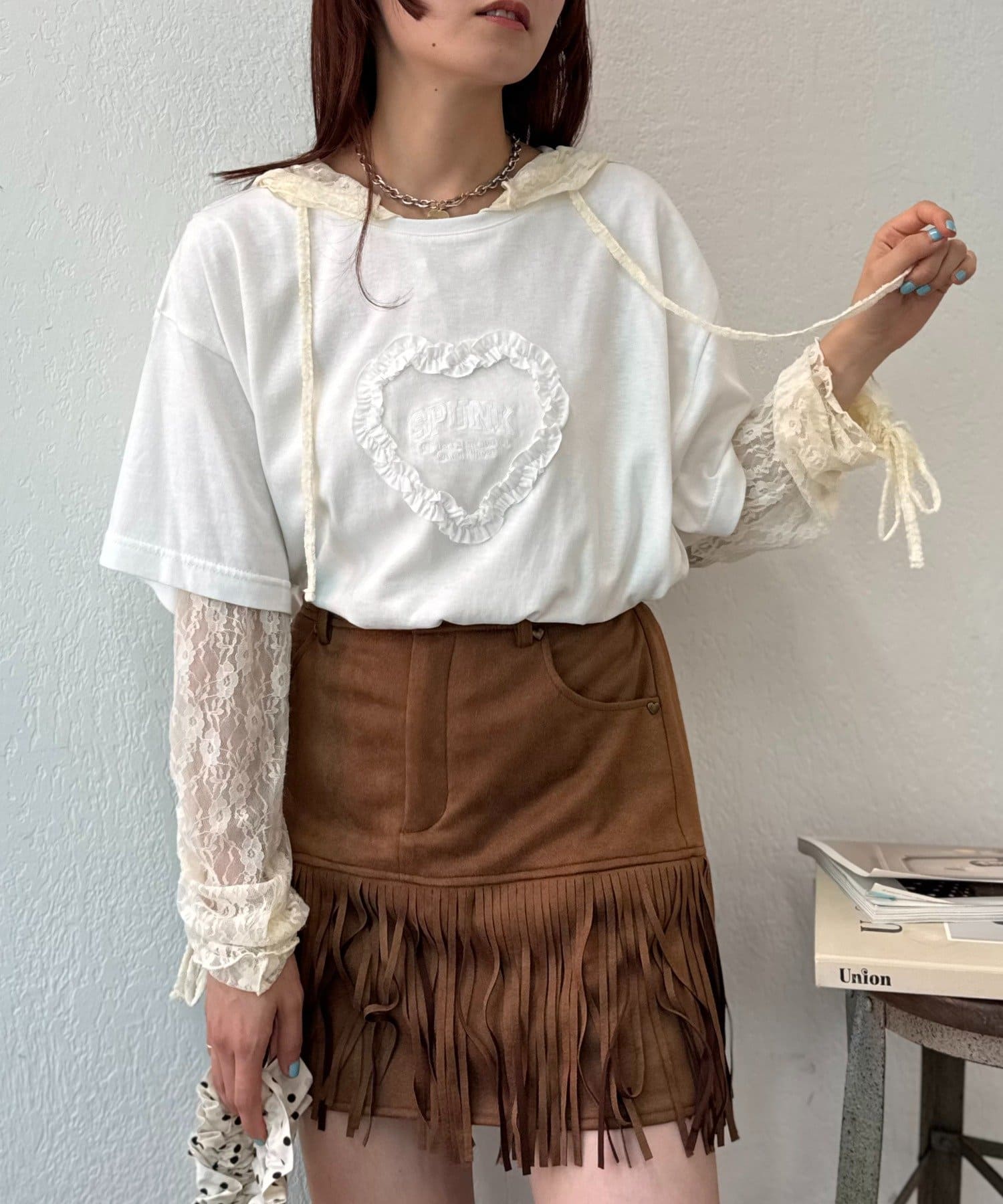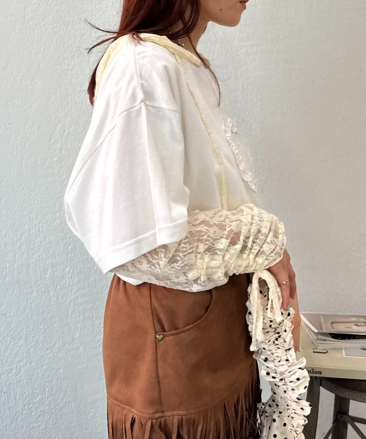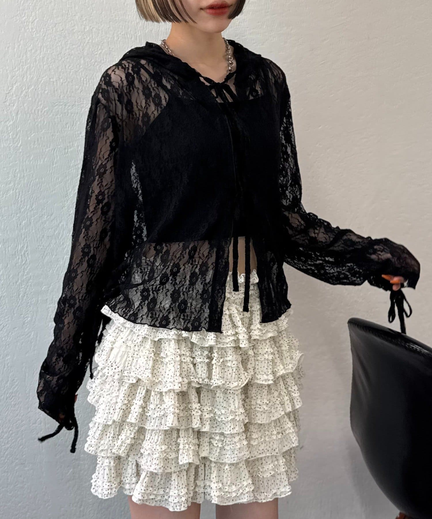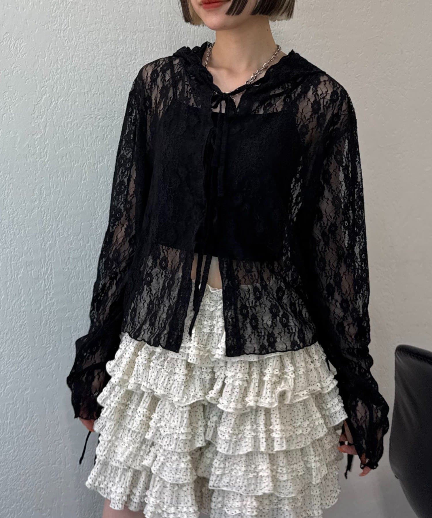 レース×フードのミックステイストが今っぽいシャツが登場!