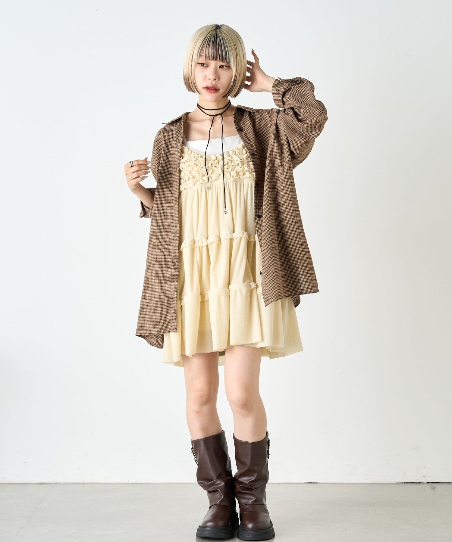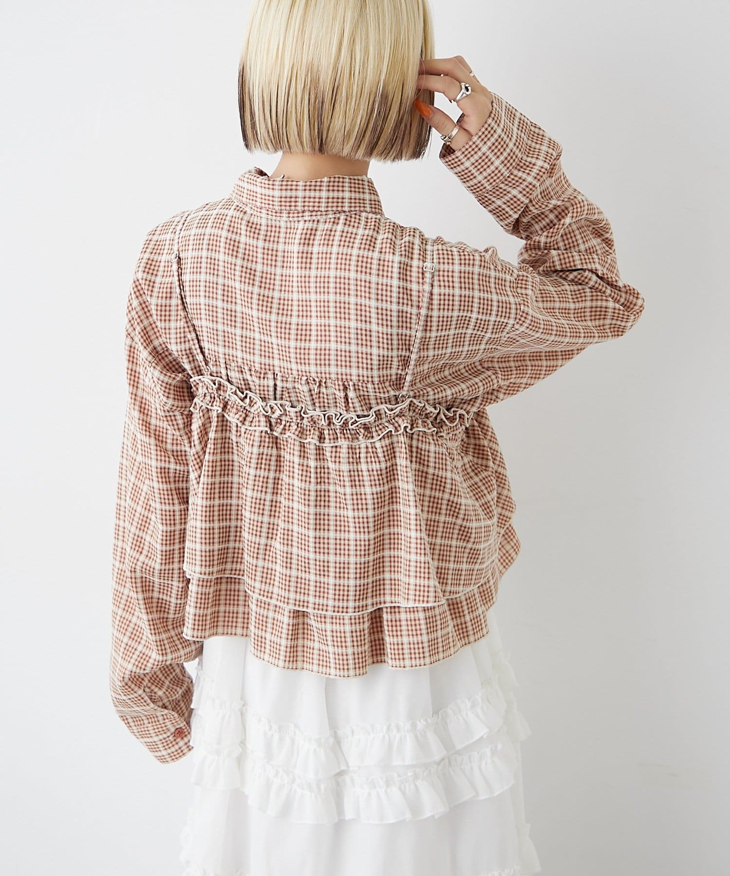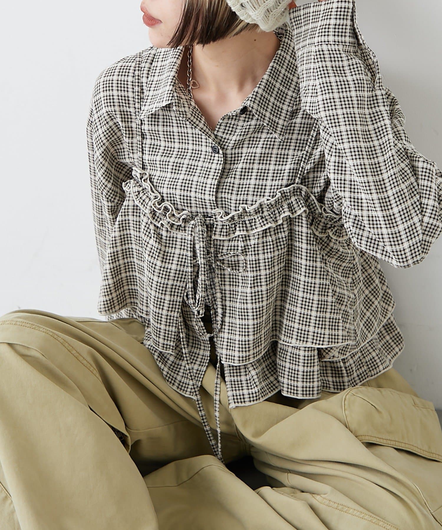 【2SETアイテム】ビスチェ付きチェックシャツ