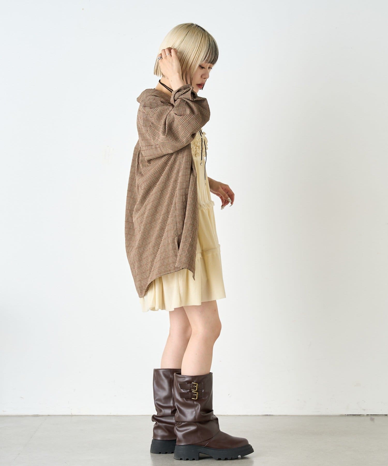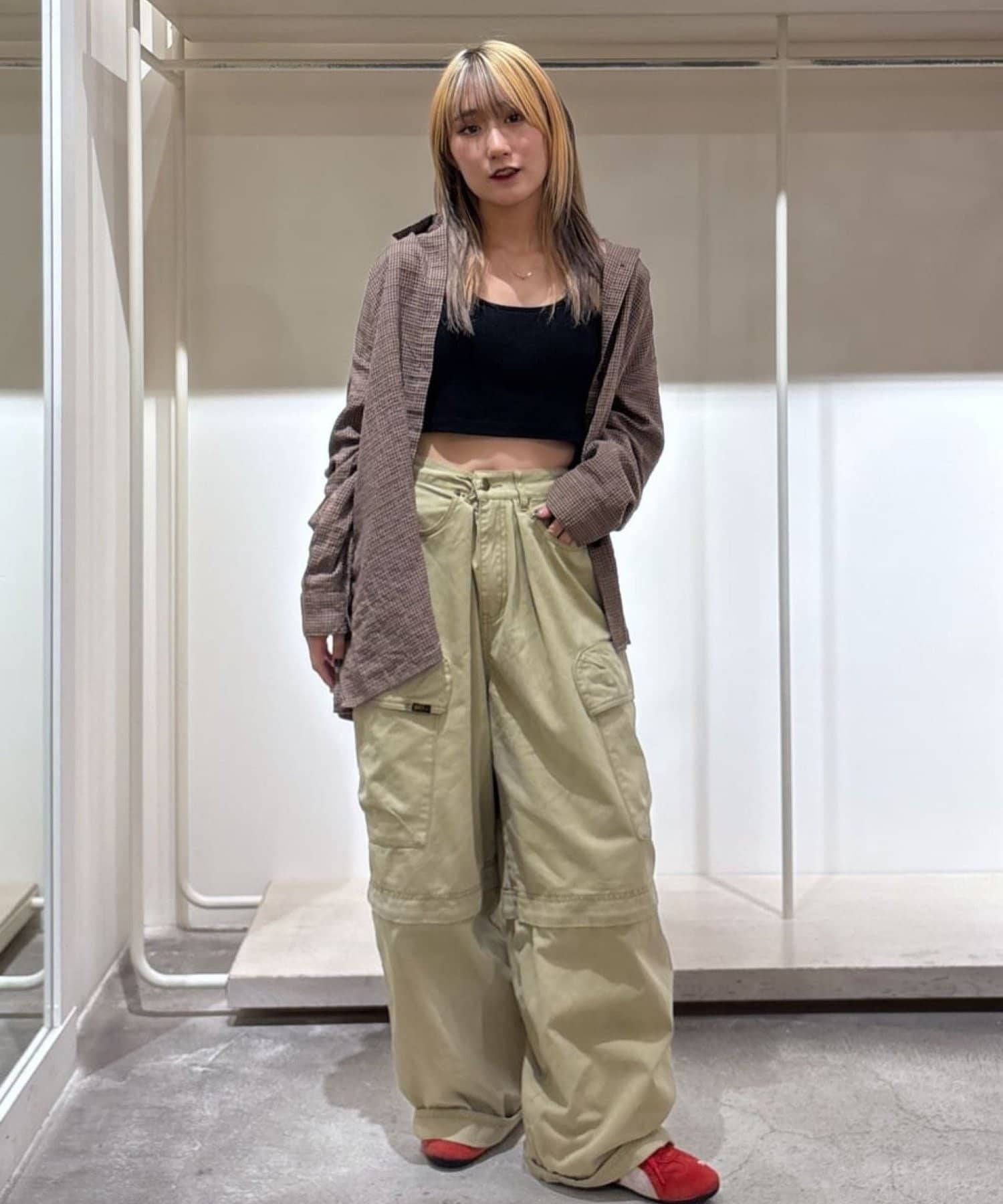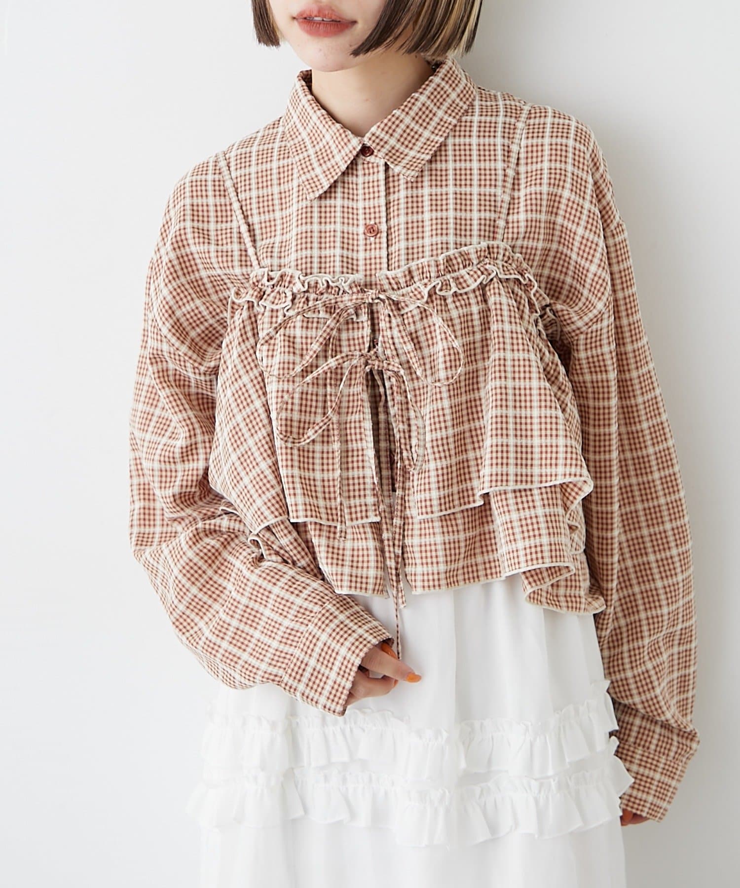 【2SETアイテム】ビスチェ付きチェックシャツ