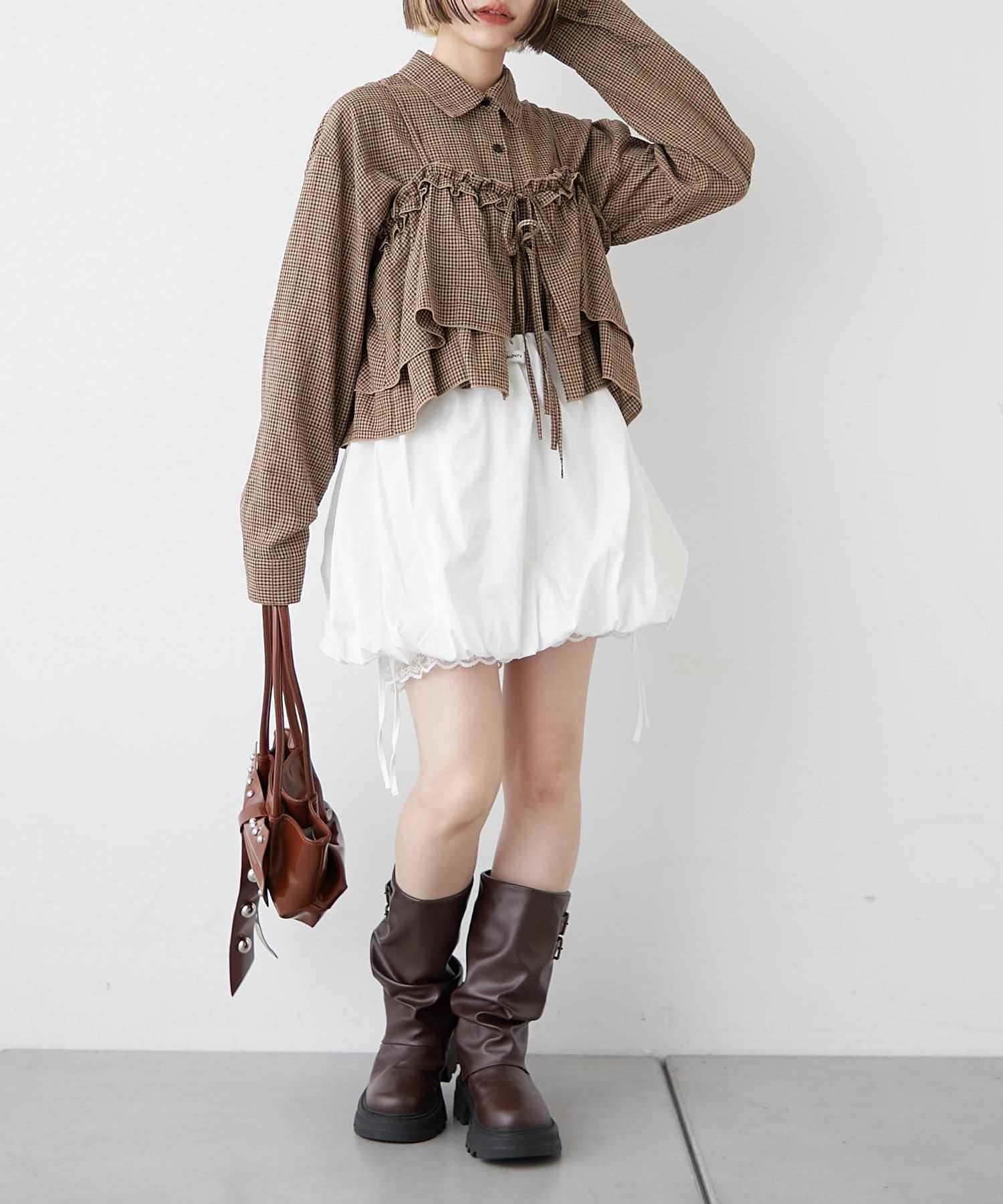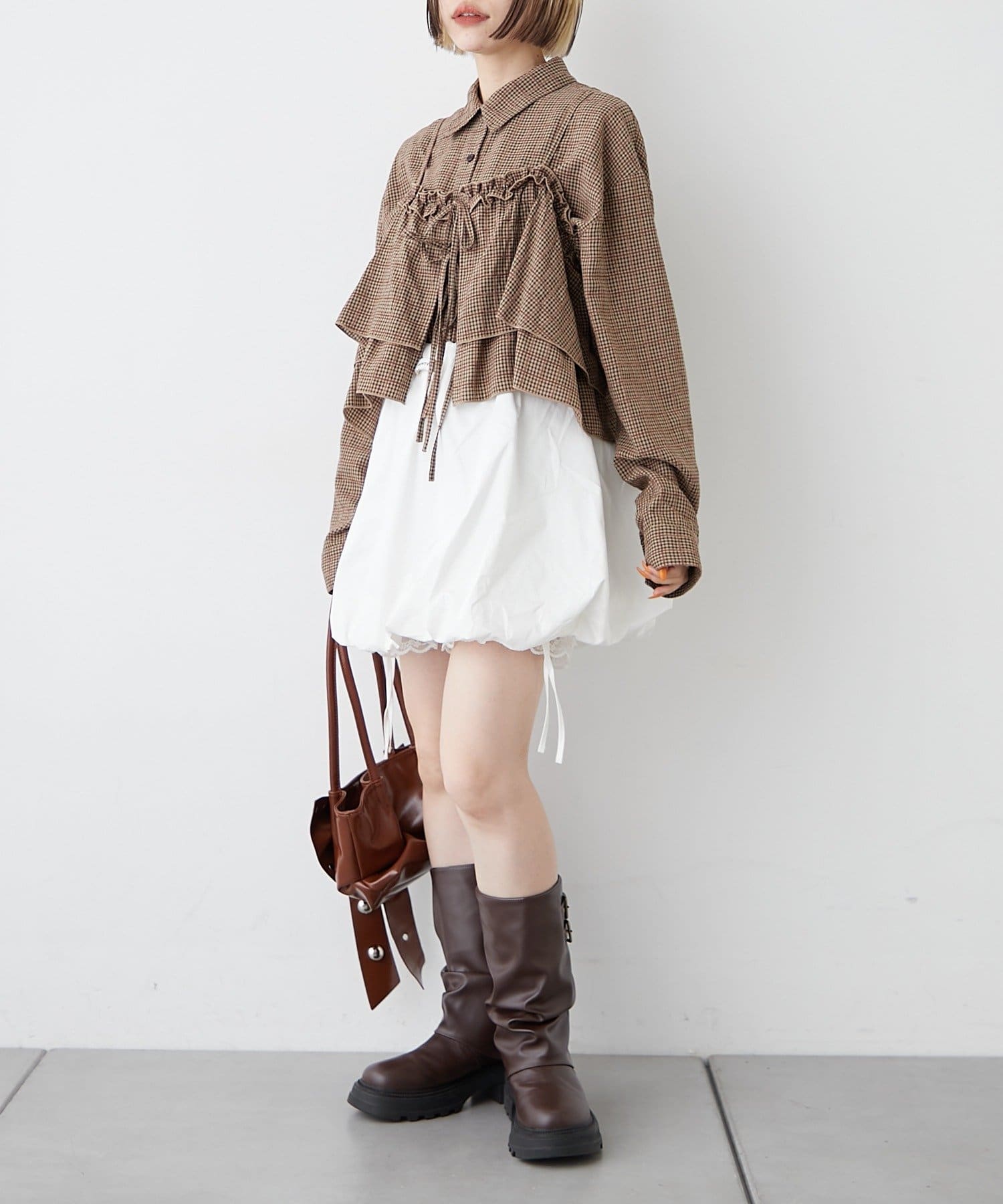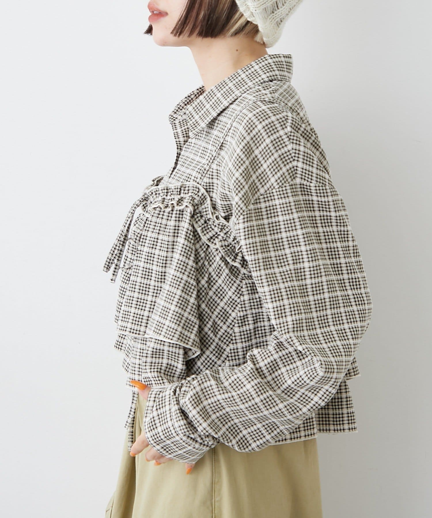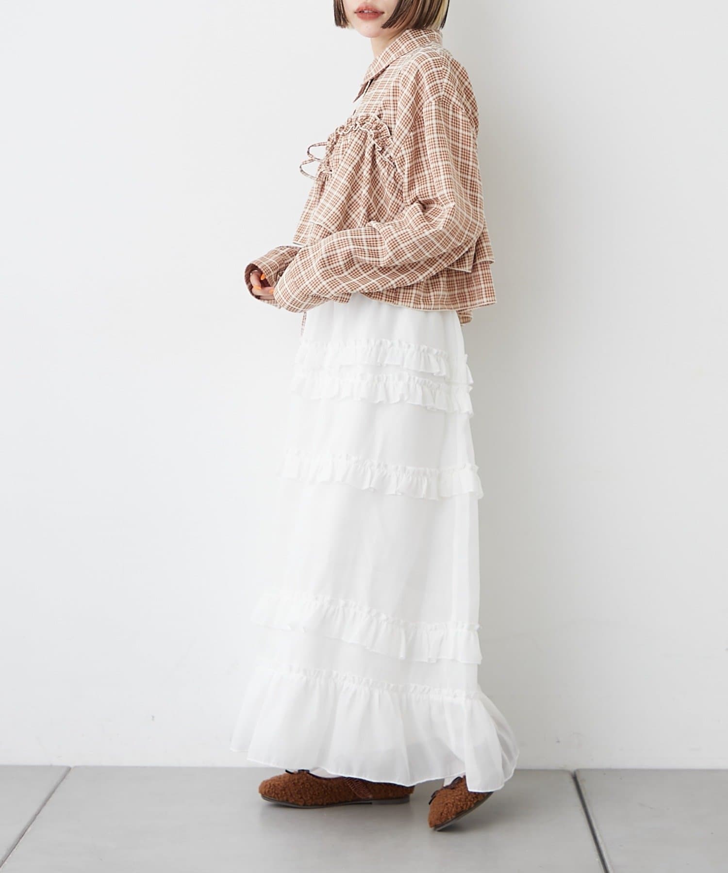 ・秋らしいチェックとフリルを使ったビスチェの嬉しいセットアイテム♪