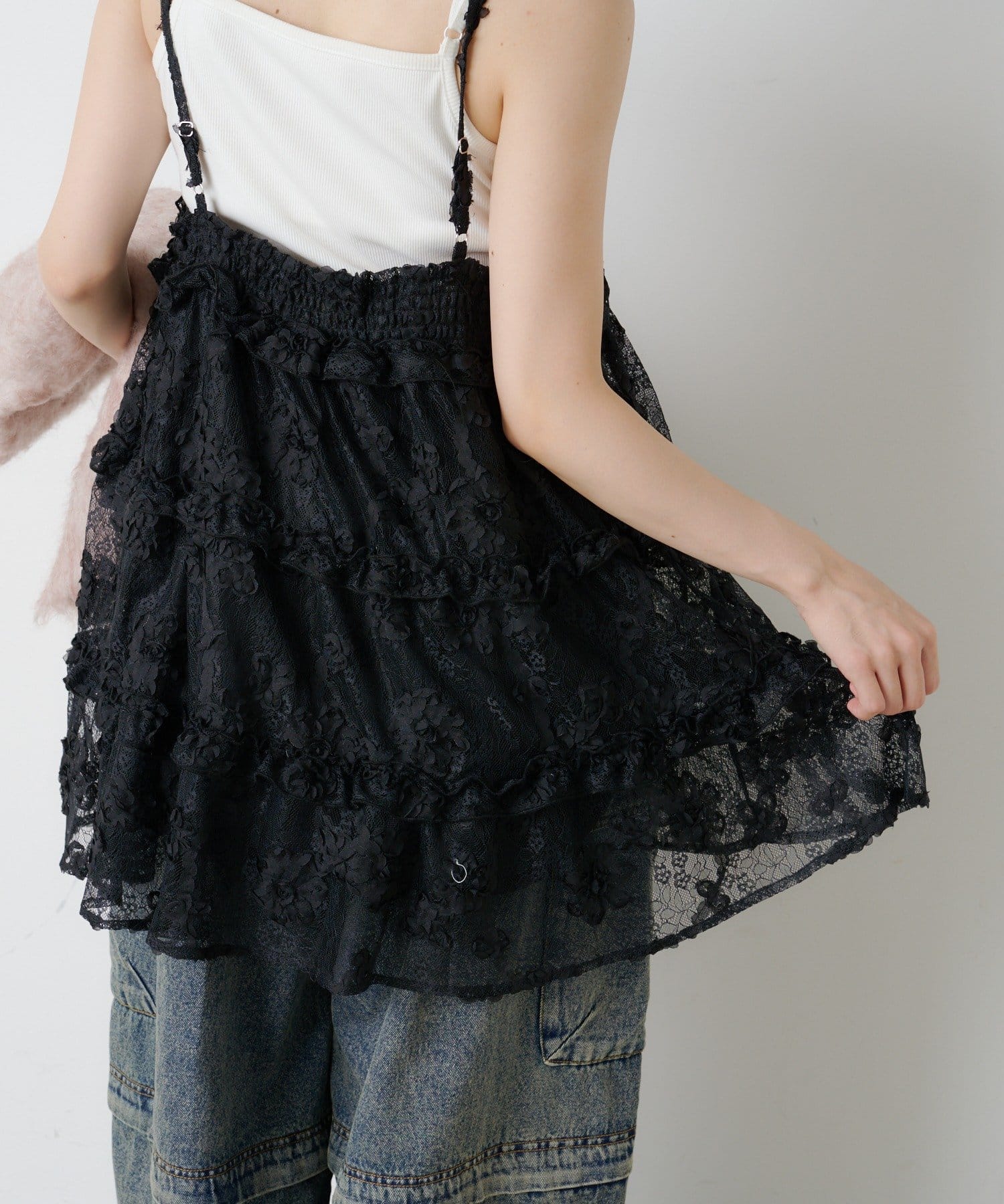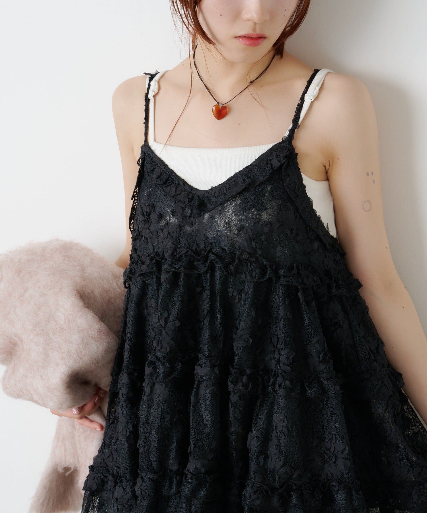 ・ふんわりと立体感のあるレースが特別感のあるキャミワンピ♡