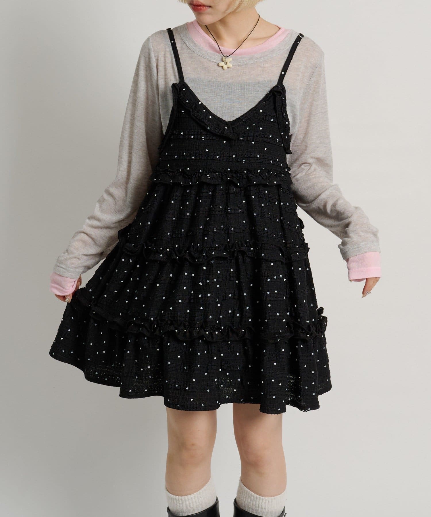 【新色ドット柄が登場!】【季節問わず使える】立体レースミニキャミワンピース