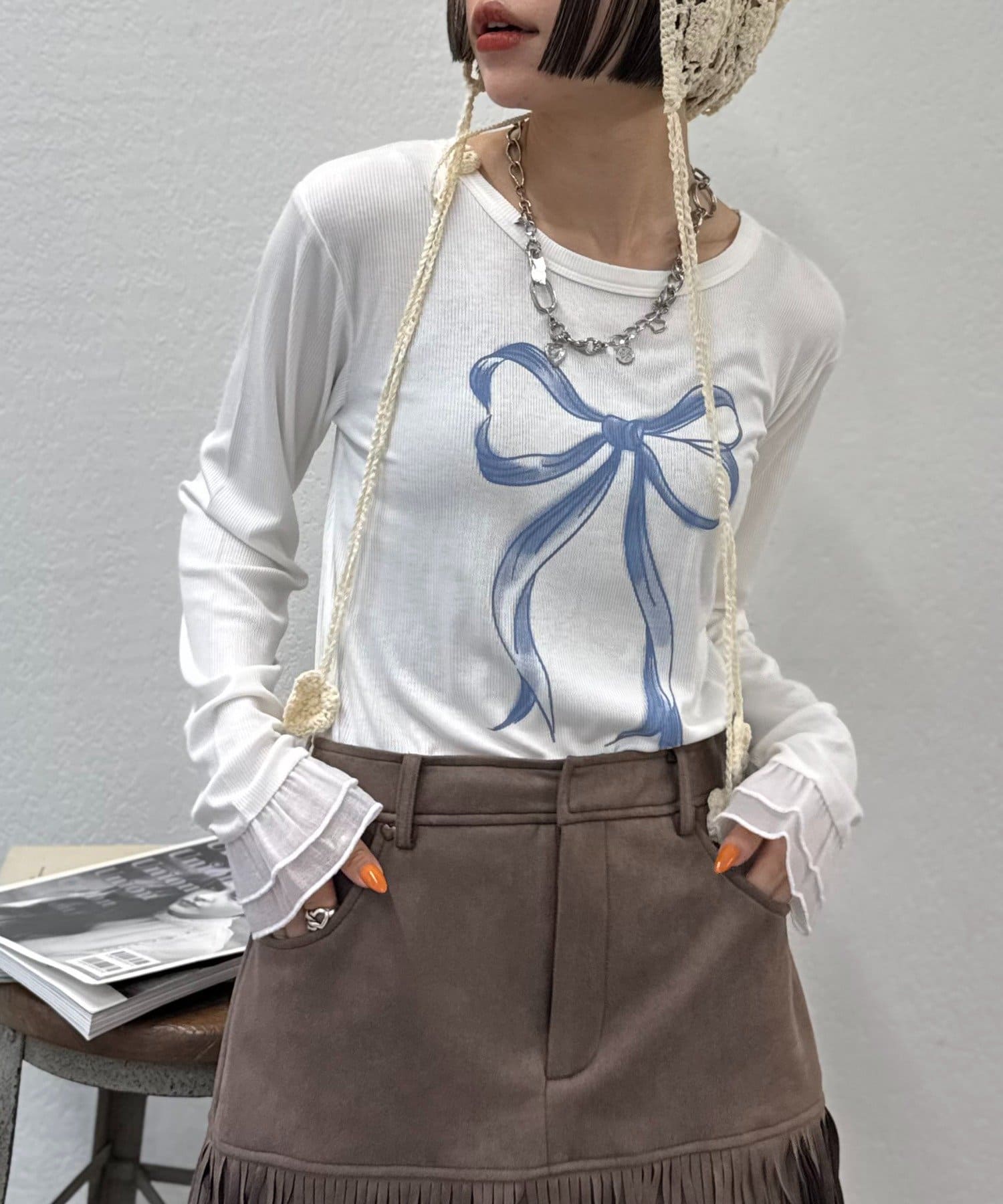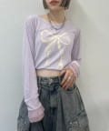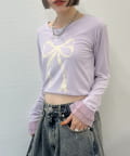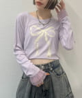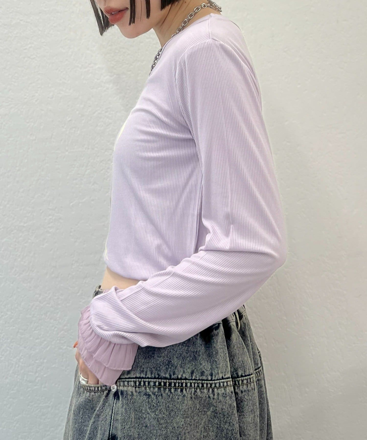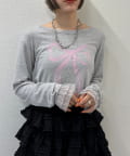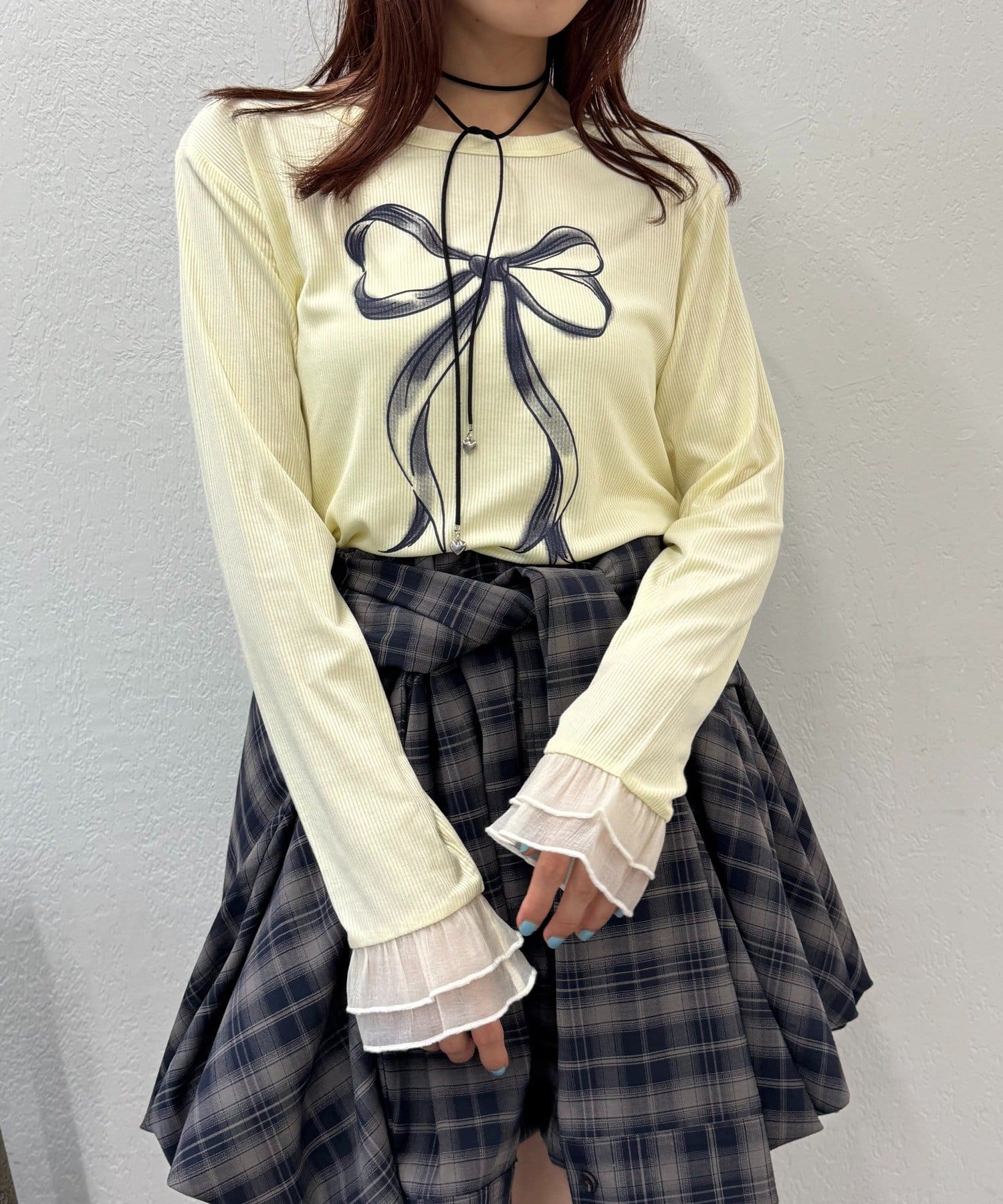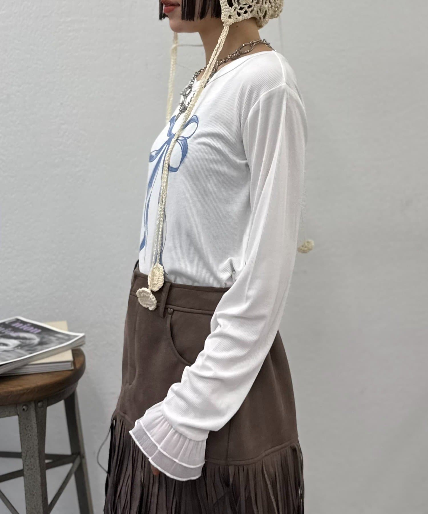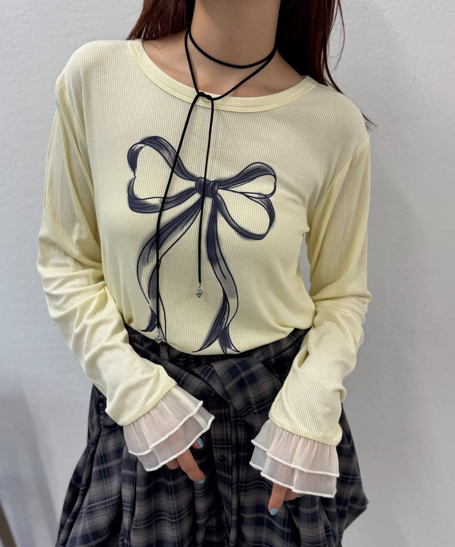 w closet(ダブルクローゼット) 【25AW】袖フリルリボンロングTシャツ