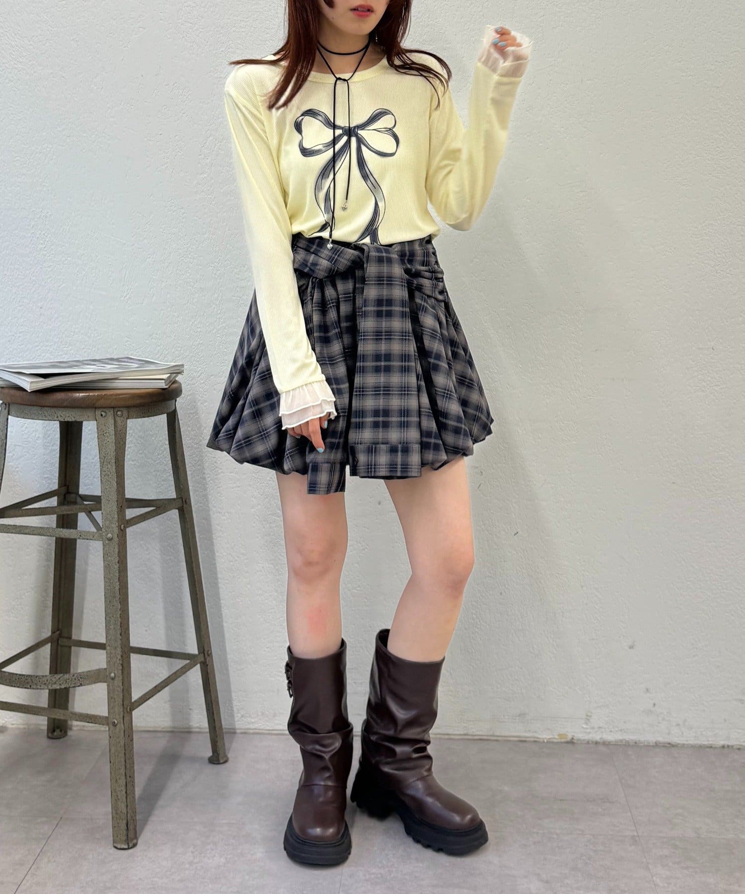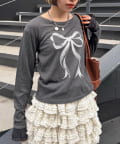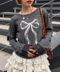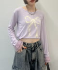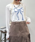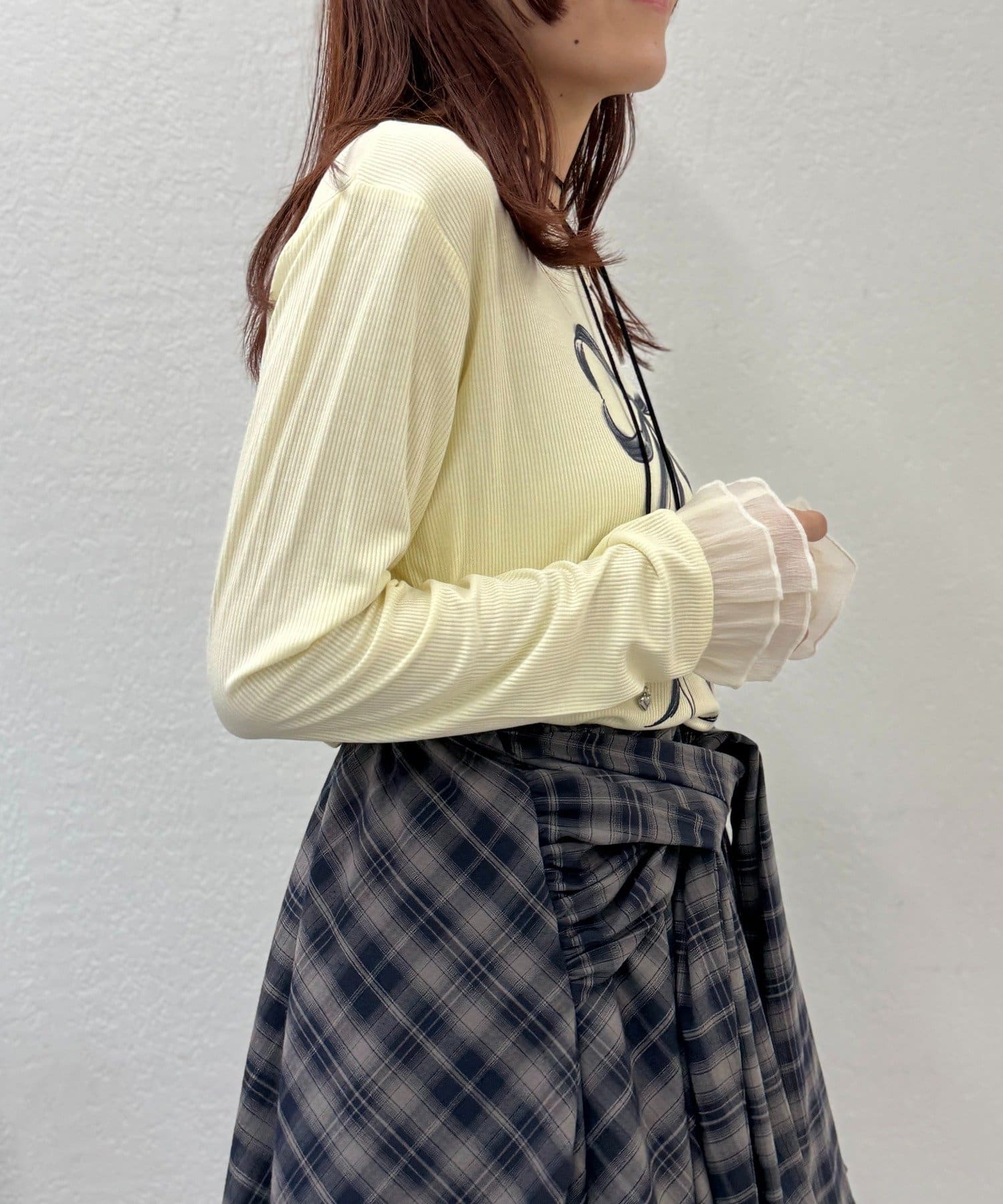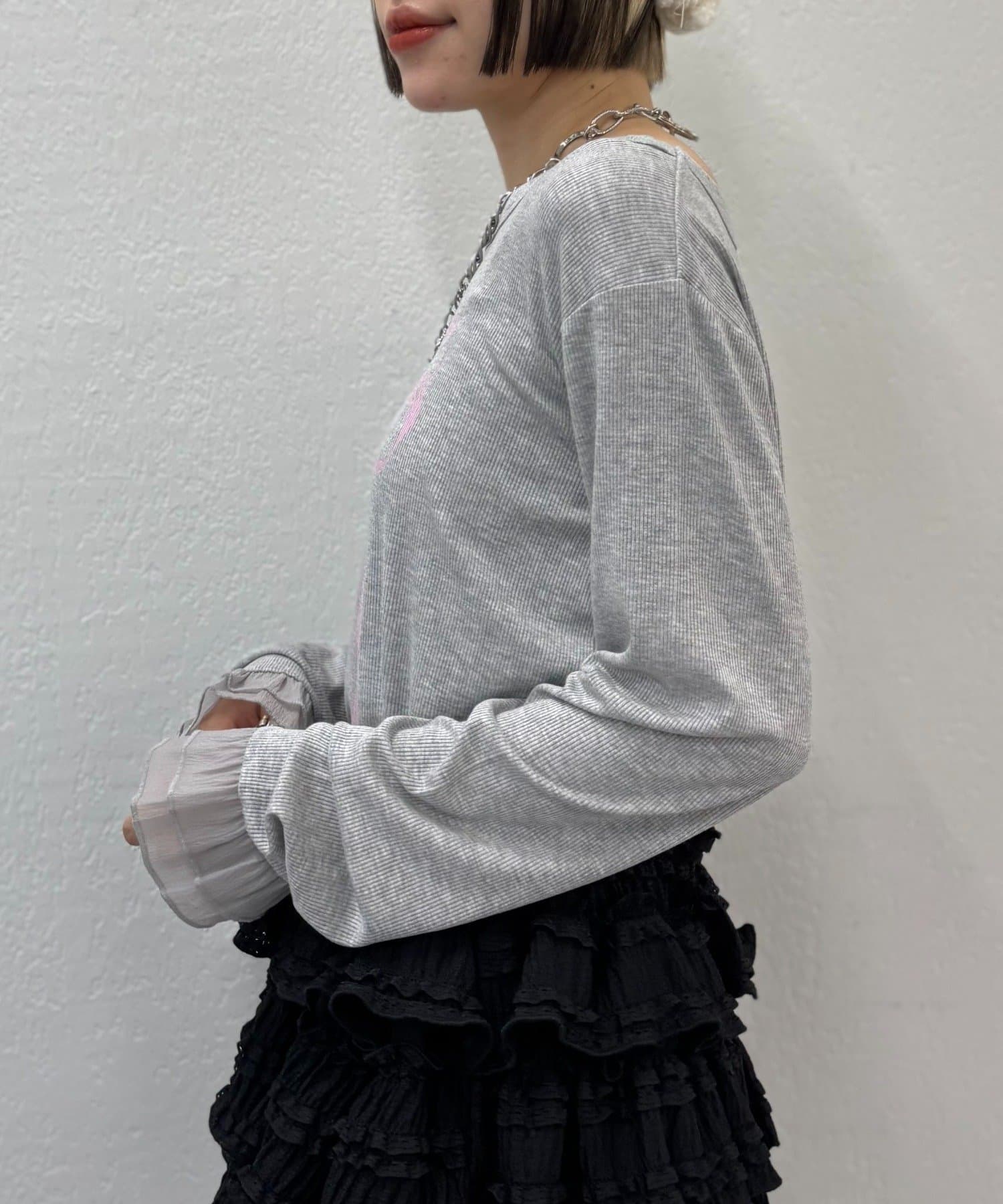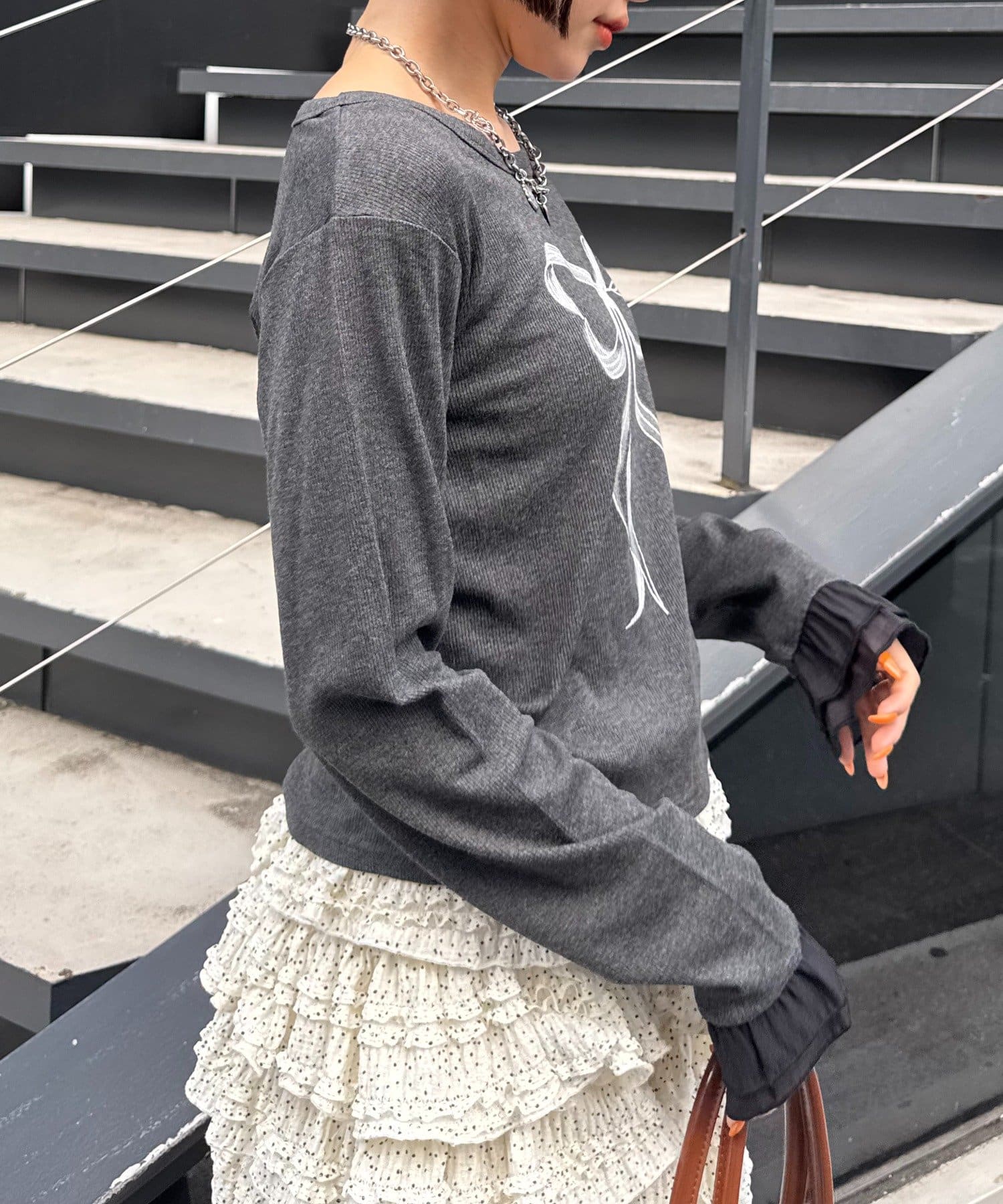 w closet(ダブルクローゼット) 【25AW】袖フリルリボンロングTシャツ