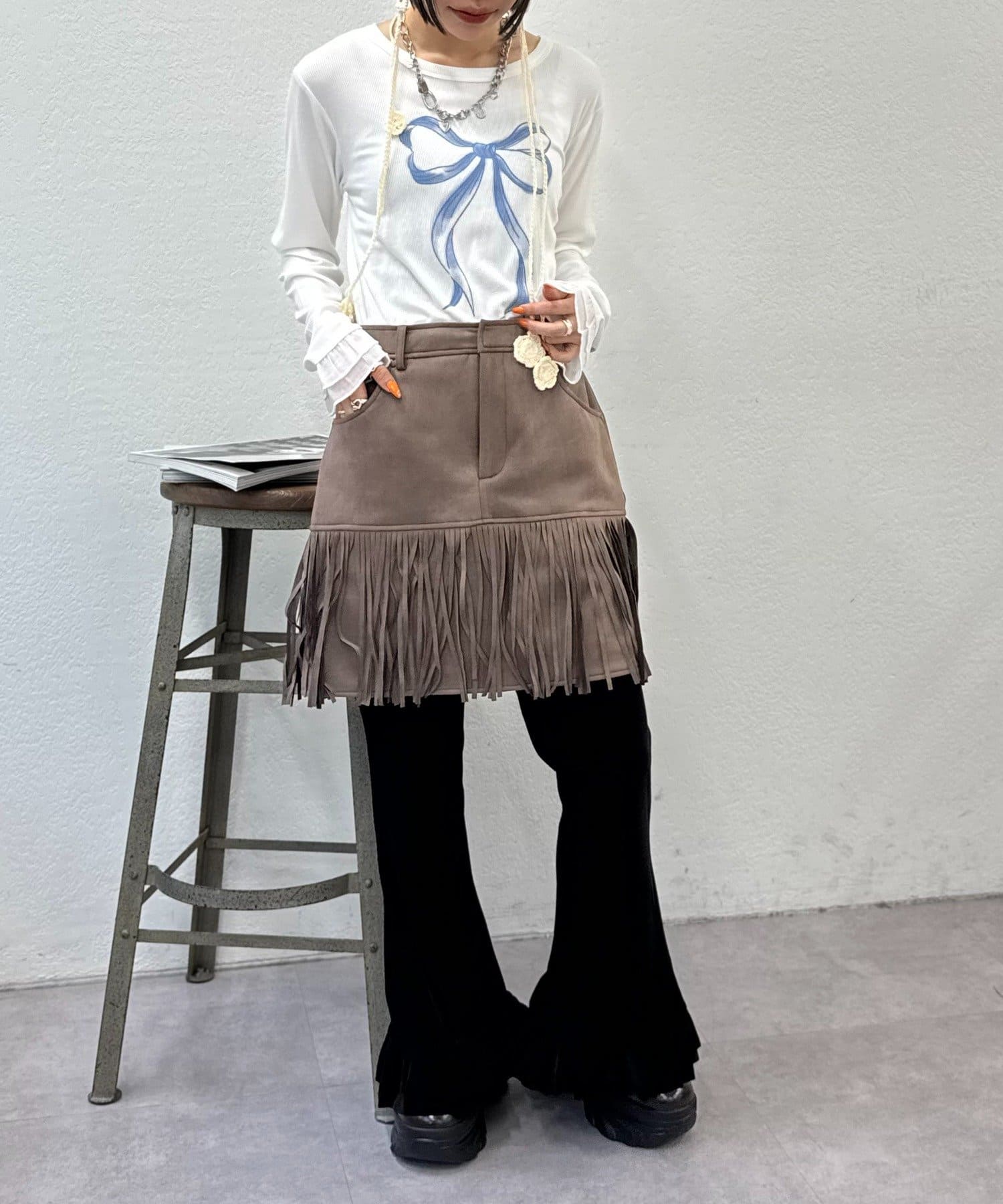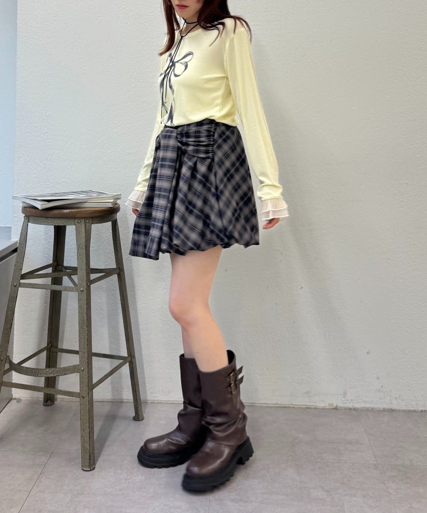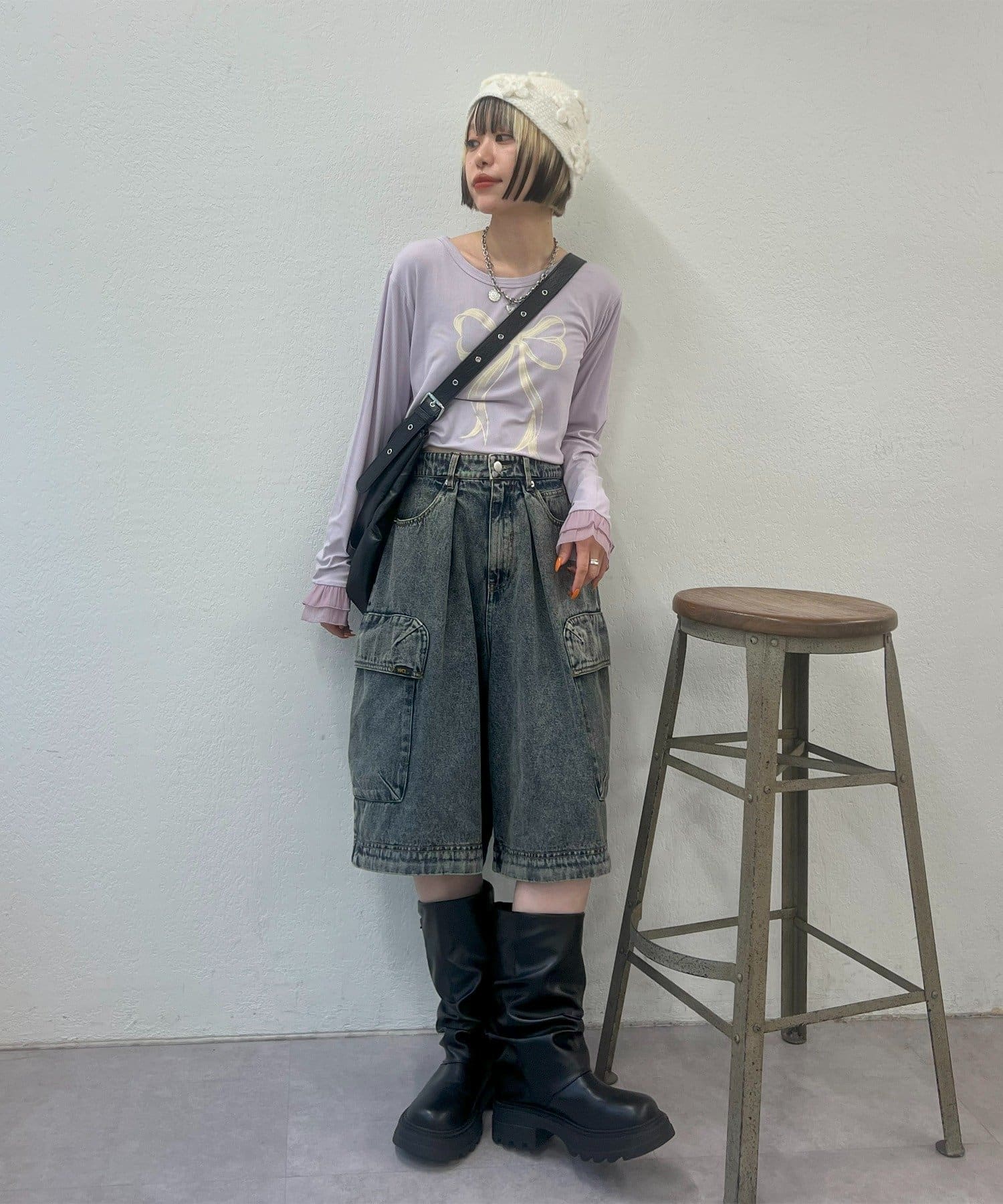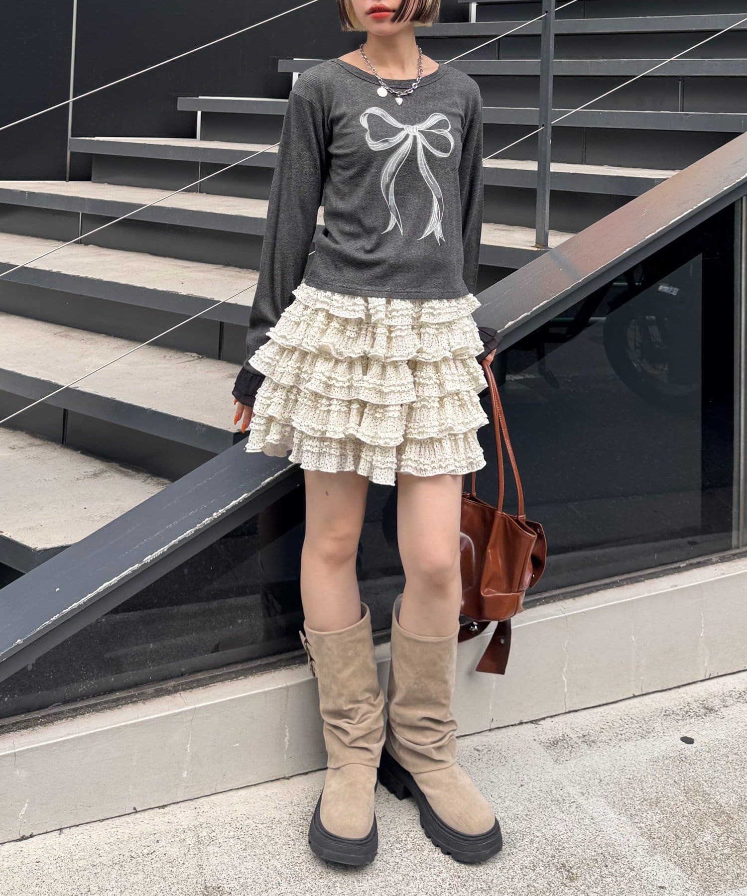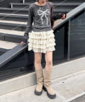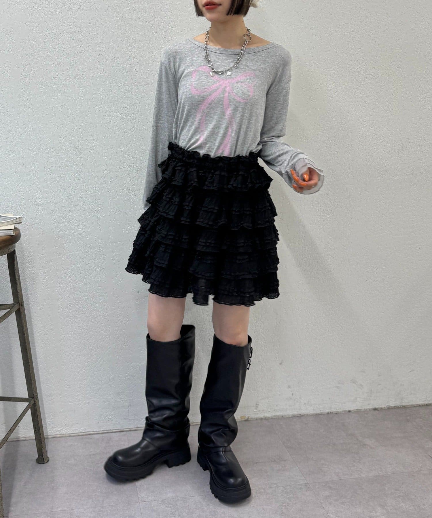 w closet(ダブルクローゼット) 【25AW】袖フリルリボンロングTシャツ