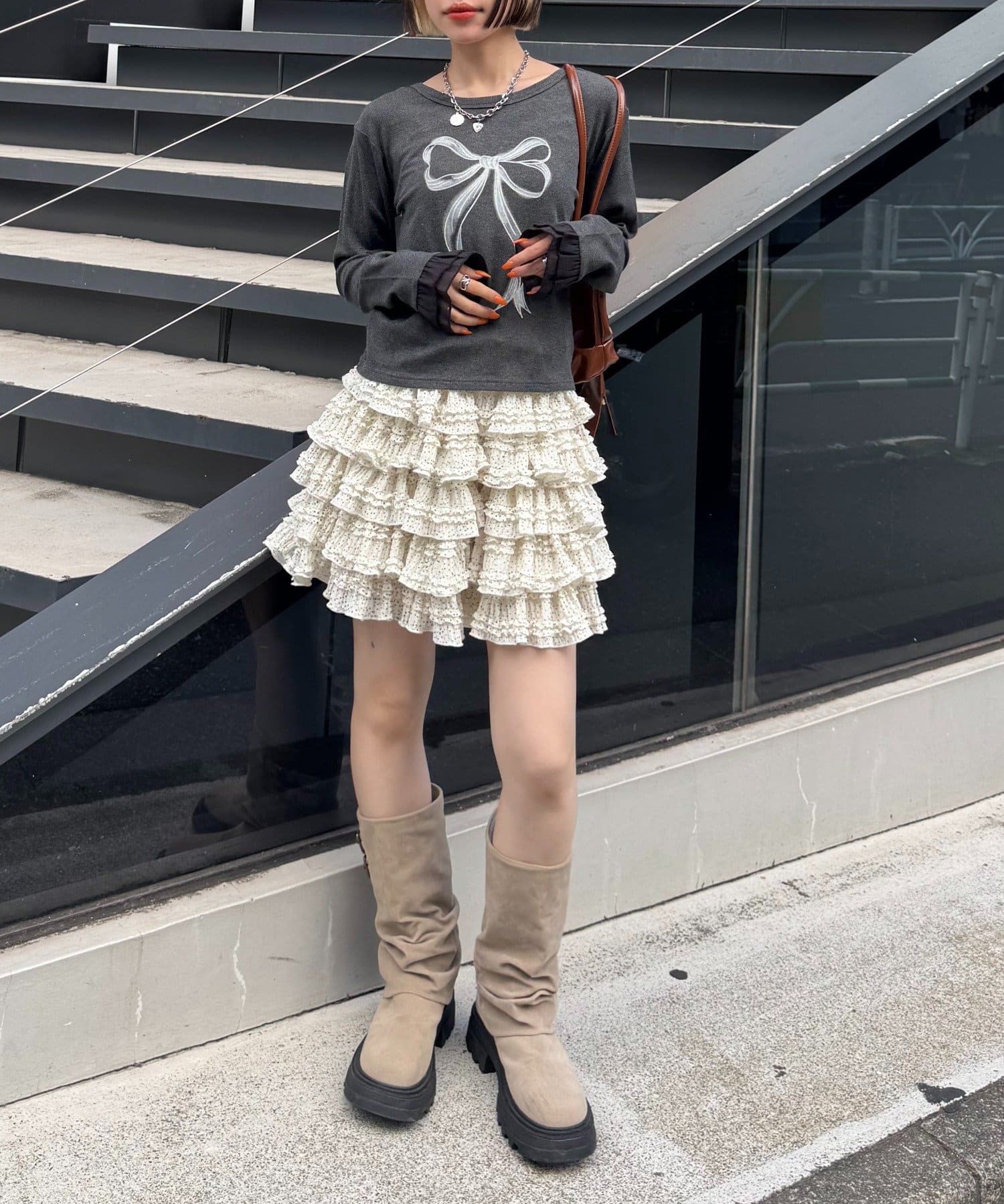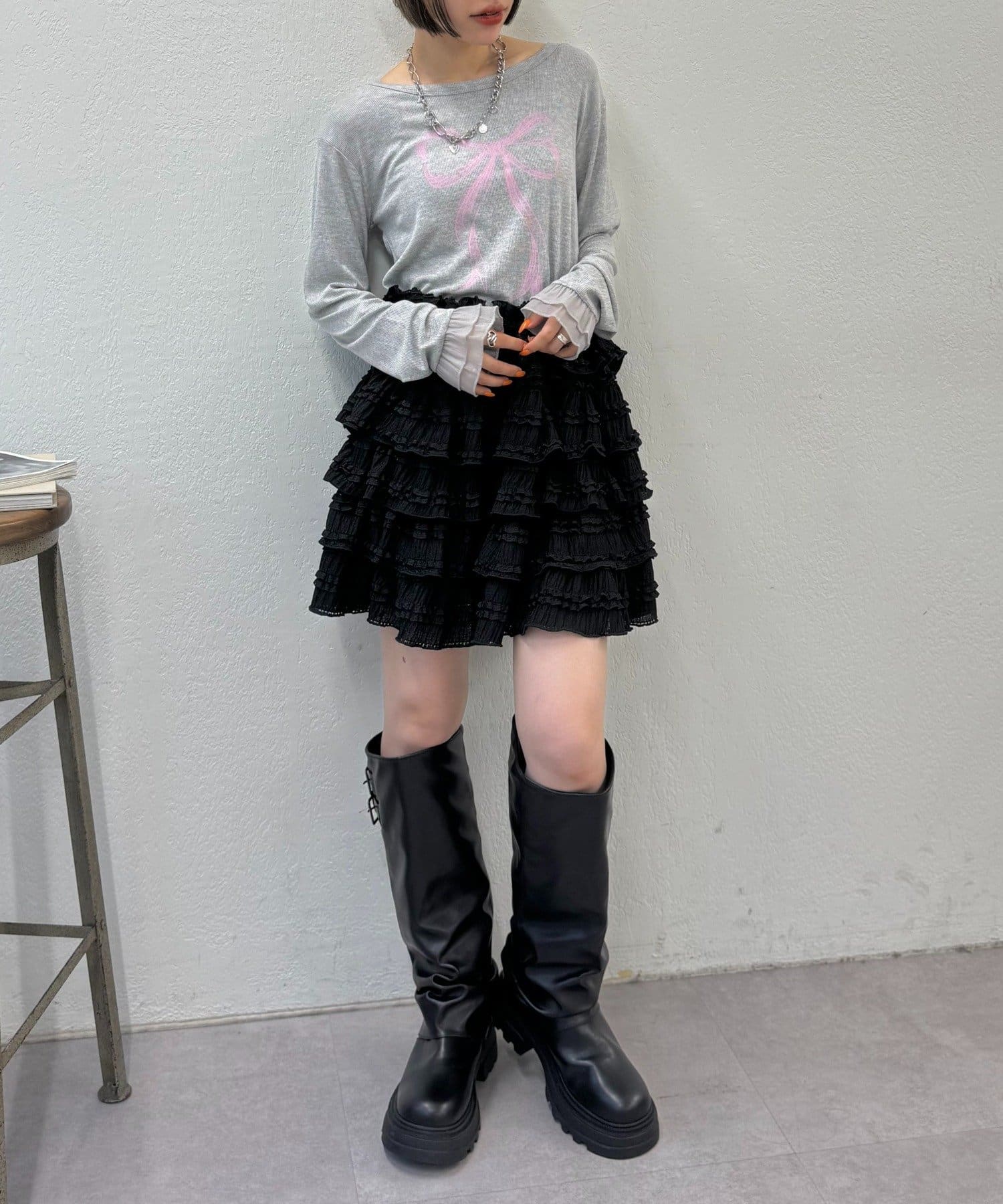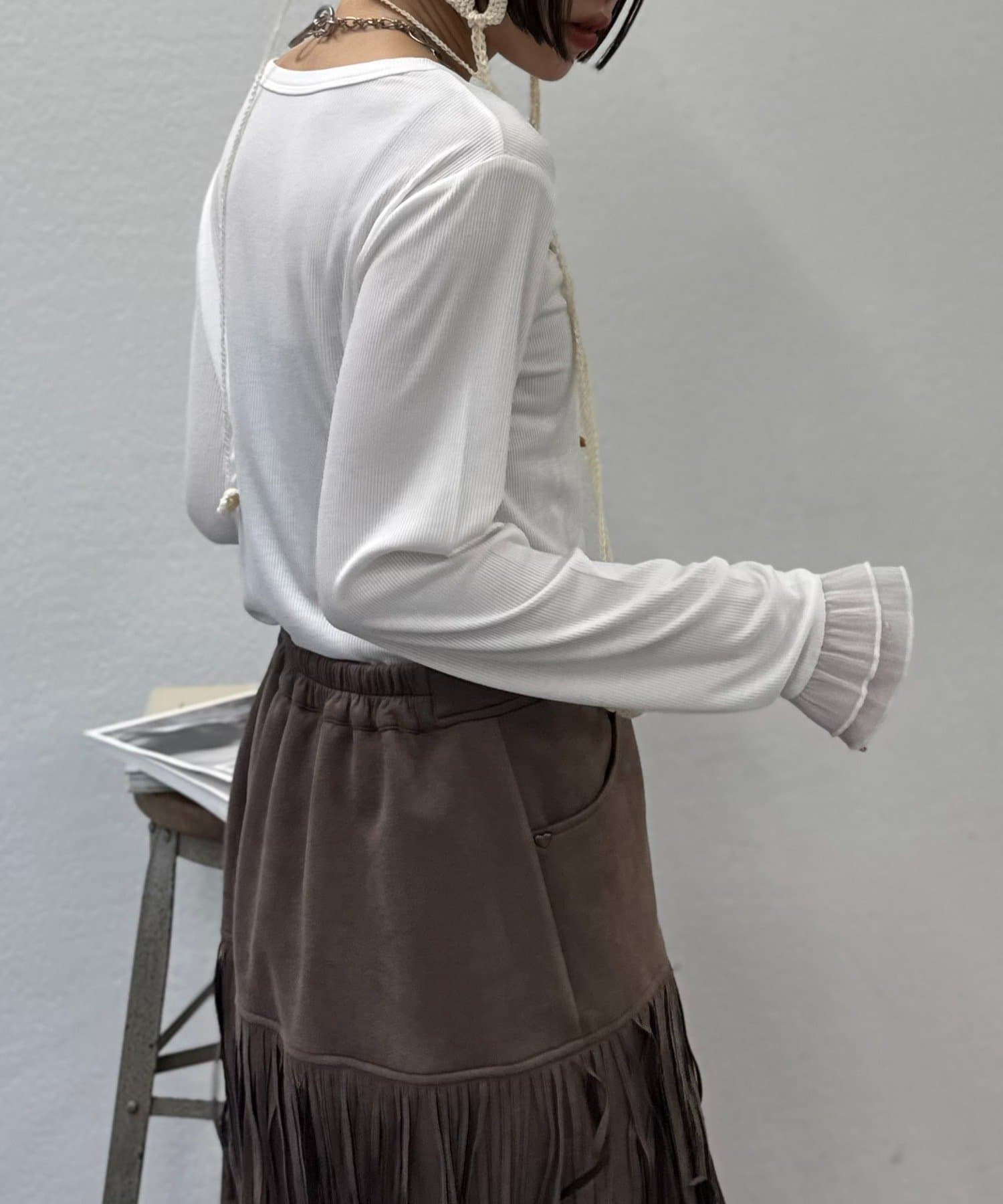 ・上からスウェットやジャケットを合わせて袖のフリルを出すなどレイヤードコーデにも使えます◎