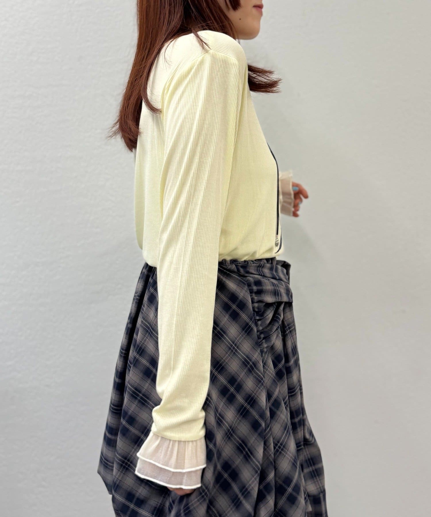 TOP > w closet > レディース > トップス > Tシャツ/カットソー > 【25AW】袖フリルリボンロングTシャツ
