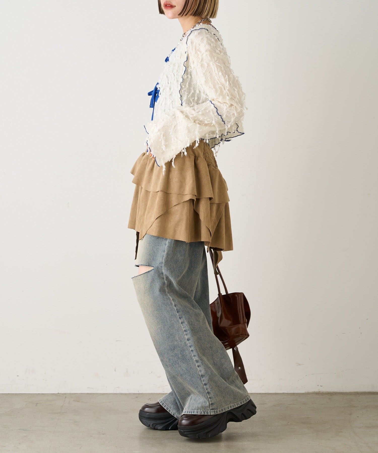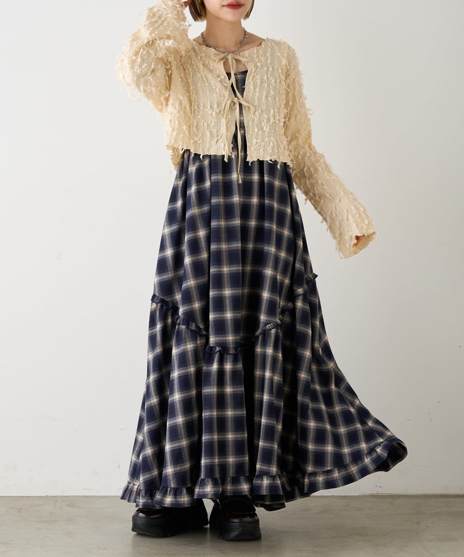 ・キャミと合わせてフェミニンな印象に