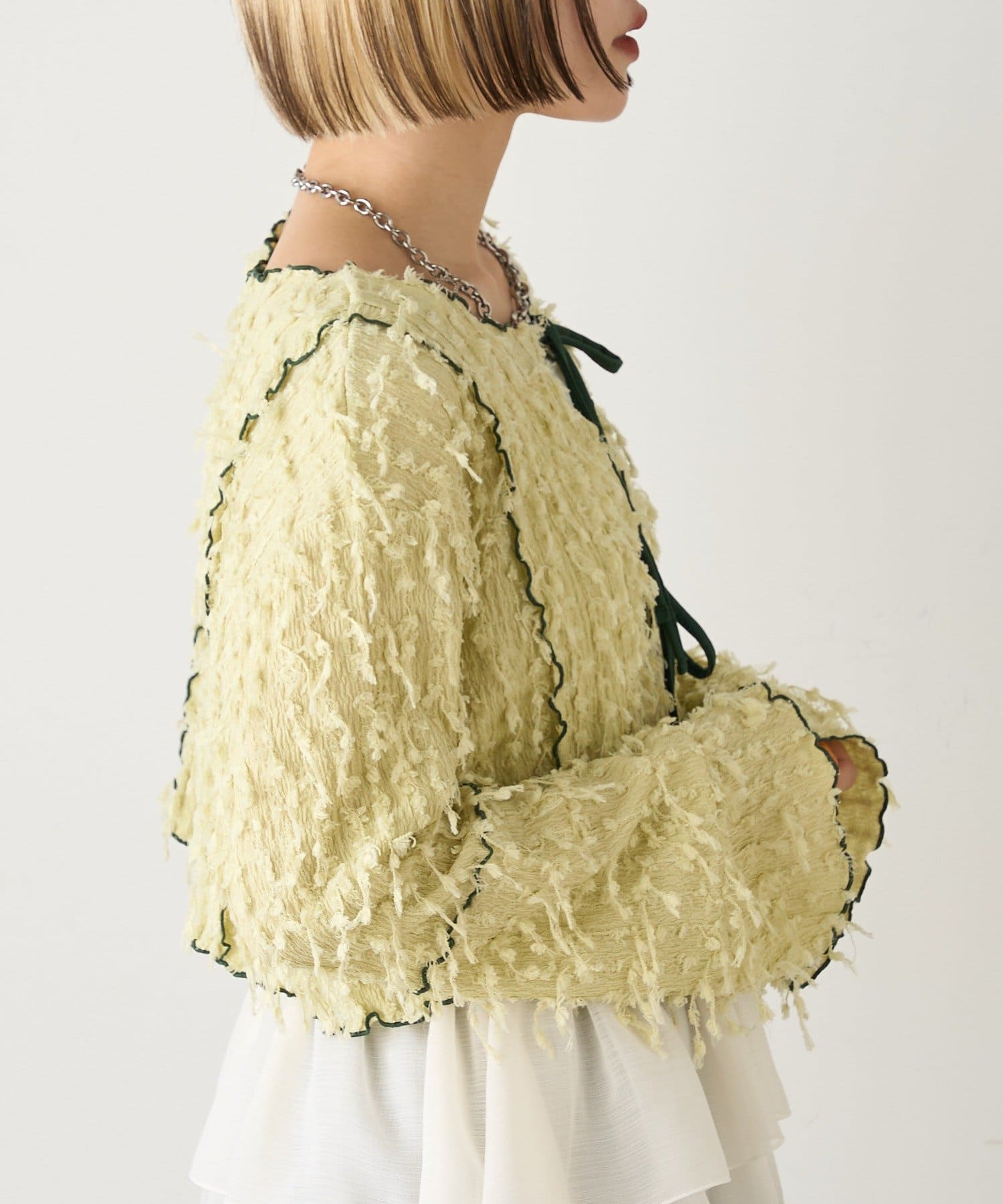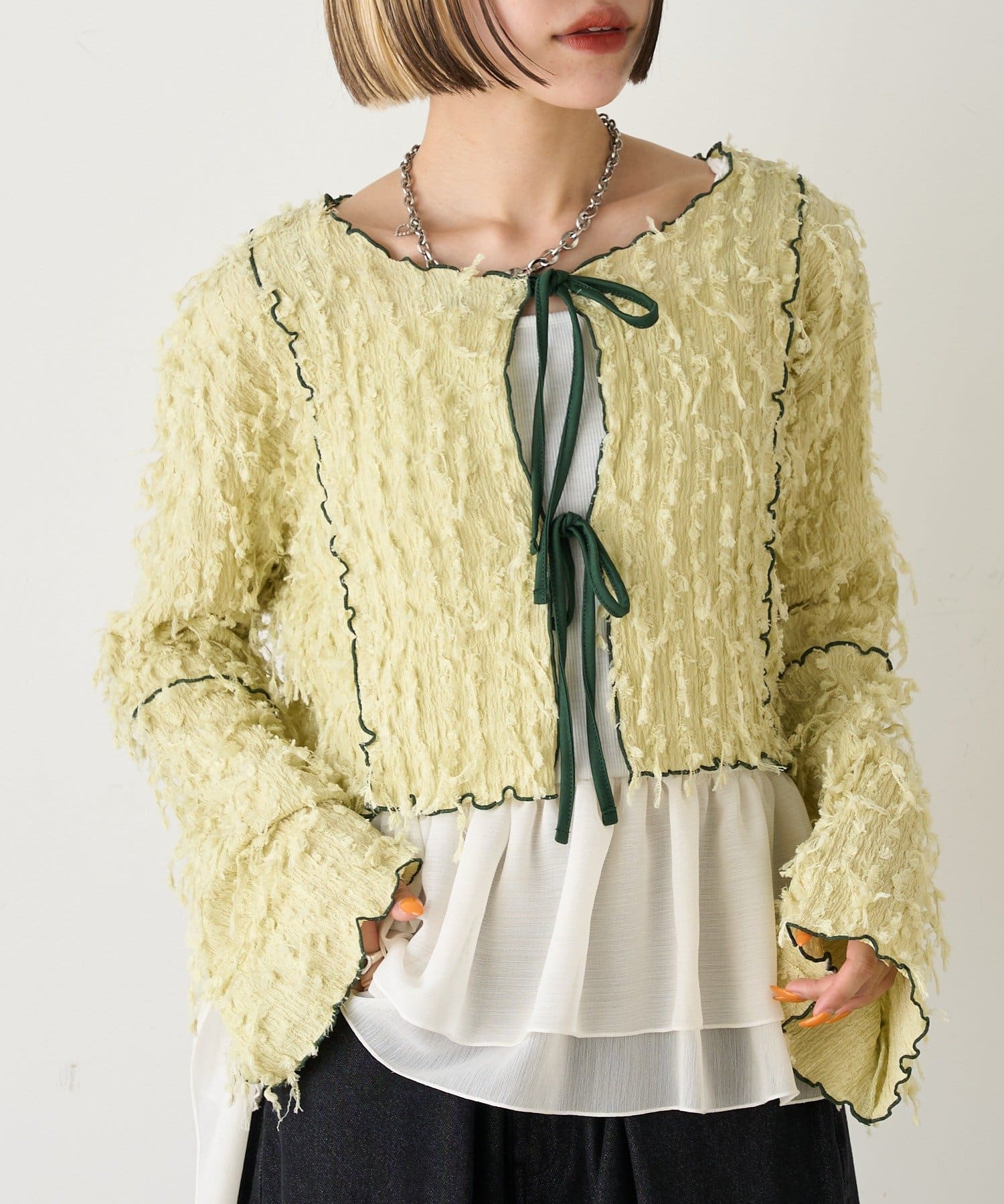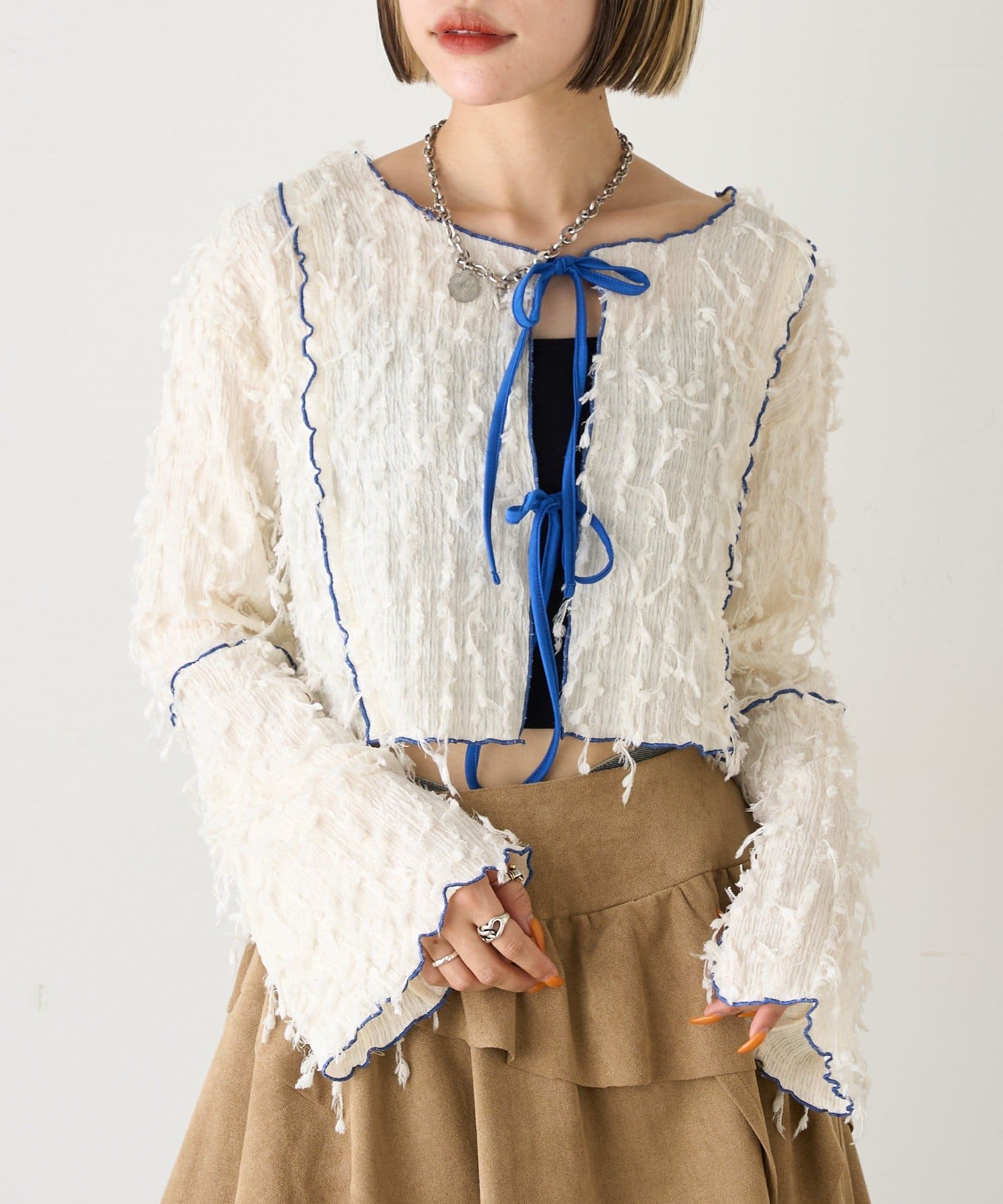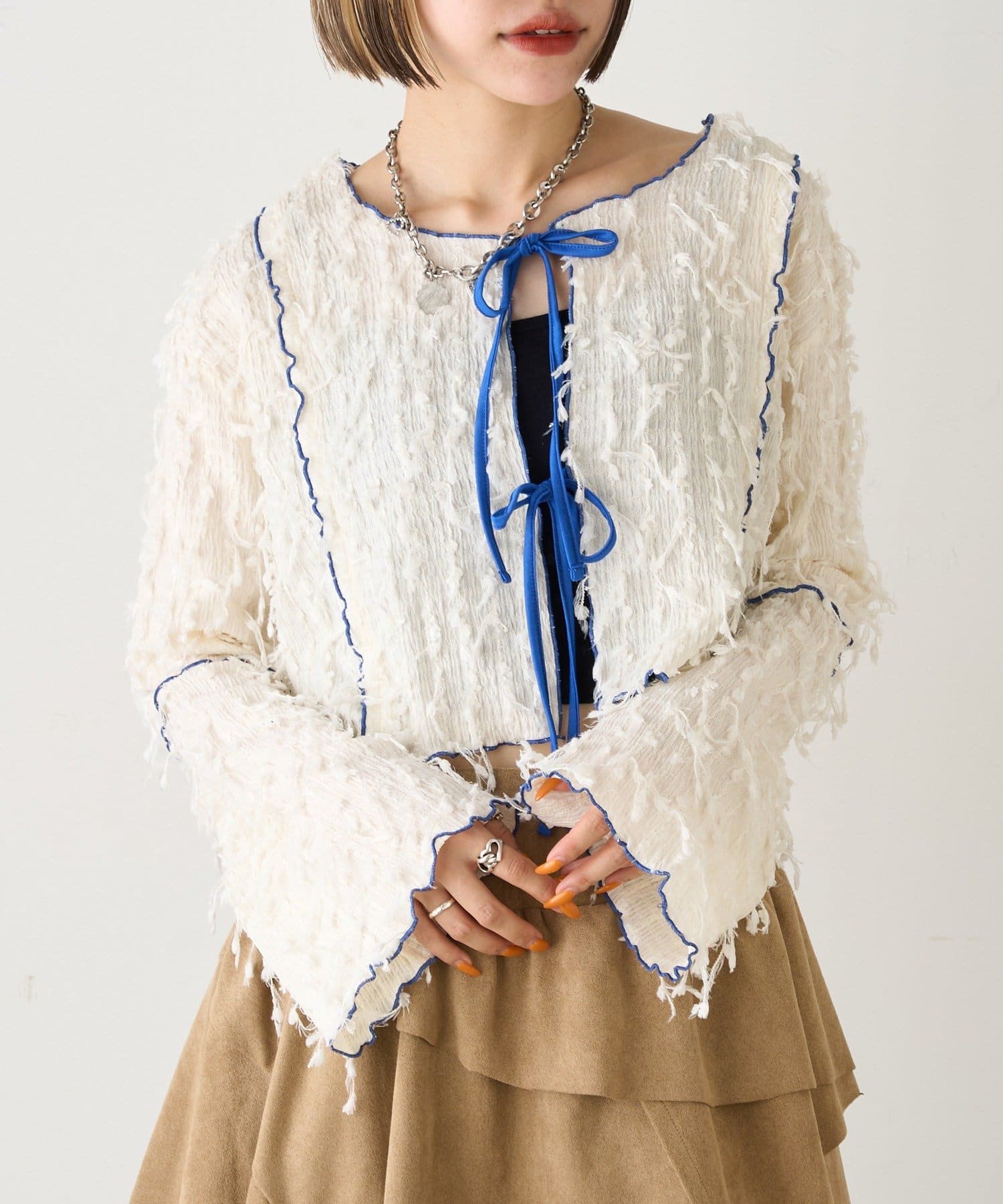 今から着れる!素材感がカワイイボレロ♡
