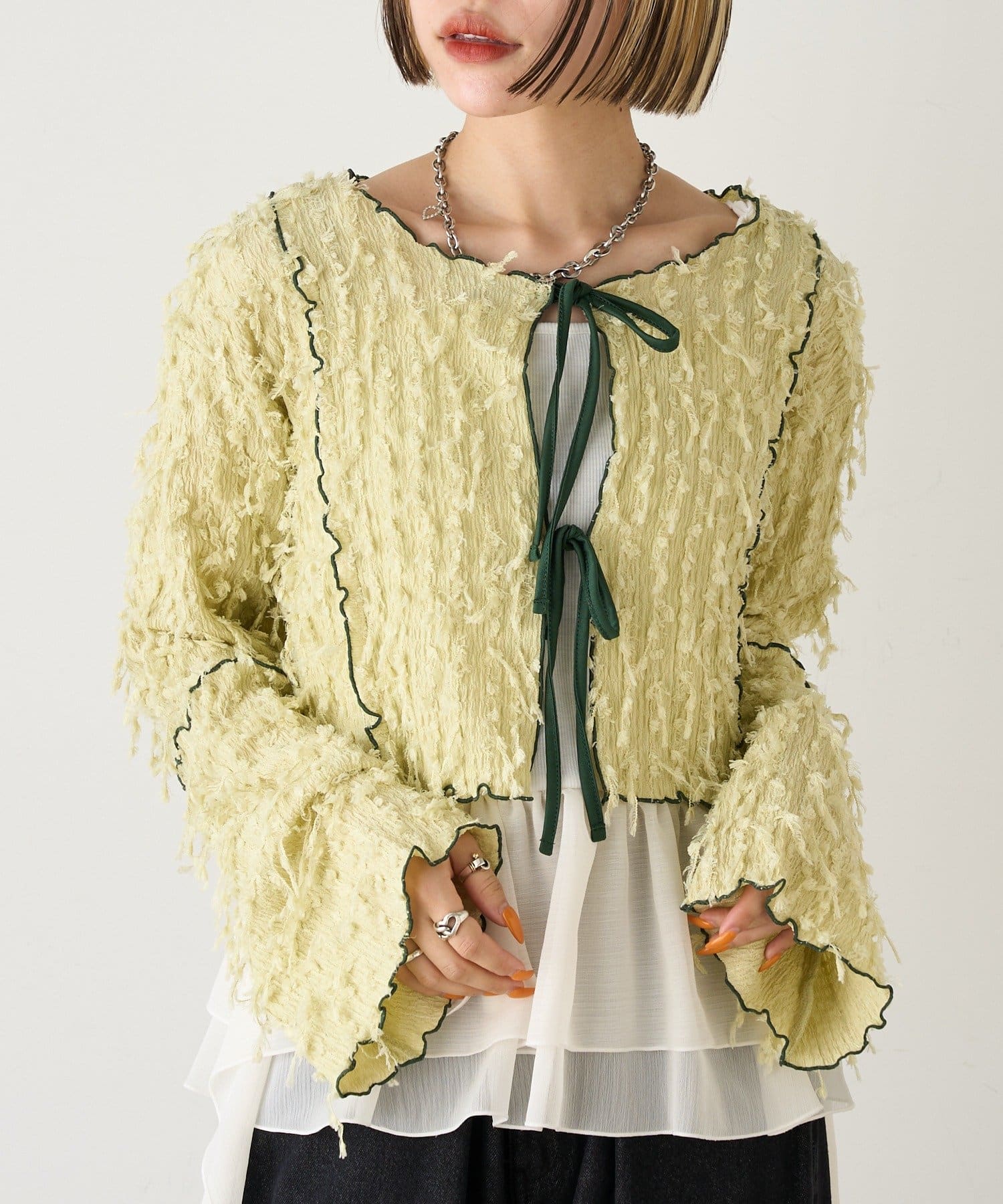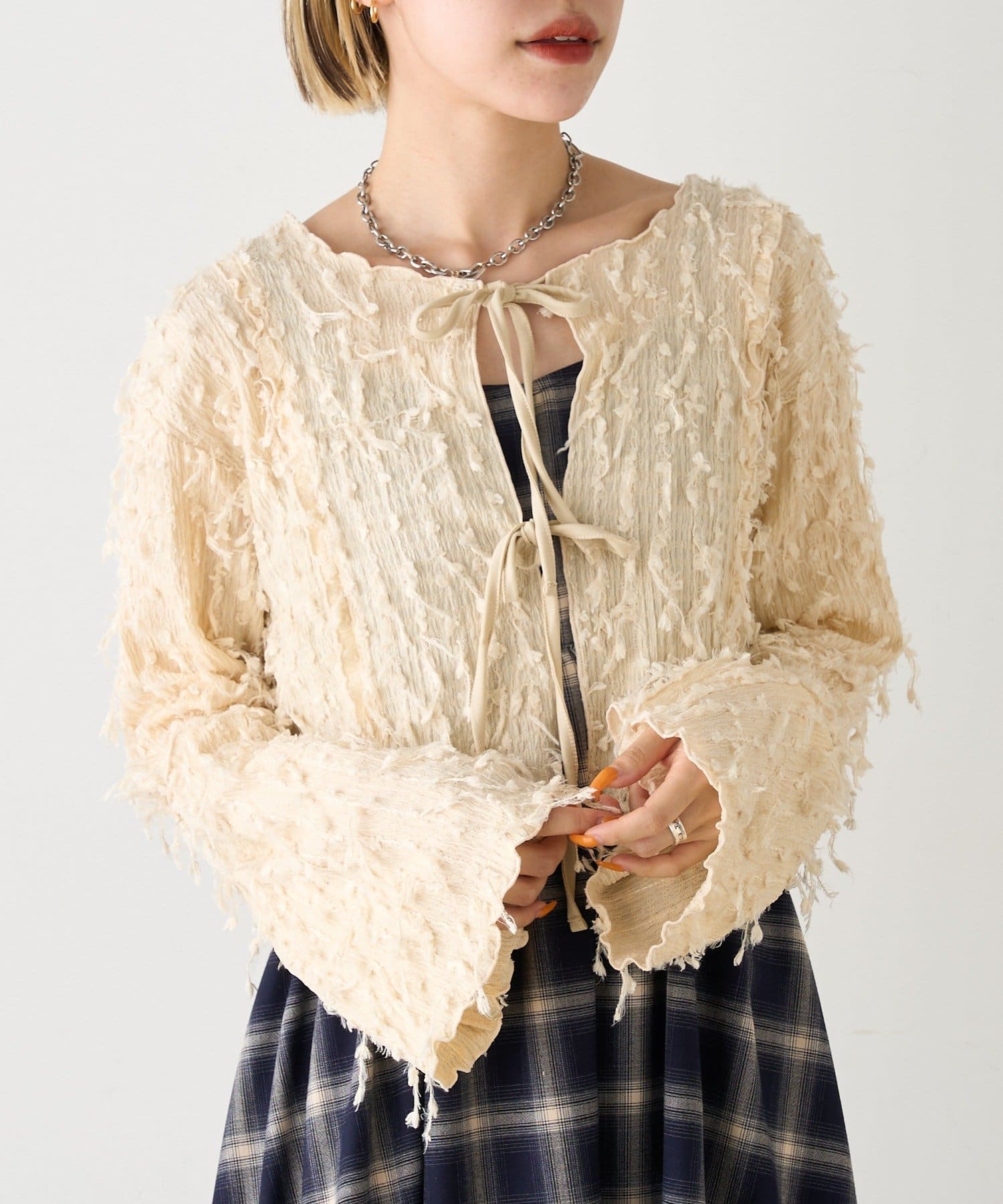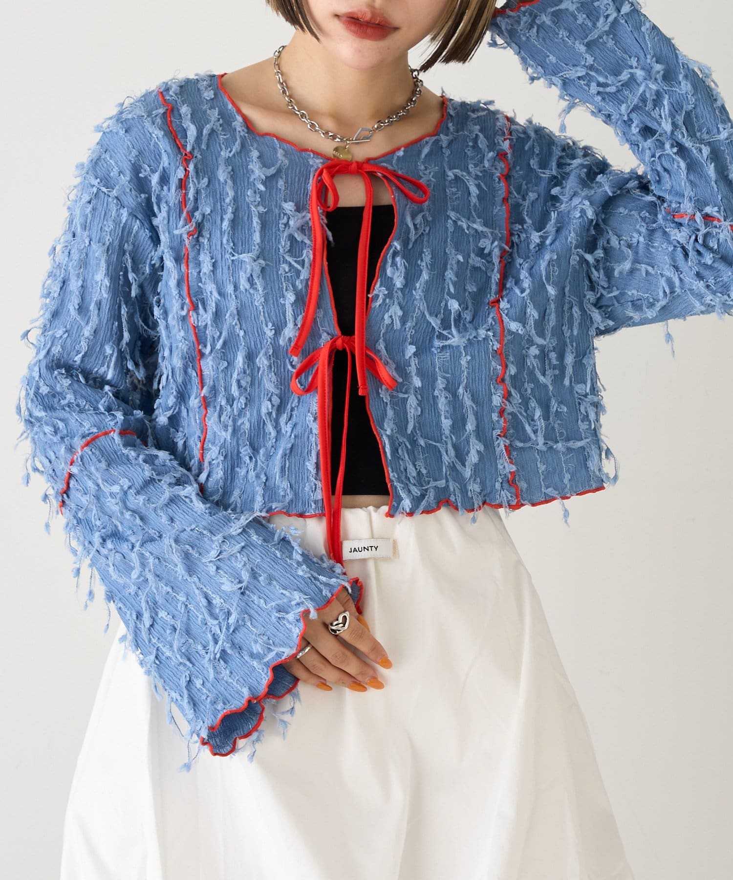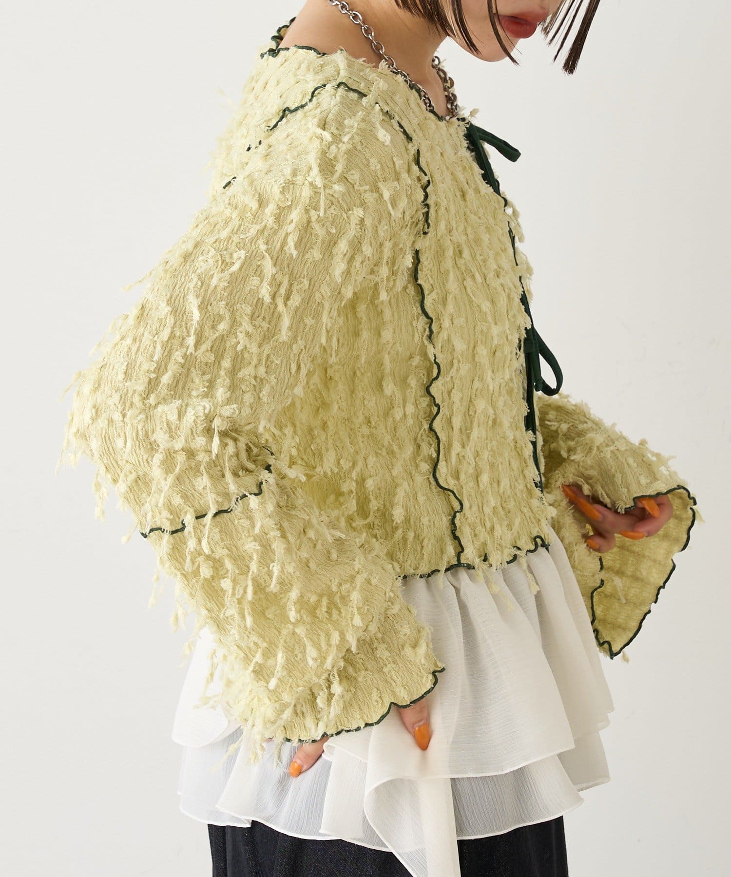 今から着れる!素材感がカワイイボレロ♡