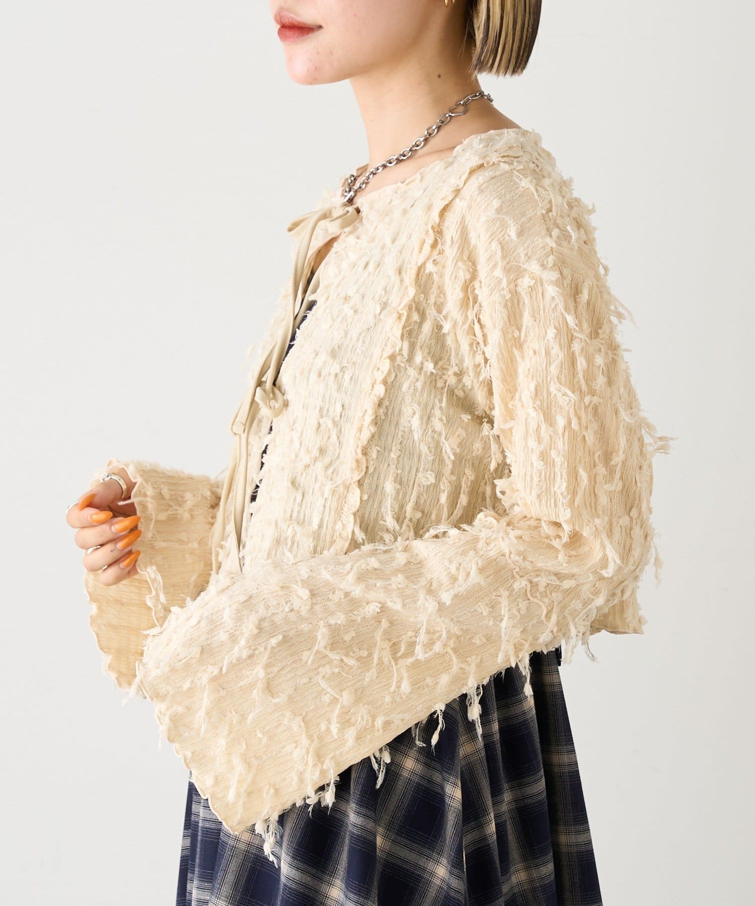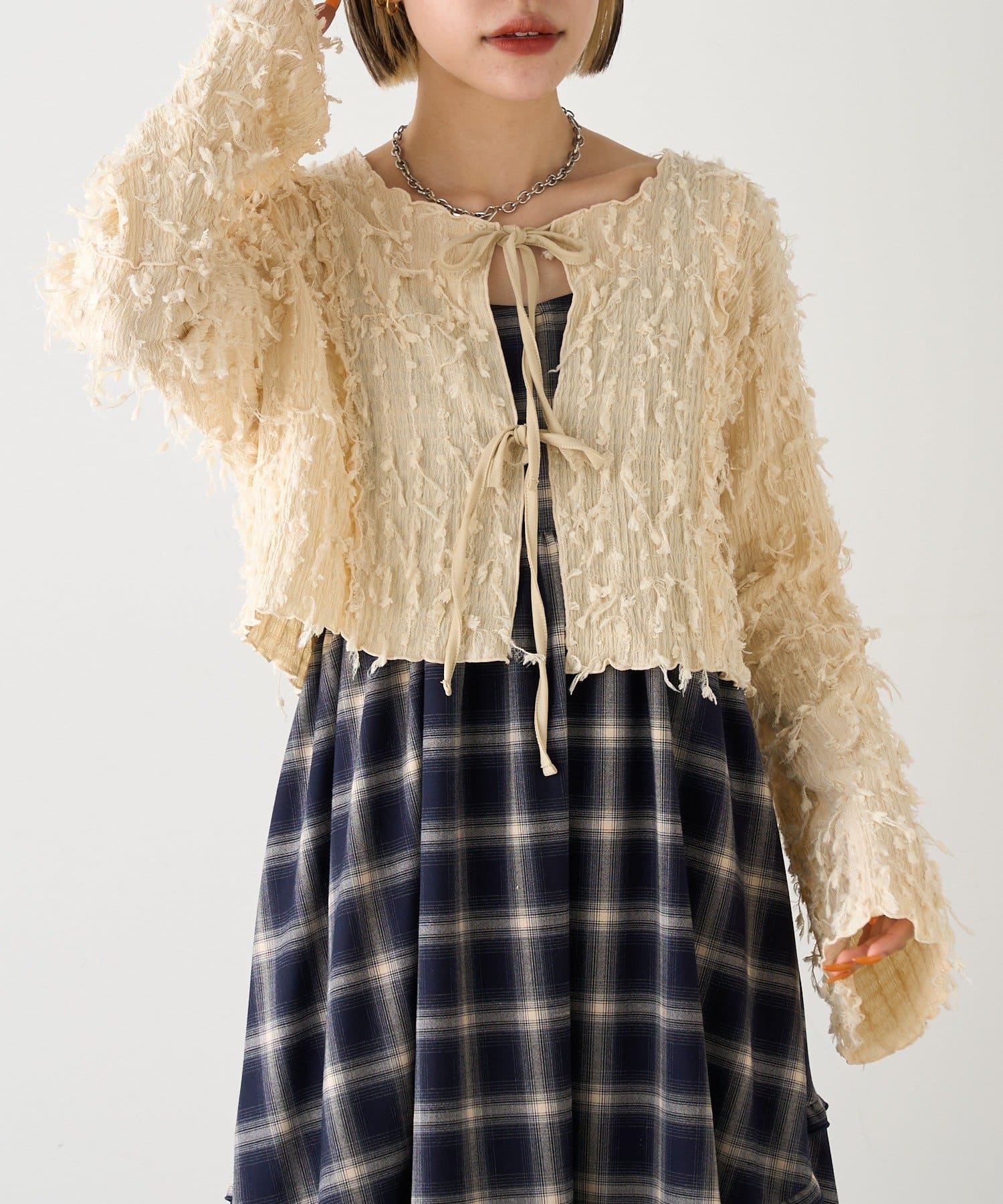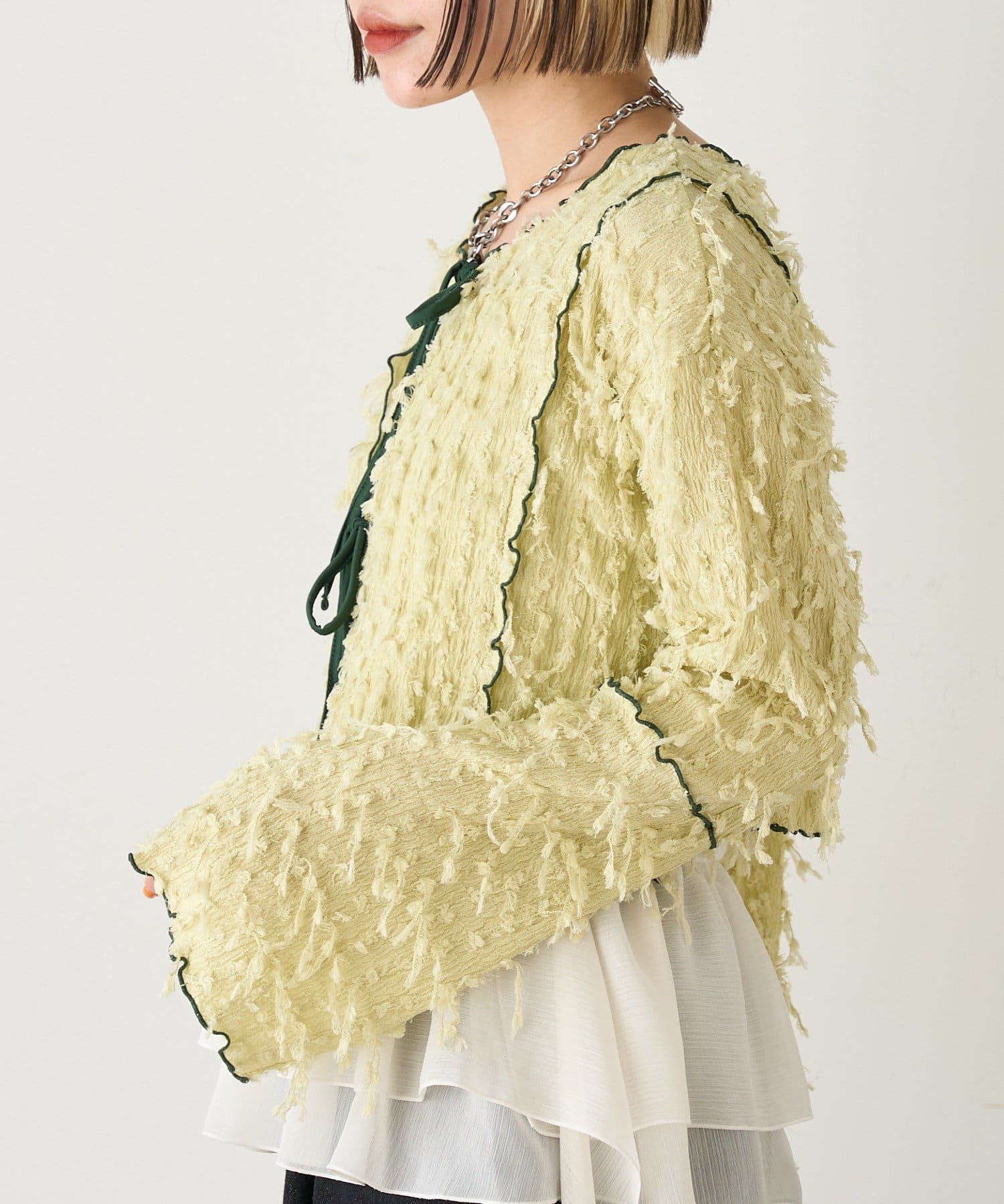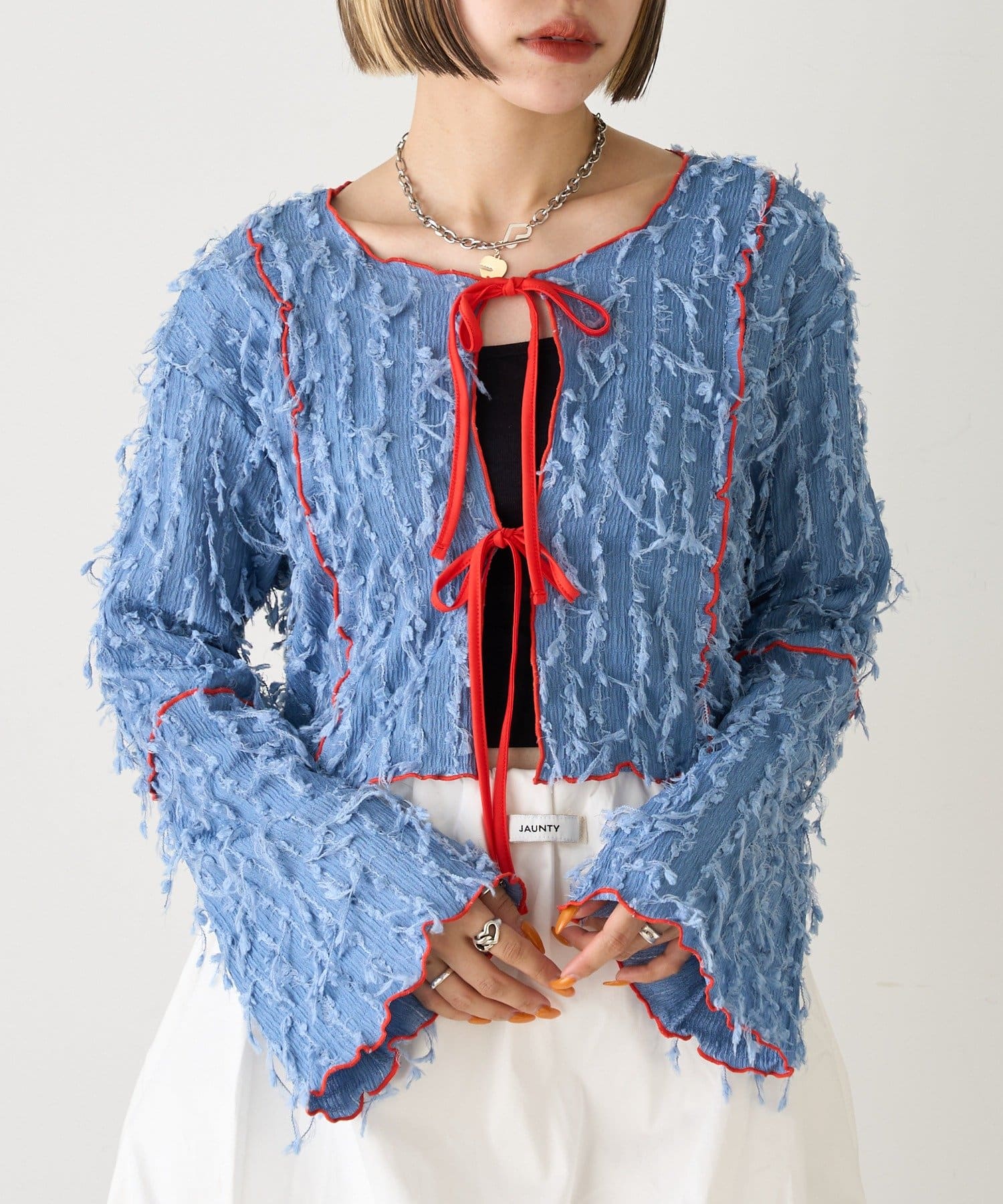 今から着れる!素材感がカワイイボレロ♡