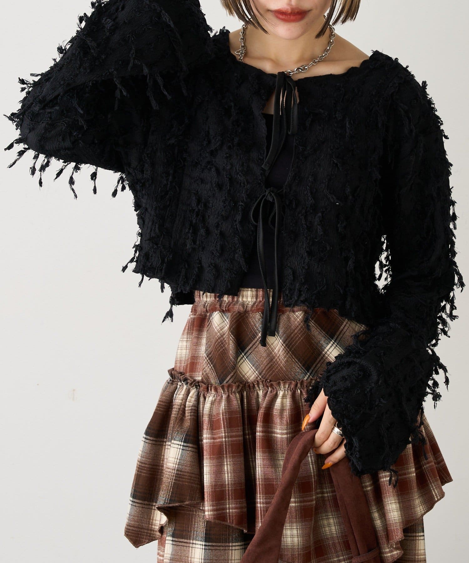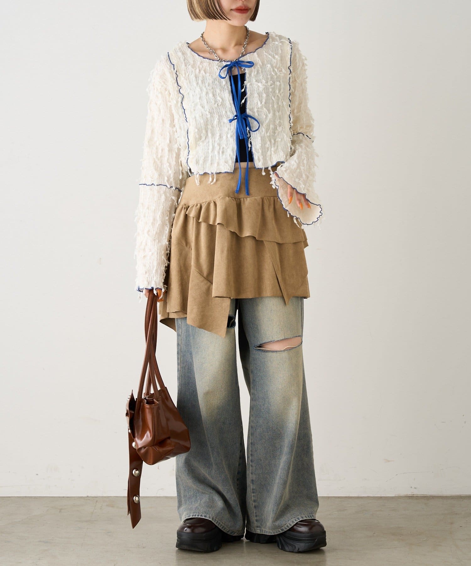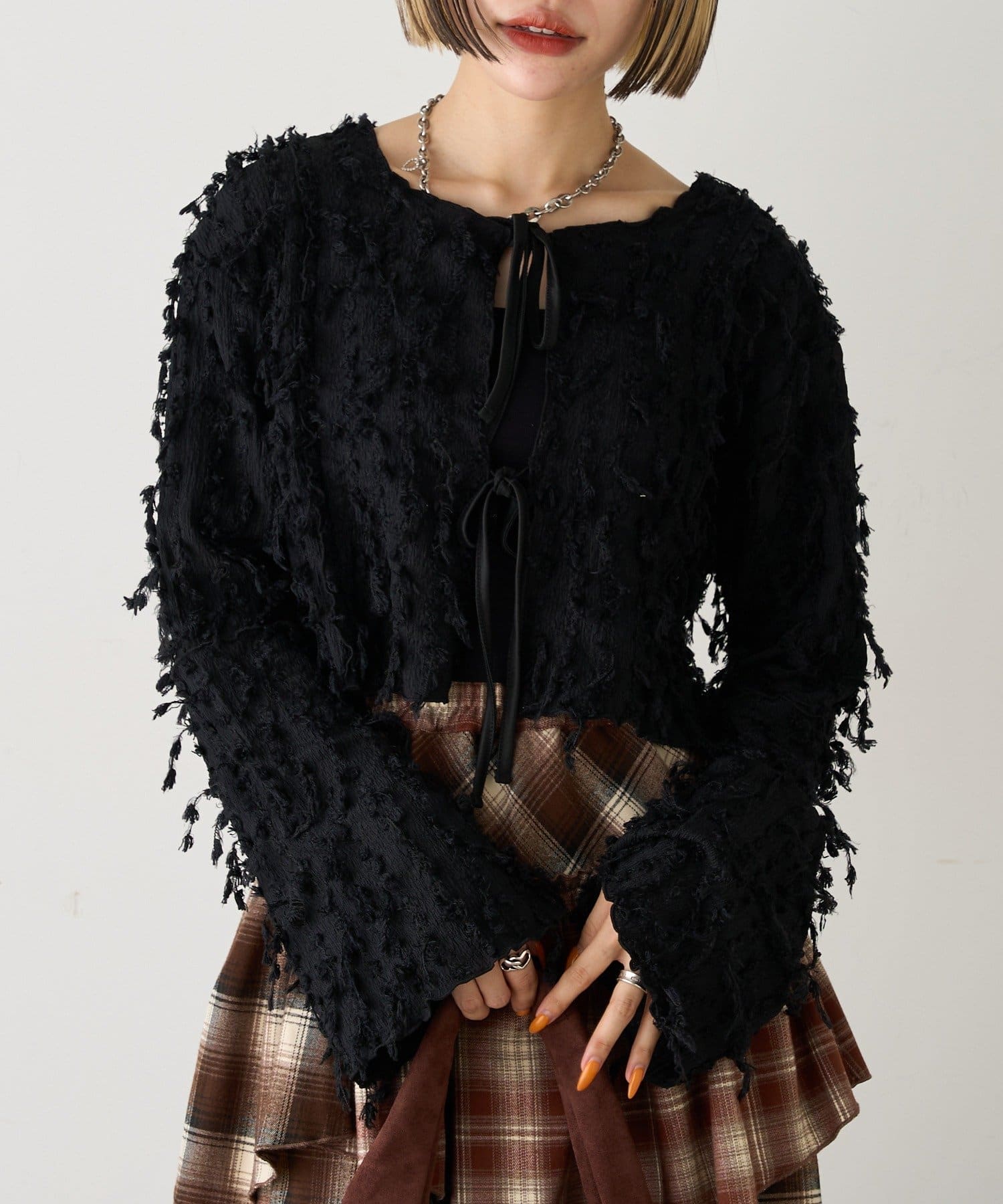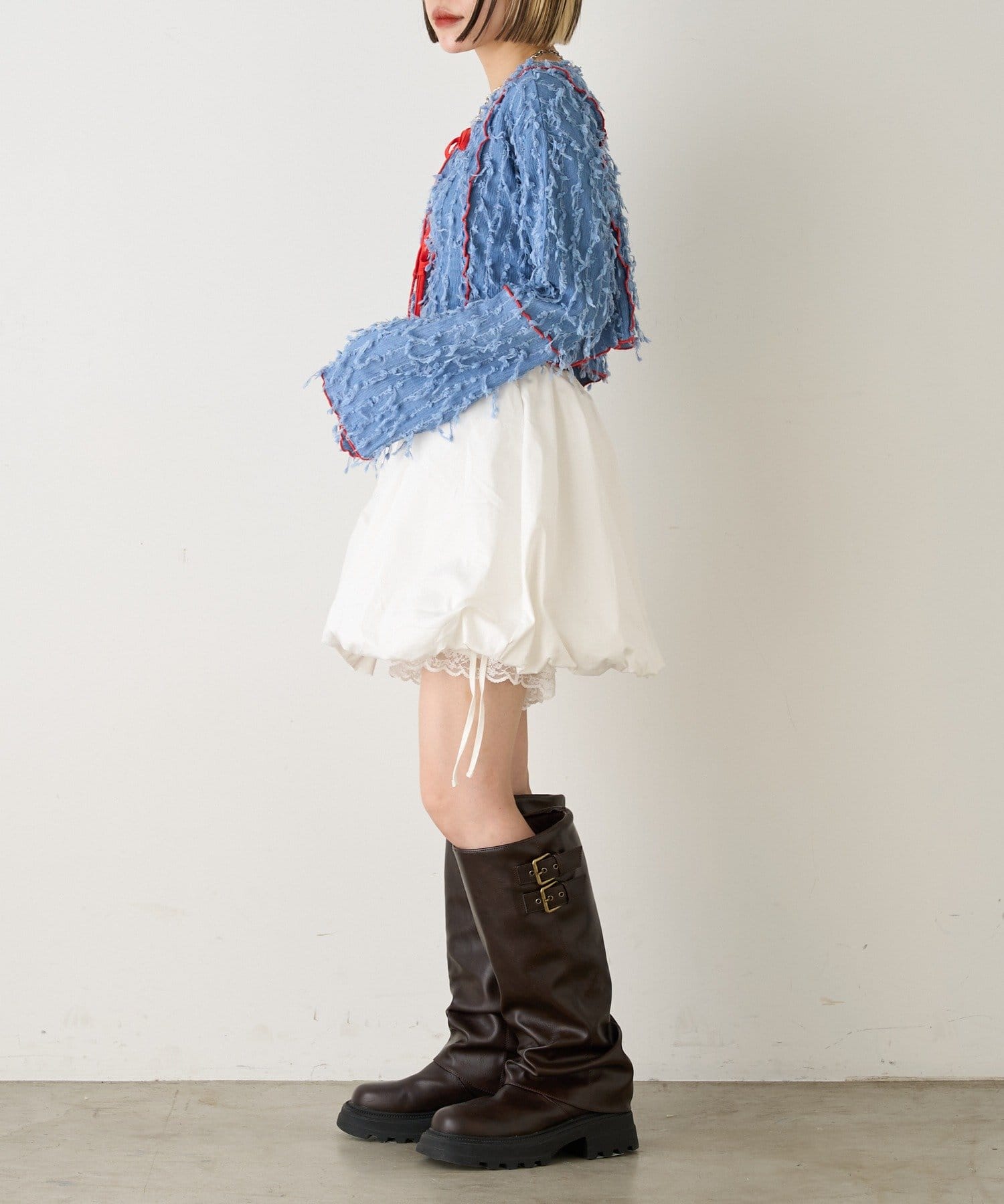 今から着れる!素材感がカワイイボレロ♡