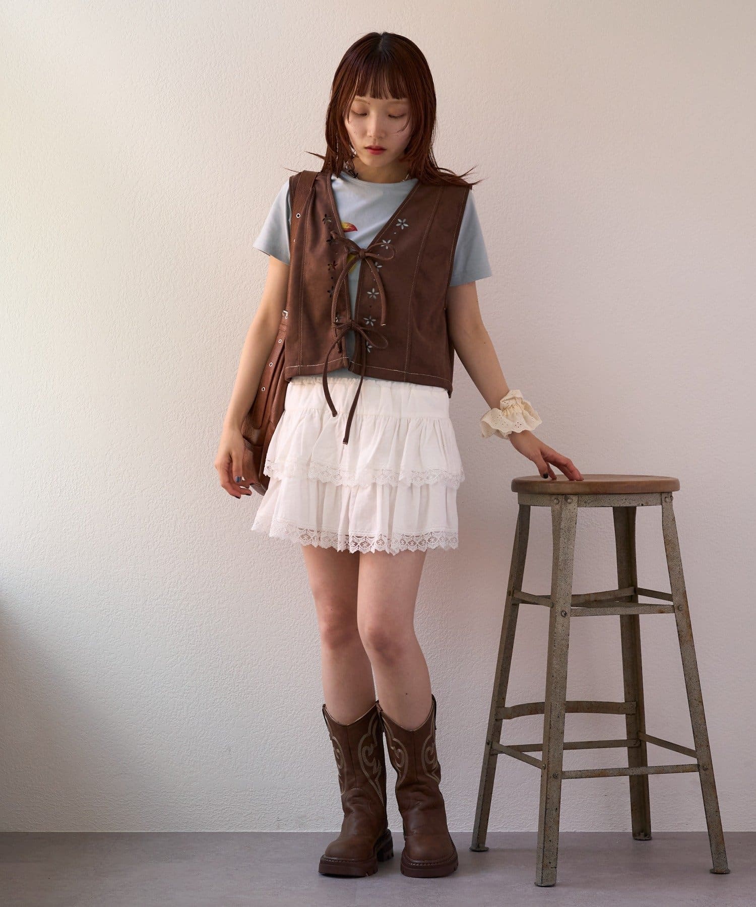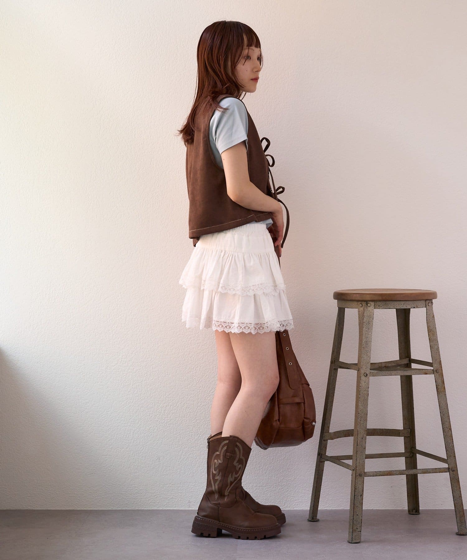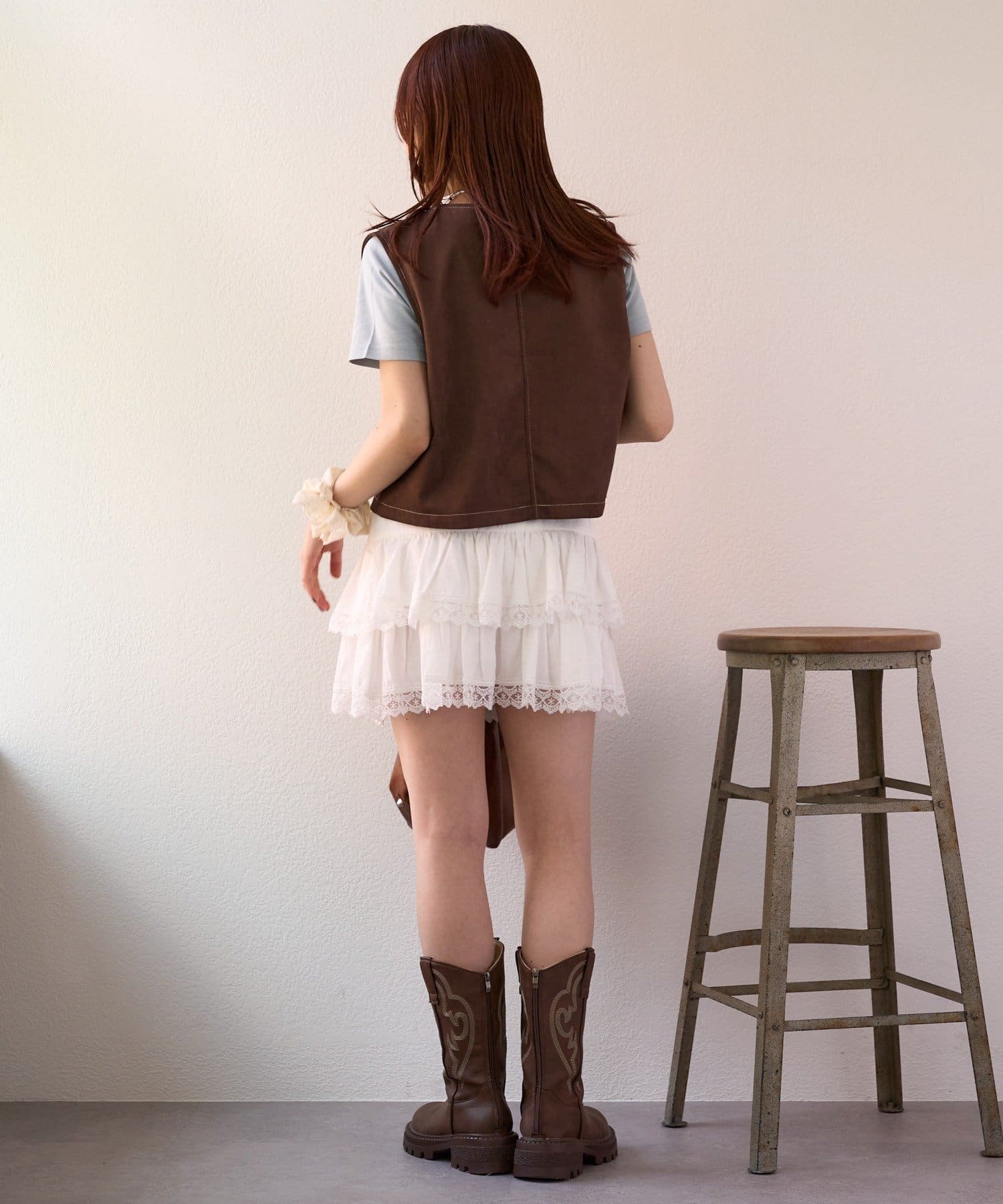 ・足元はウエスタンブーツで今っぽくまとめるとおしゃれ見えします!