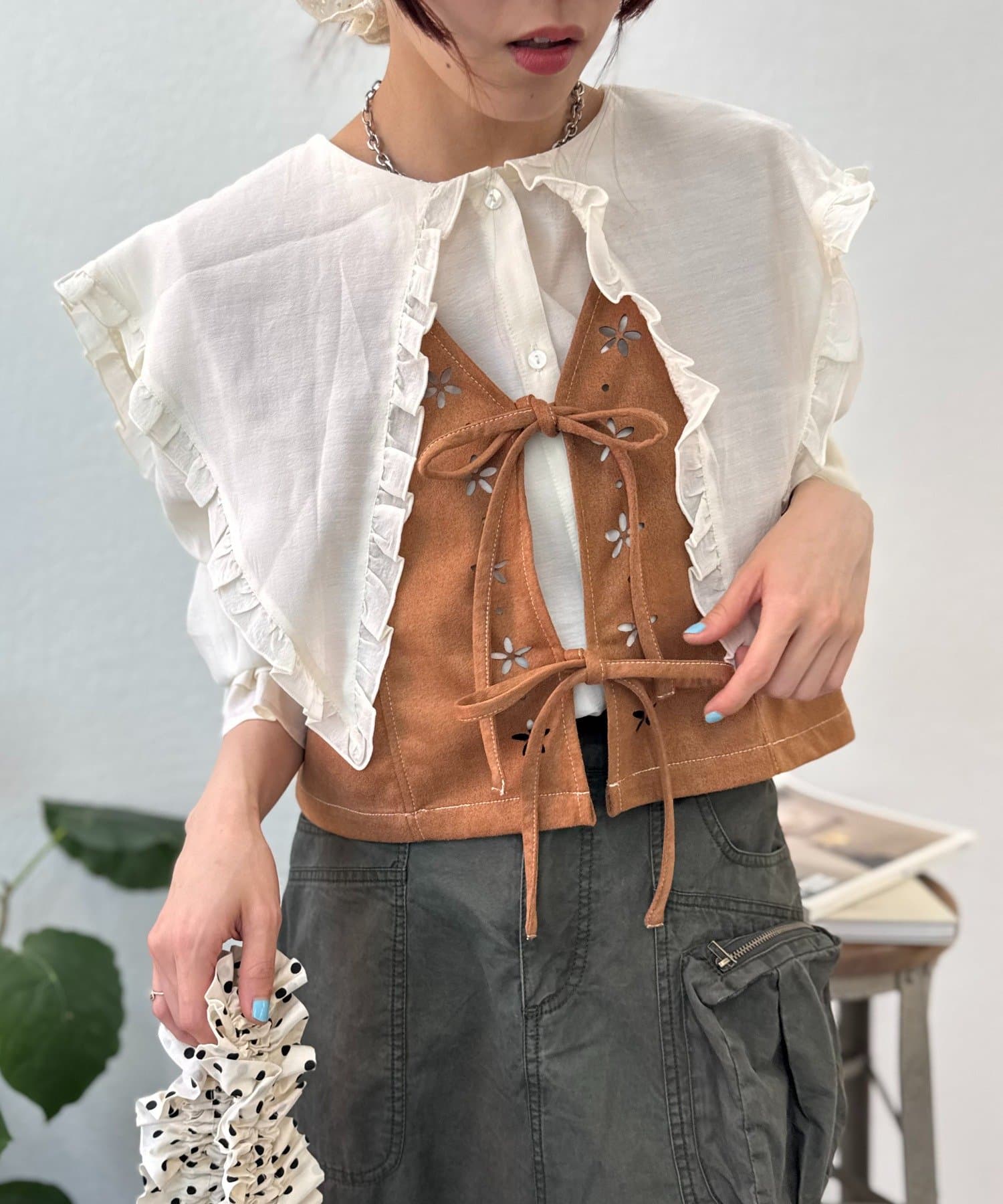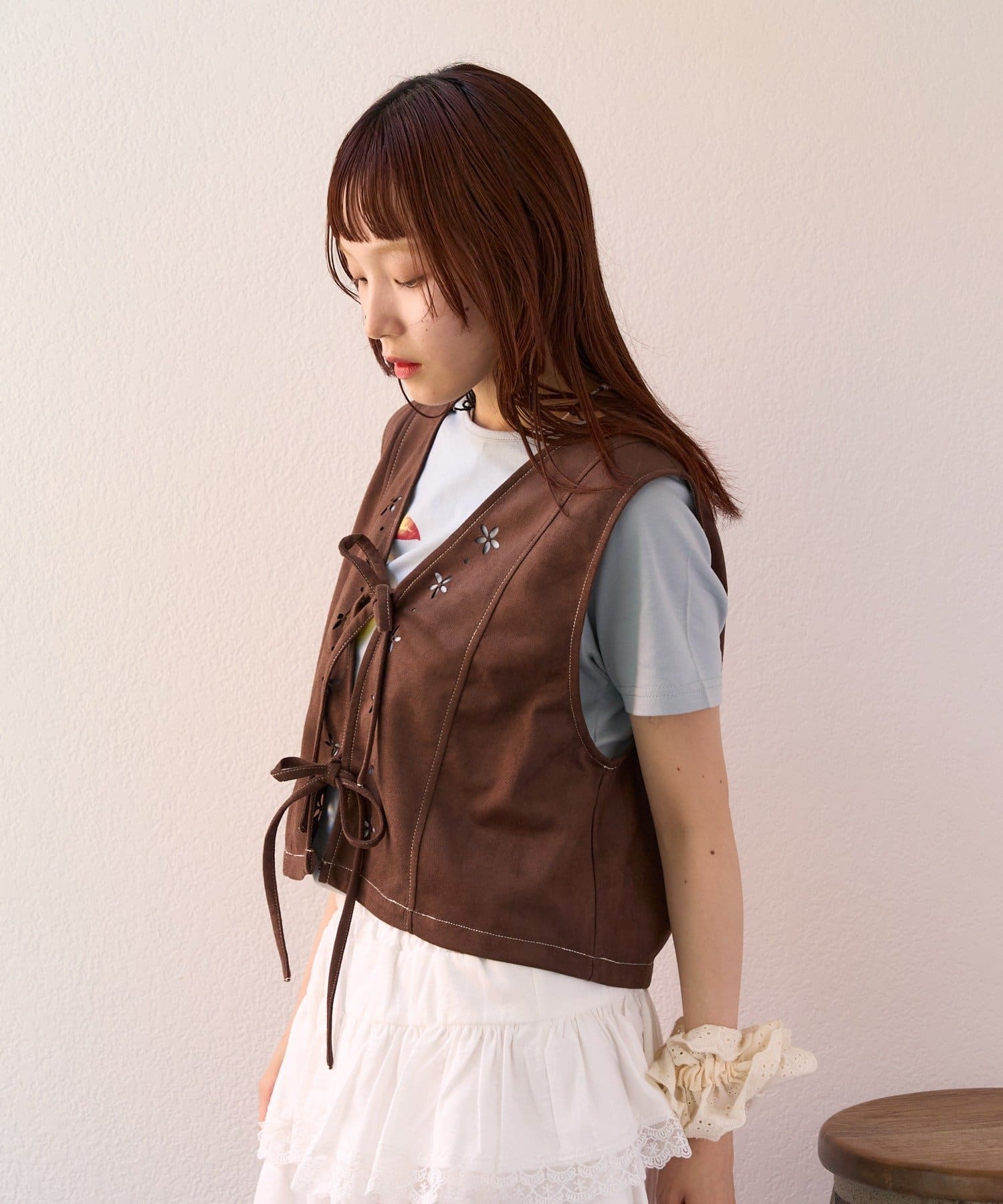 ・花柄にくり抜かれたデザインが可愛いベスト